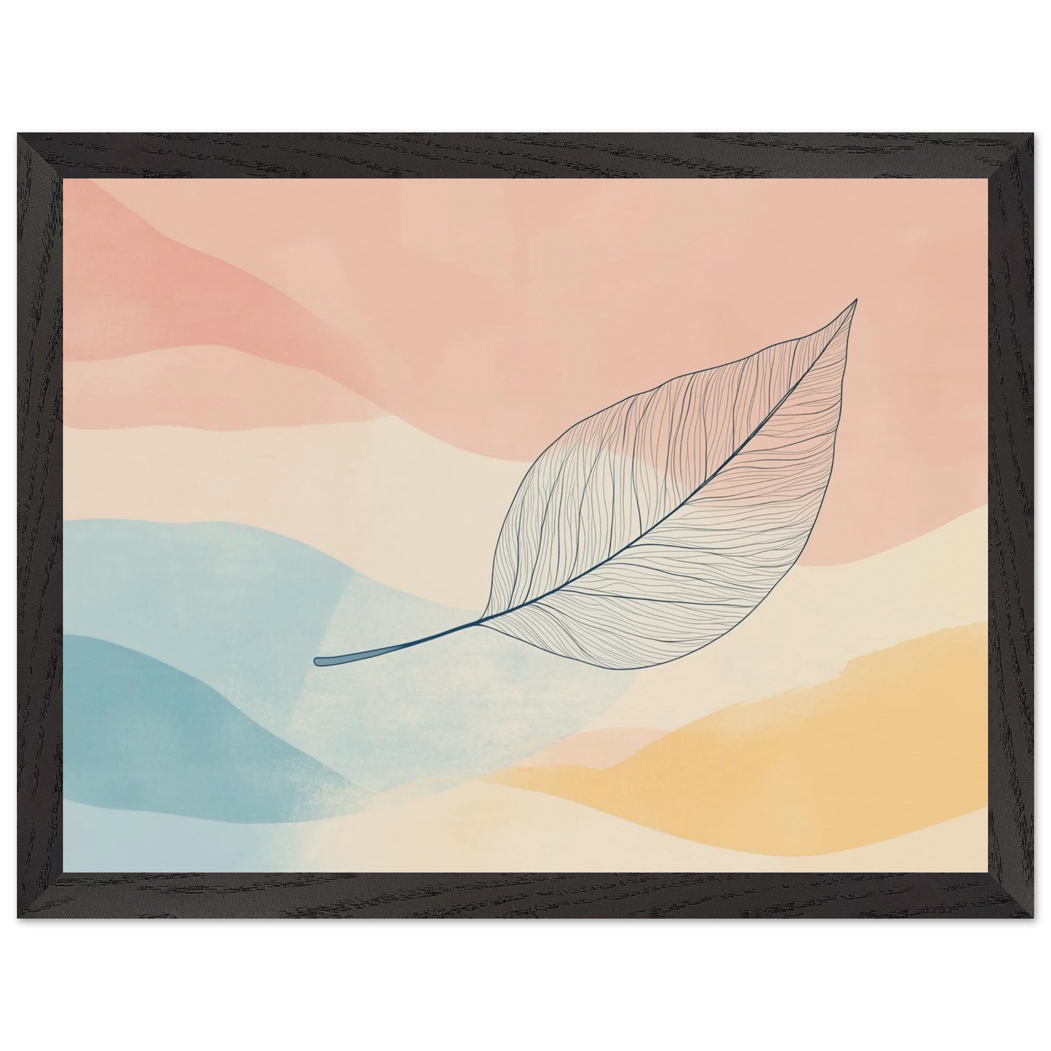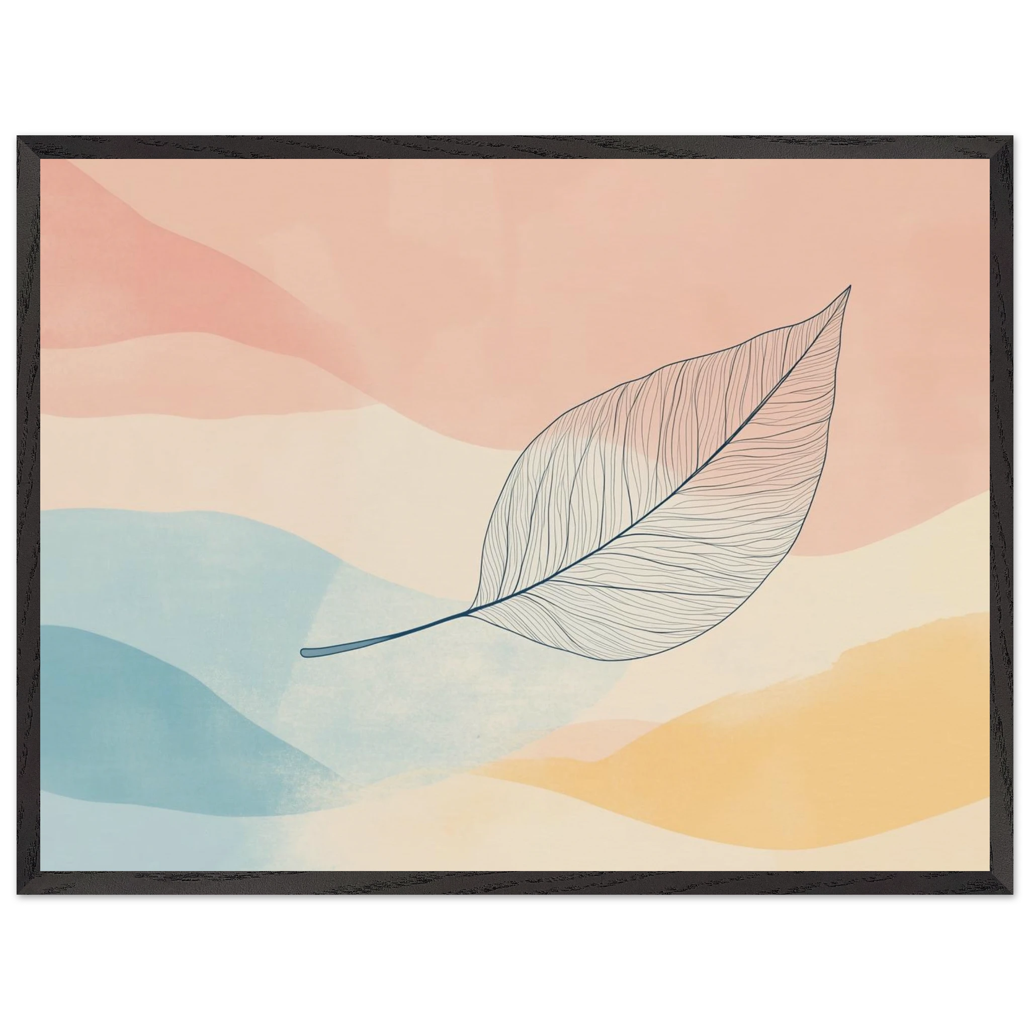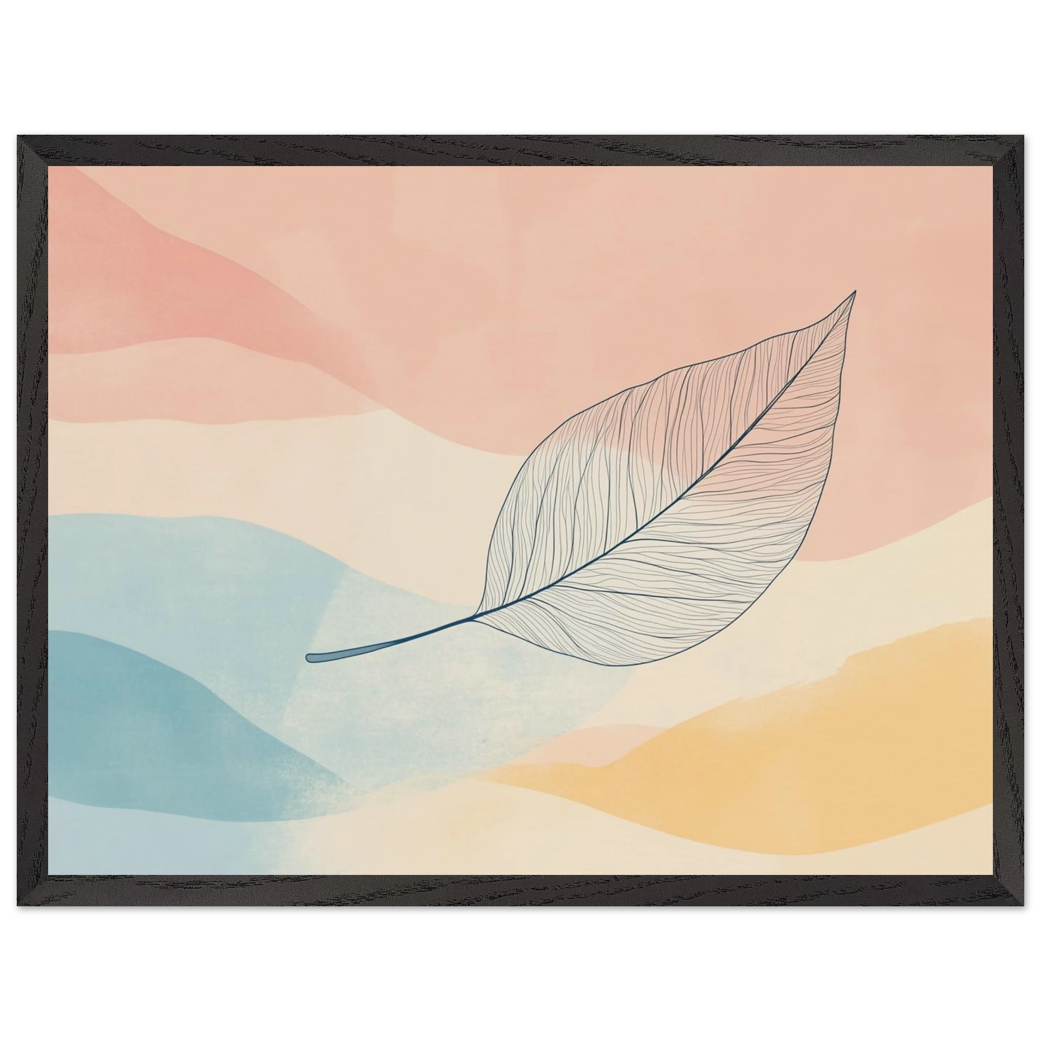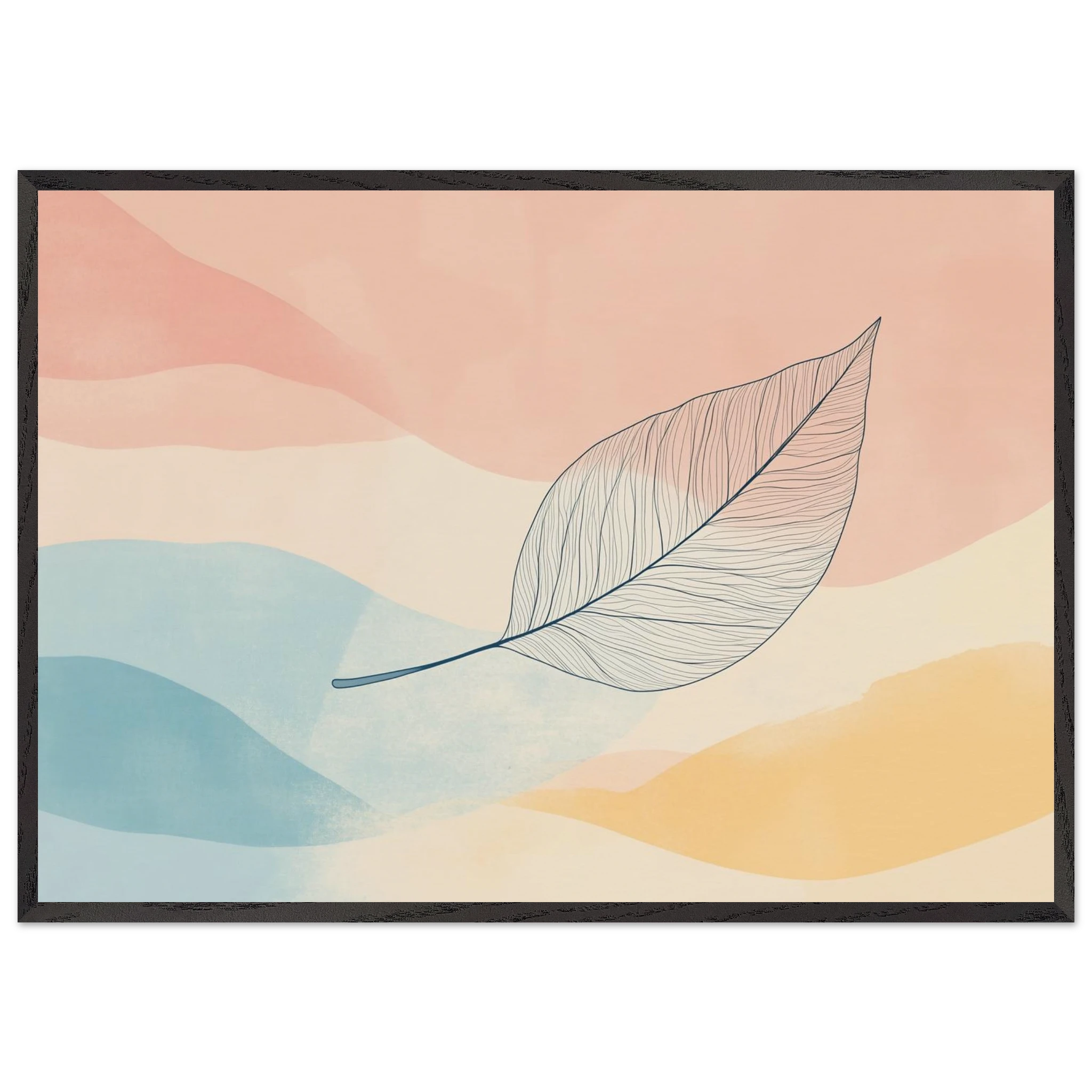 One leaf, one long goodbye. Carried across watercolor skies, this piece captures the beauty in small endings and quiet departures.