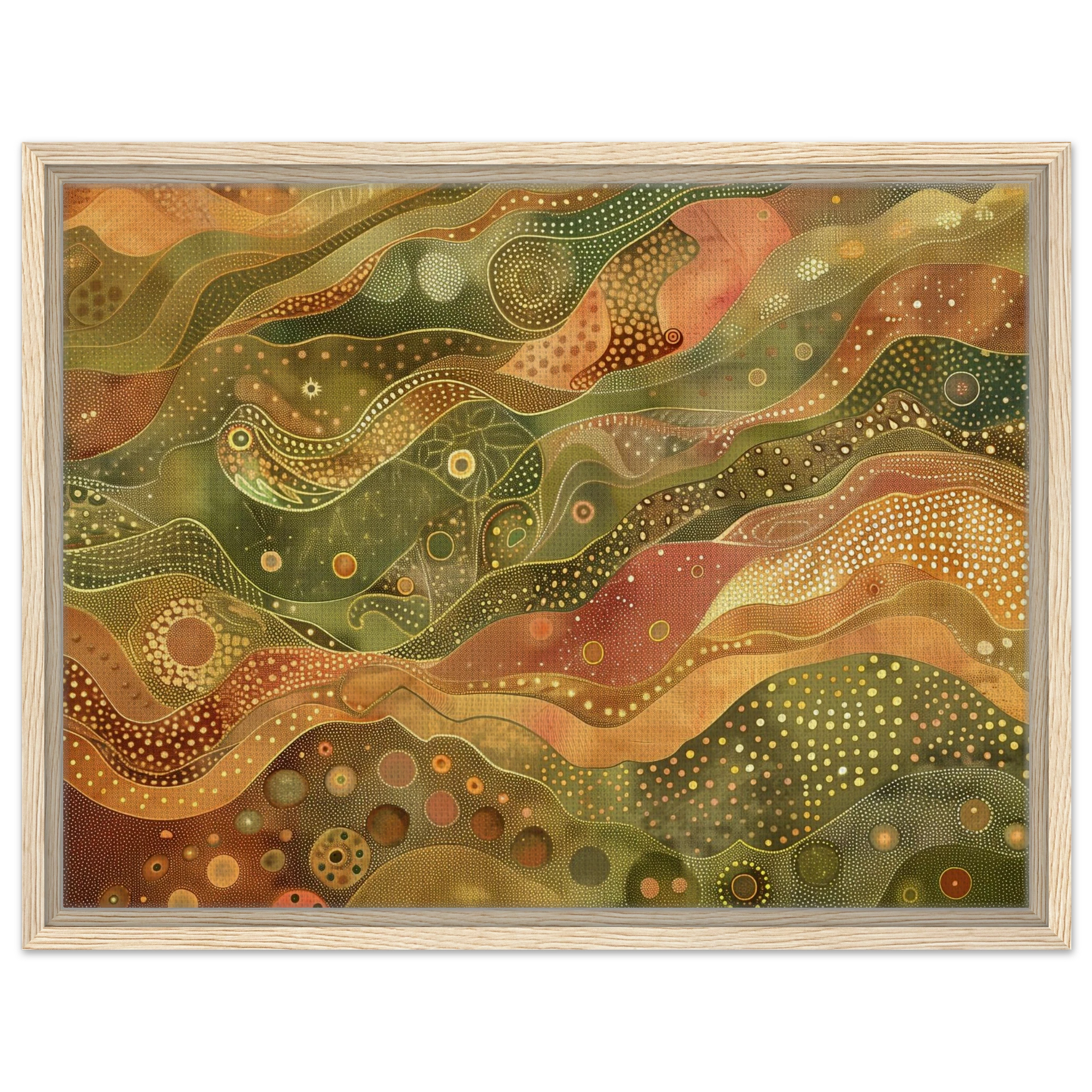 A cosmic dance of stars and seeds, this piece bridges the universe above with the fertile ground below.