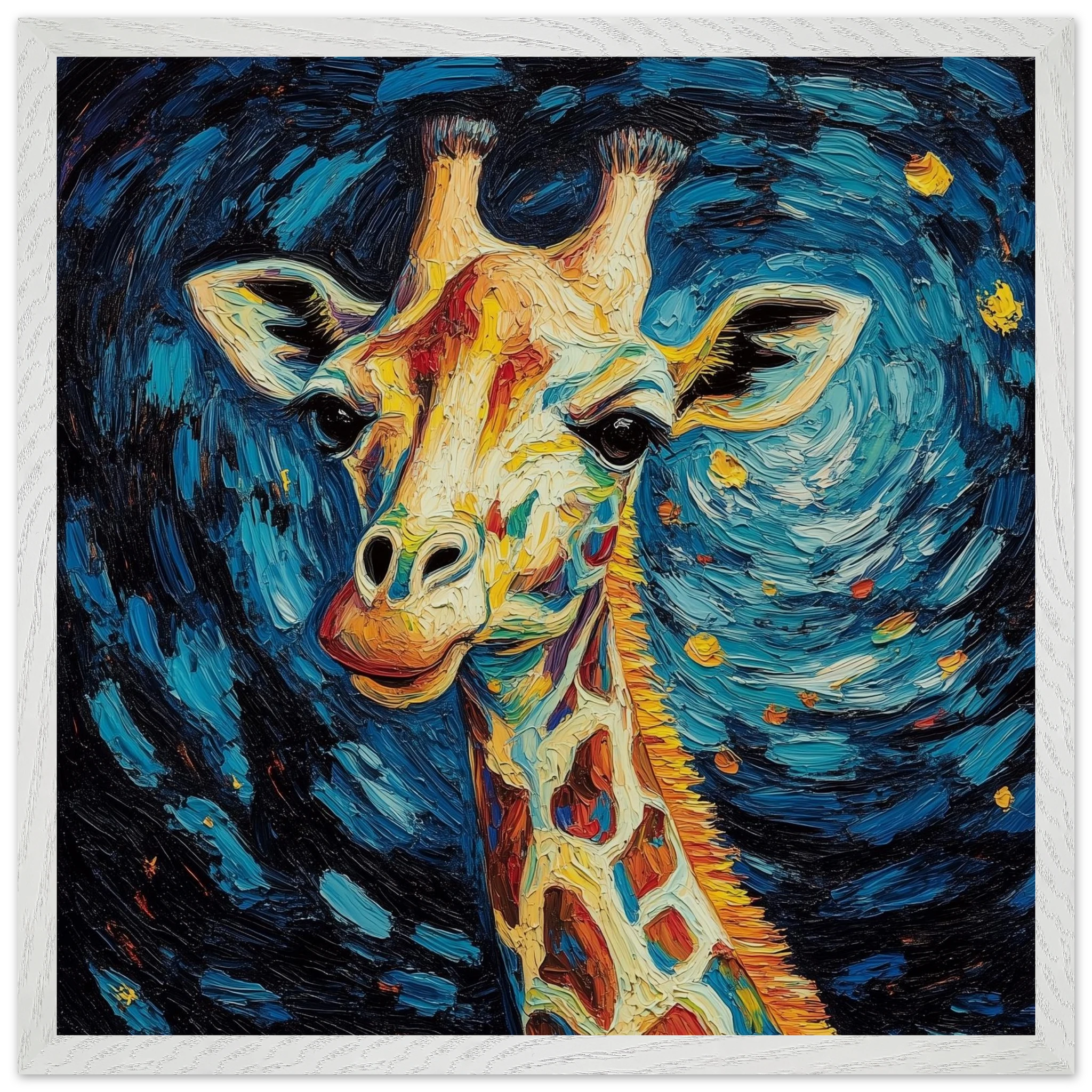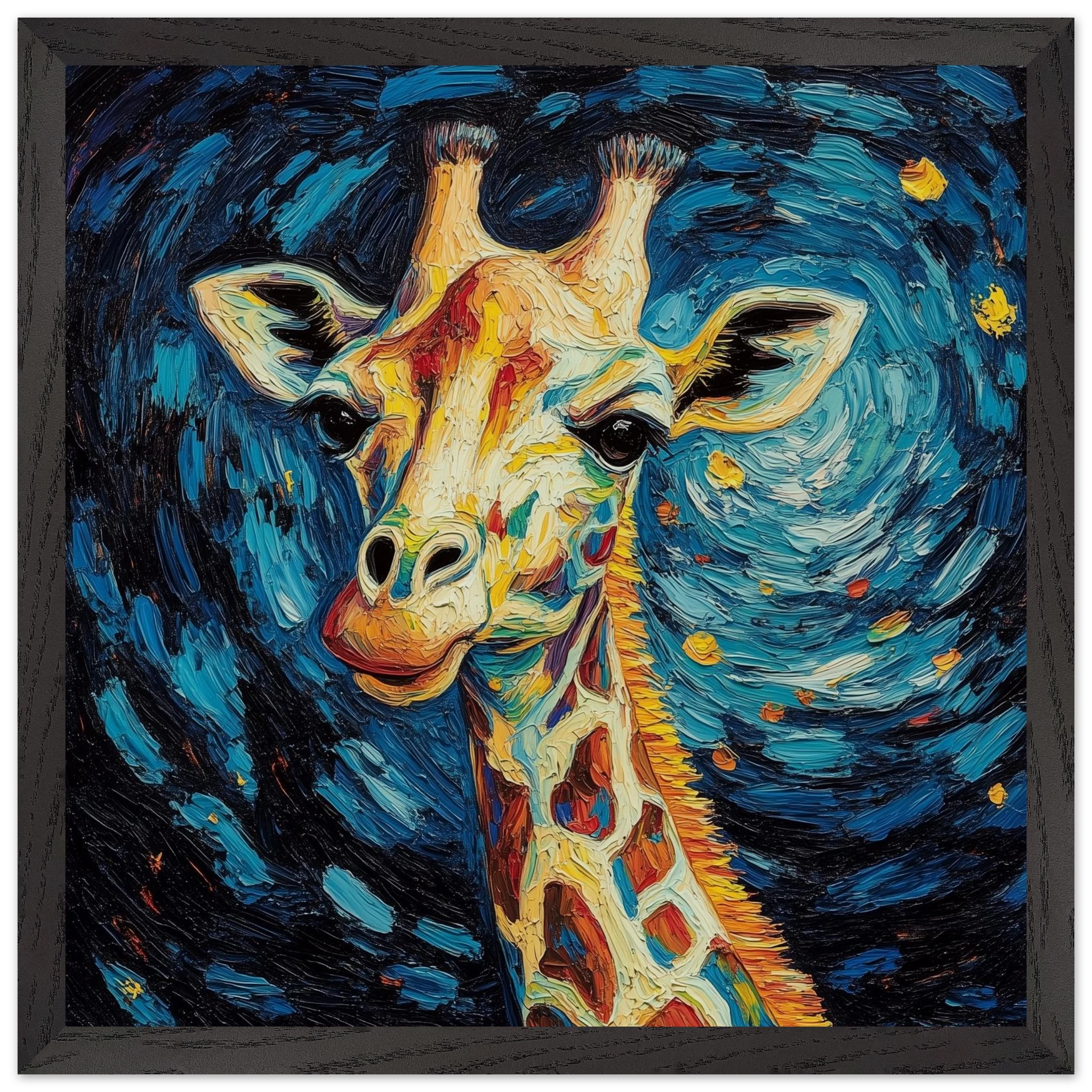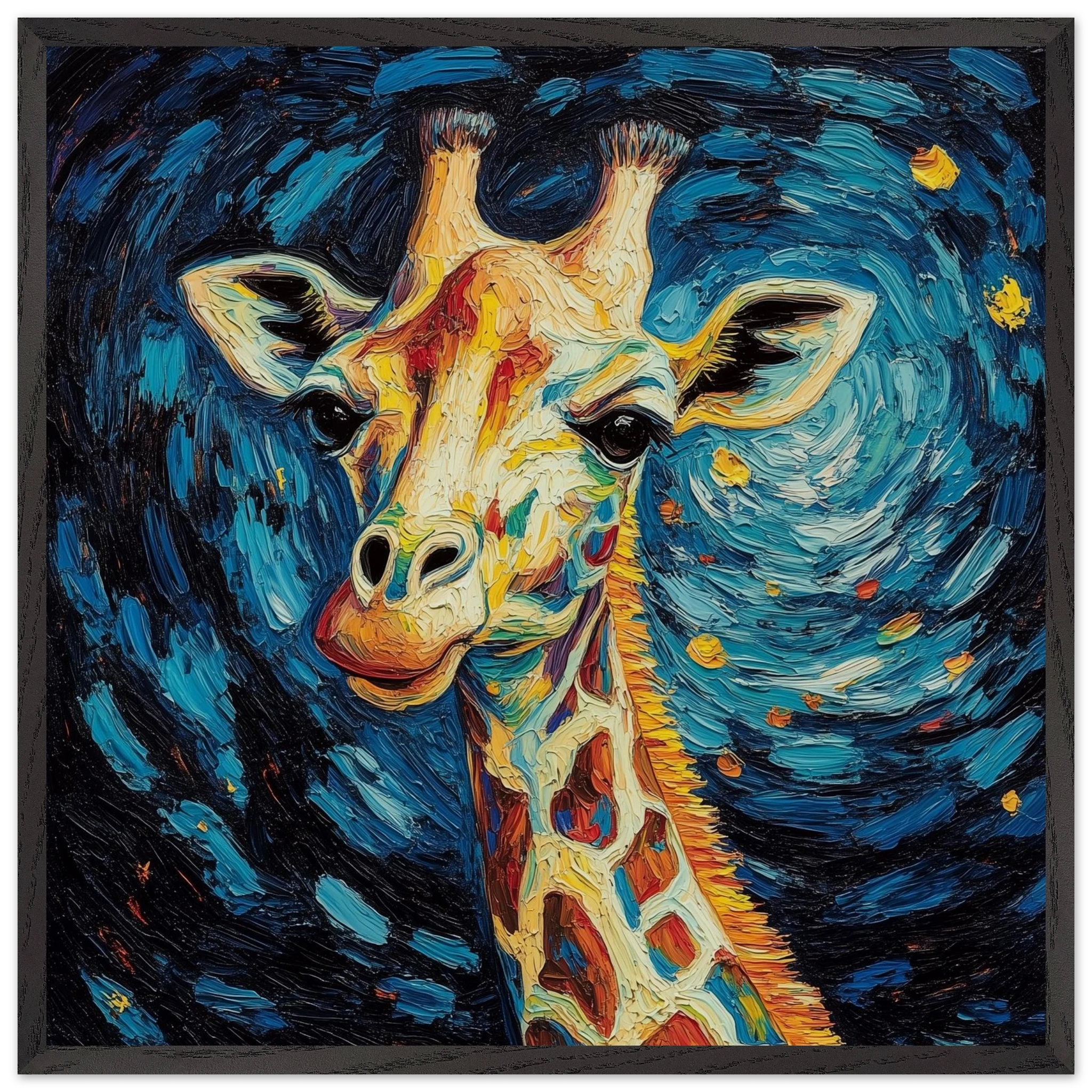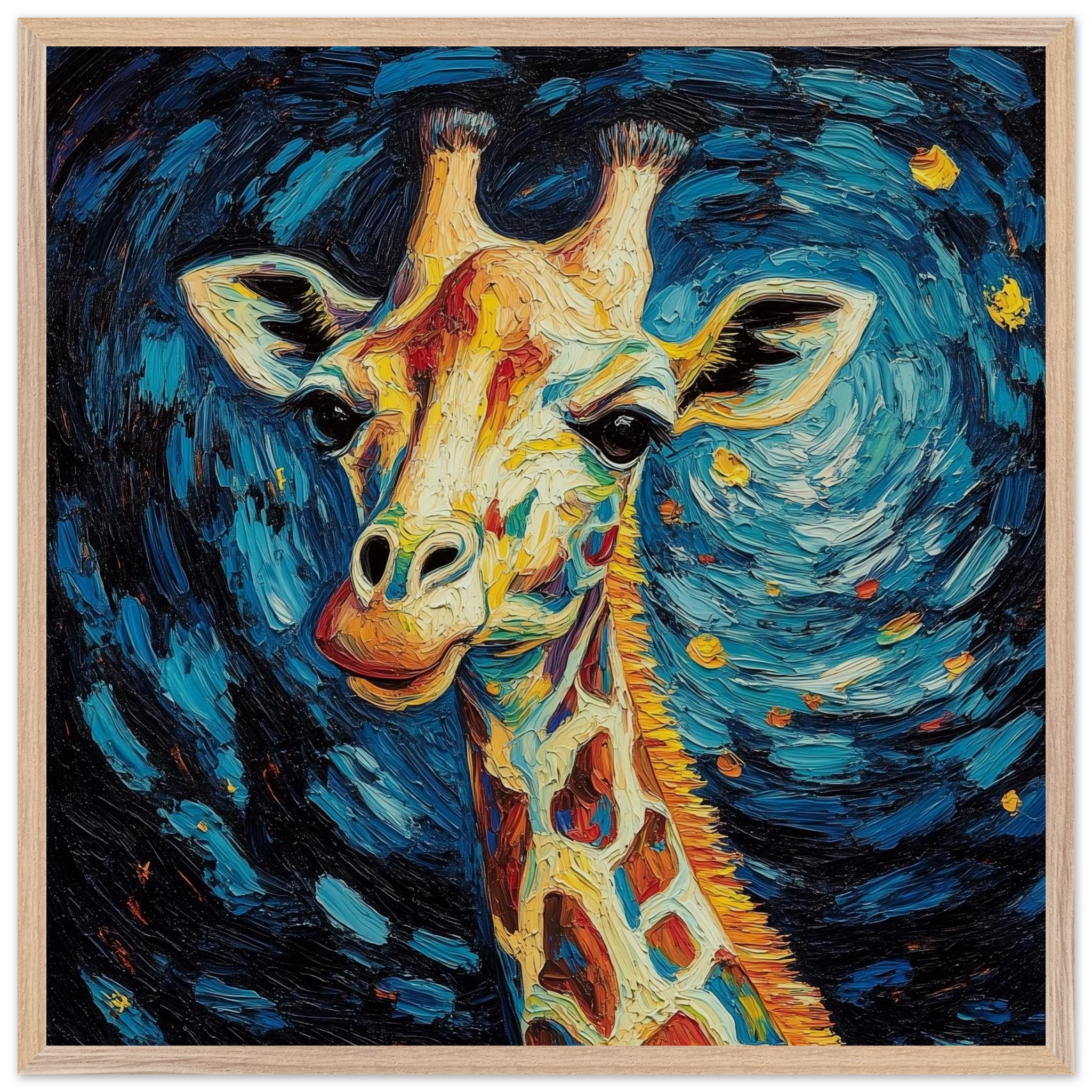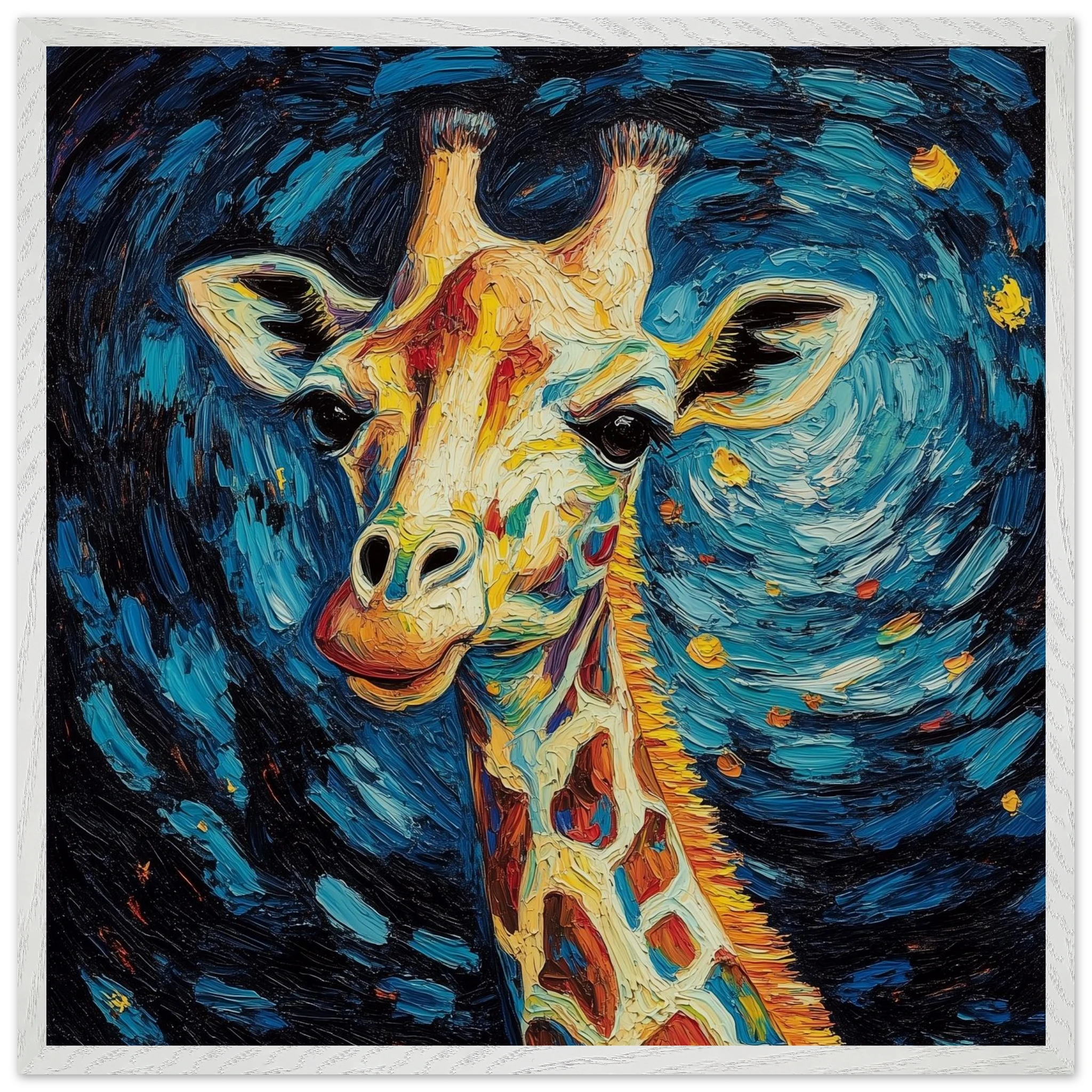 Why walk when you can float? This whimsical giraffe stretches through a swirling universe, a symbol of impossible dreams and sky-high imagination.