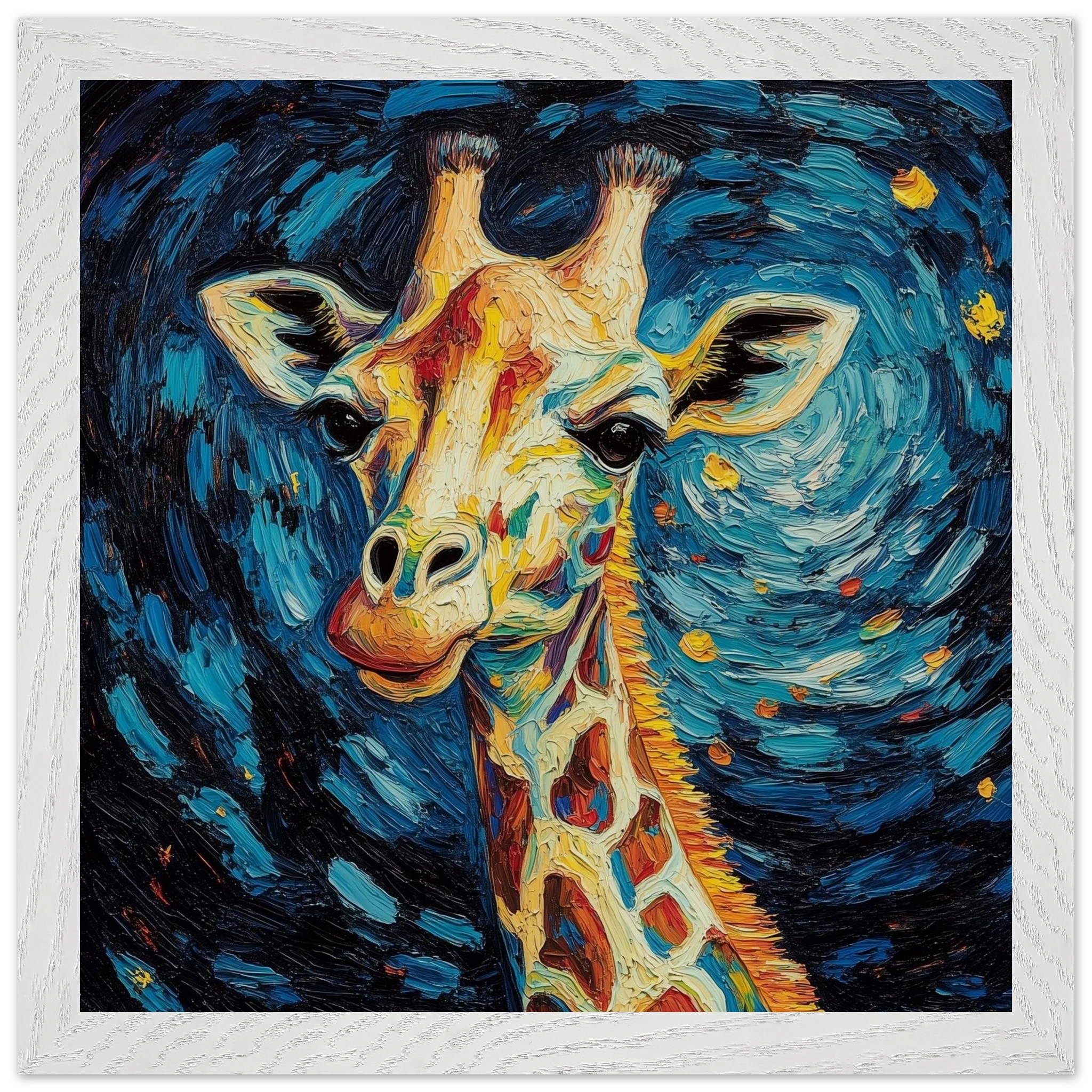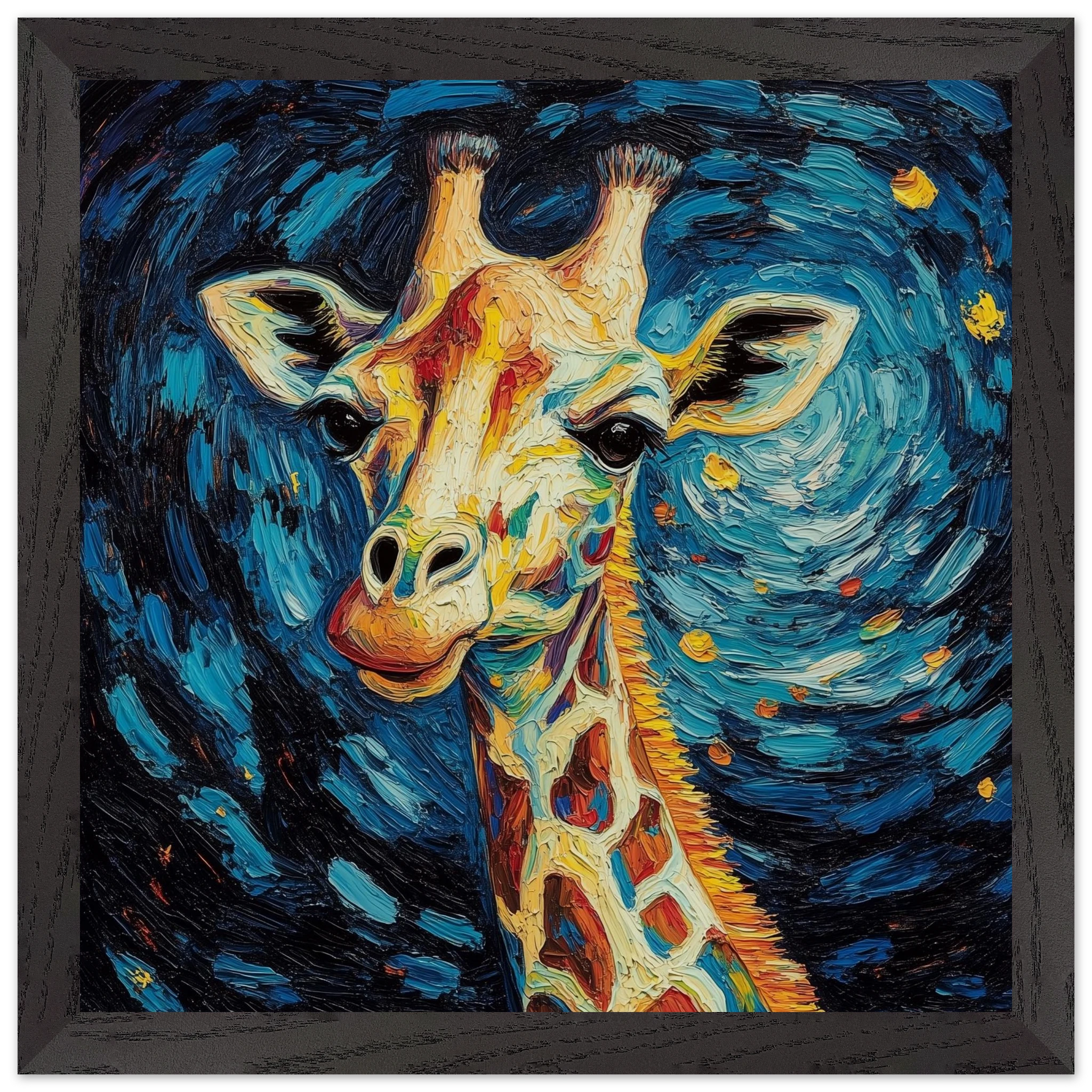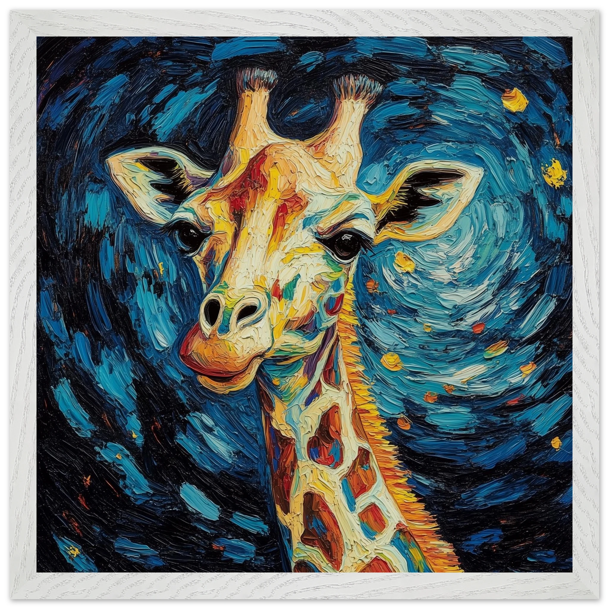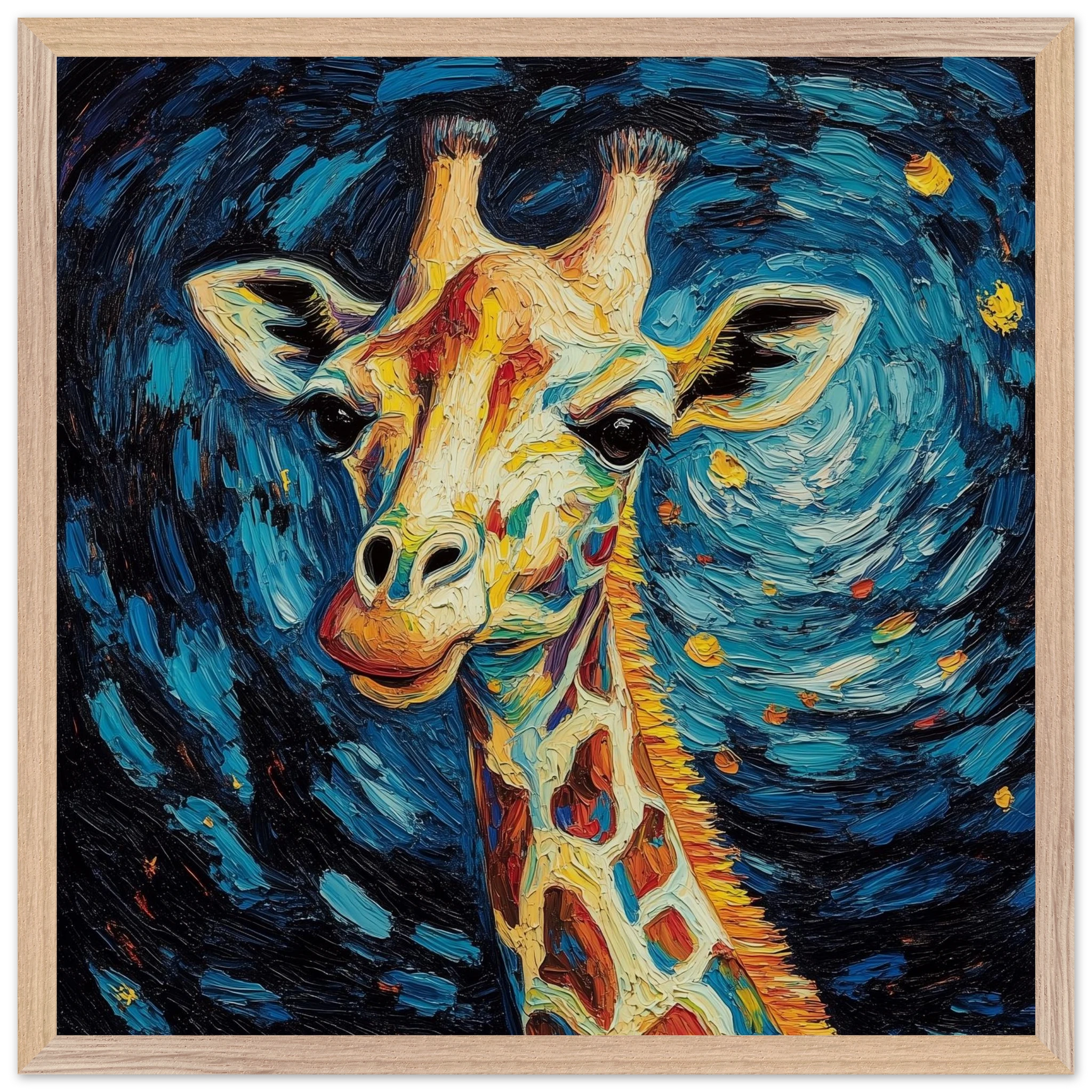 Why walk when you can float? This whimsical giraffe stretches through a swirling universe, a symbol of impossible dreams and sky-high imagination.