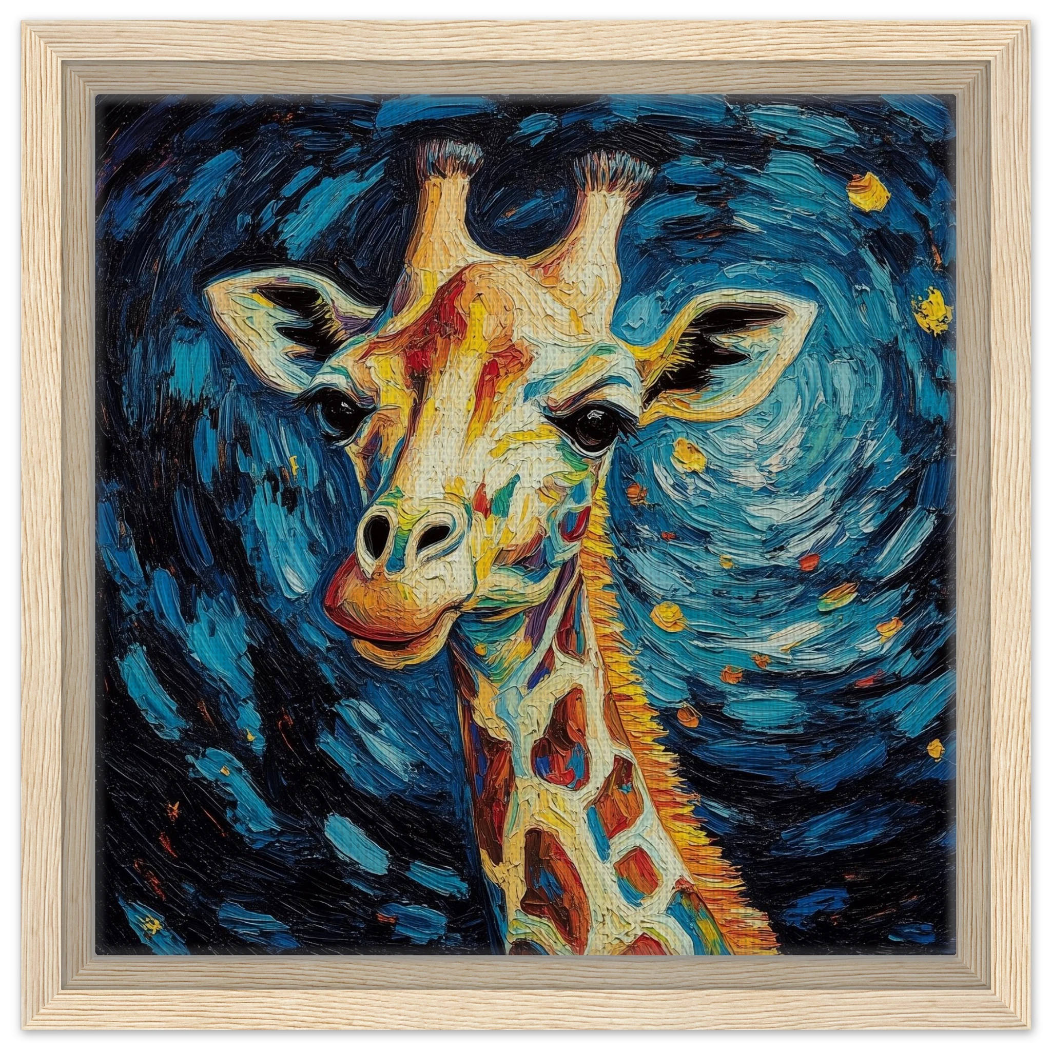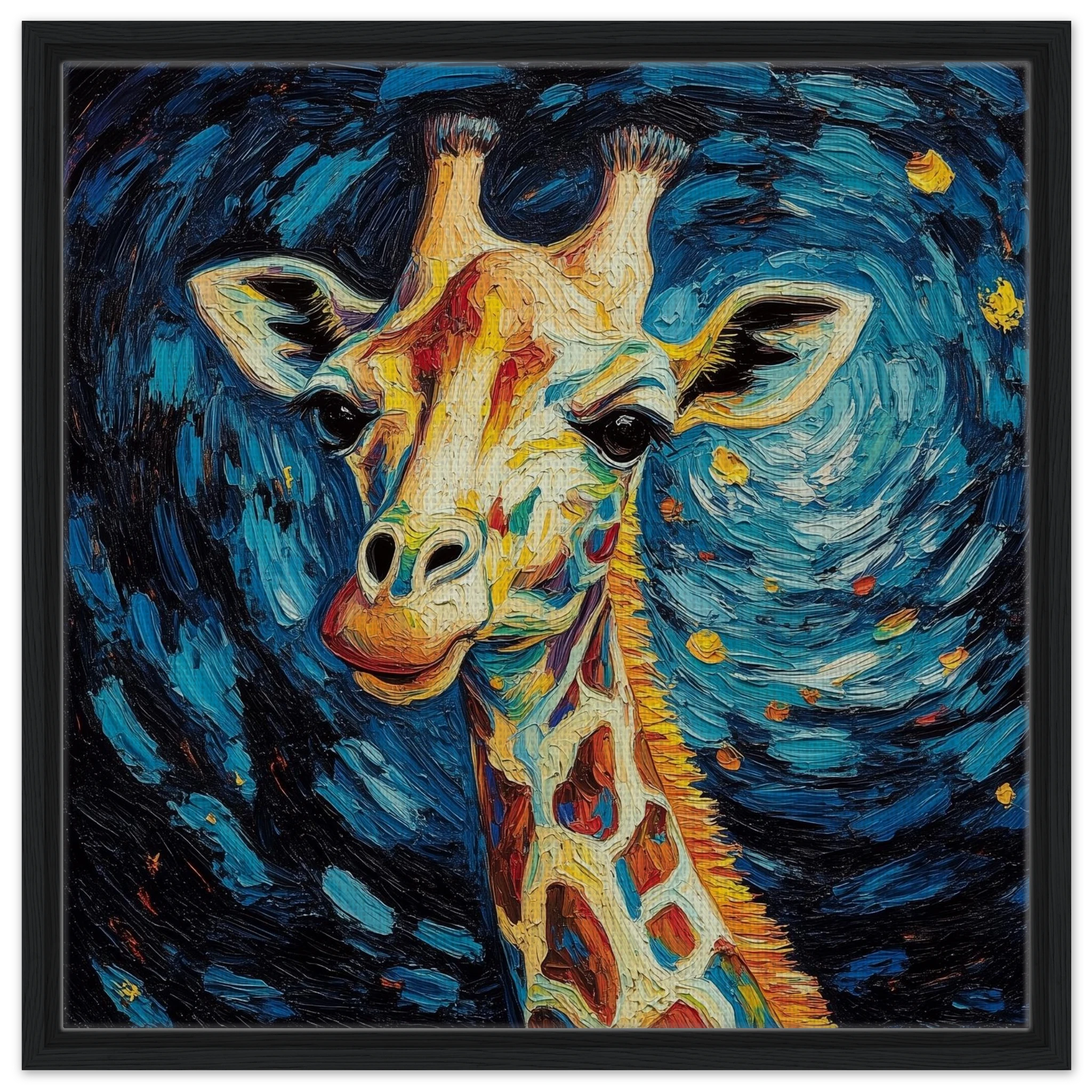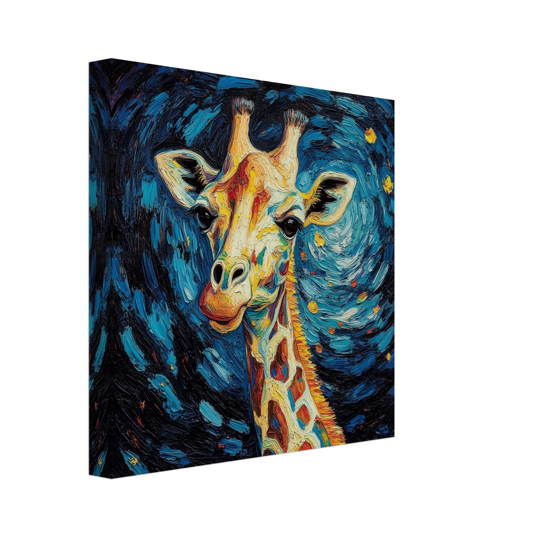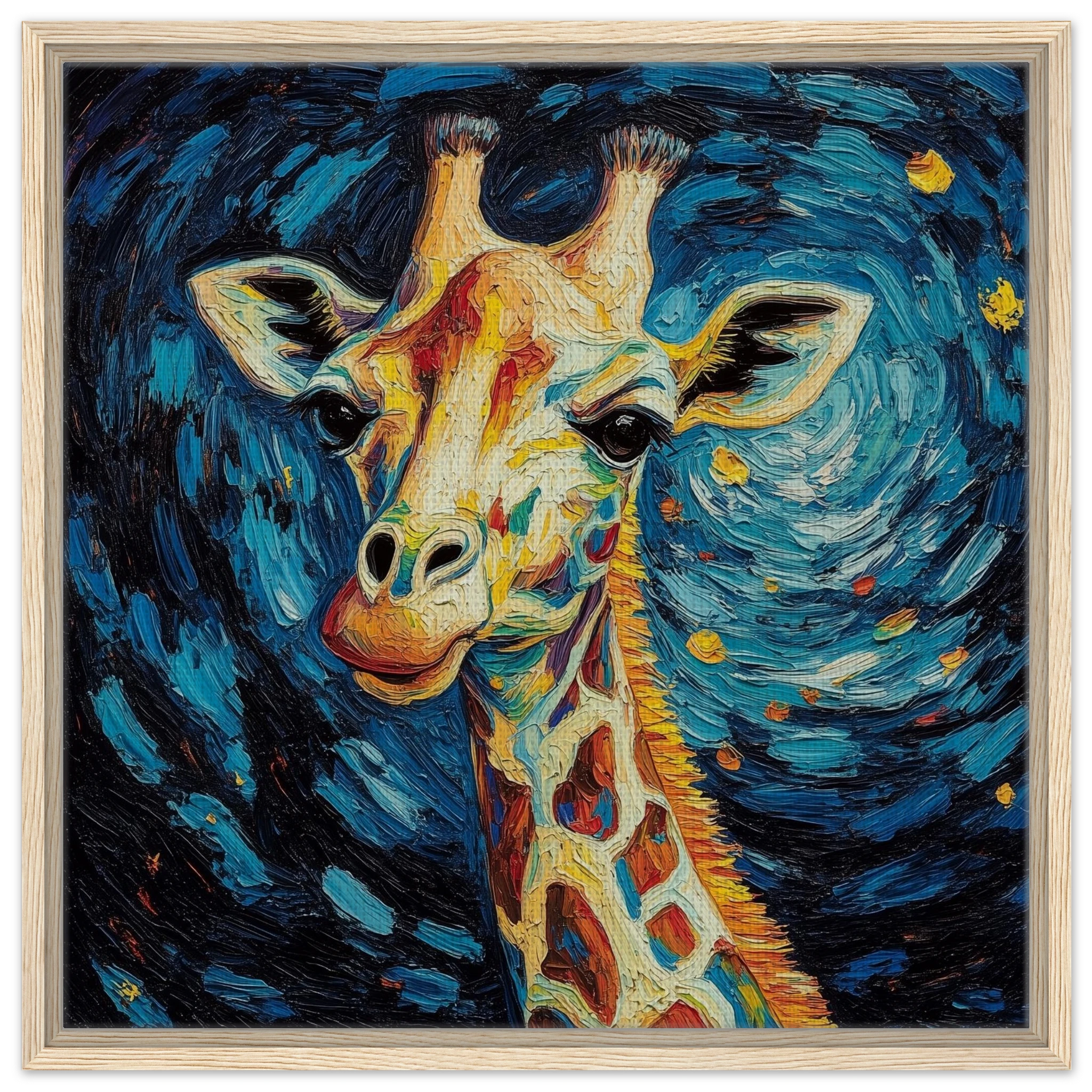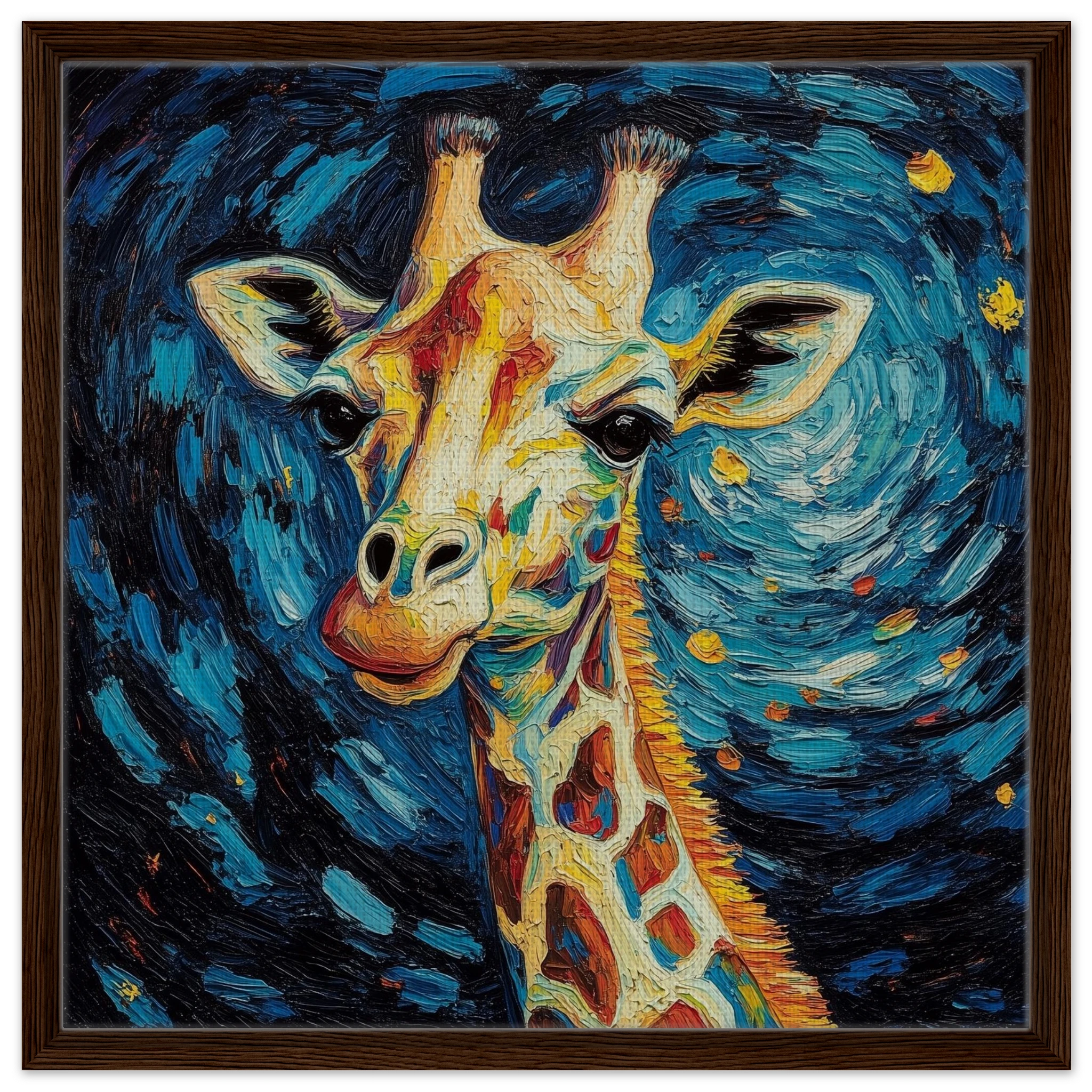 Why walk when you can float? This whimsical giraffe stretches through a swirling universe, a symbol of impossible dreams and sky-high imagination.