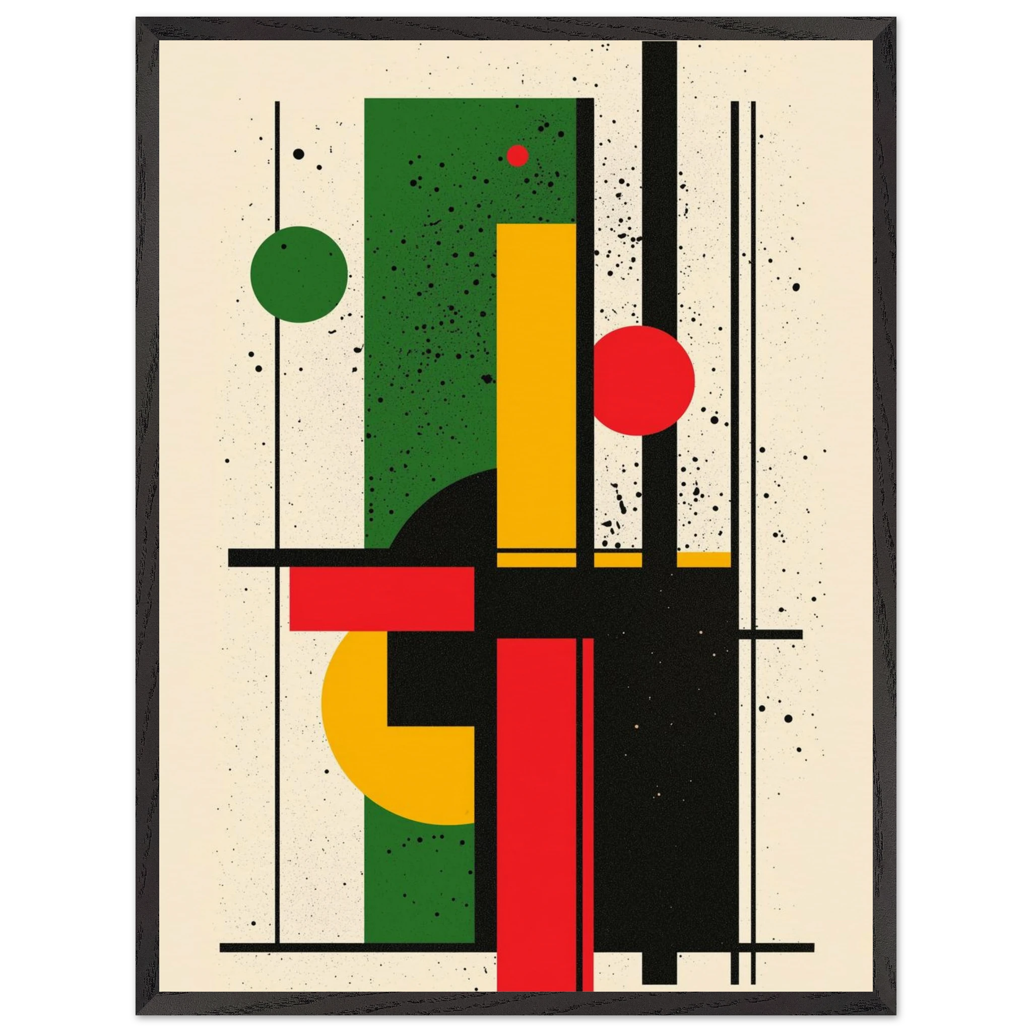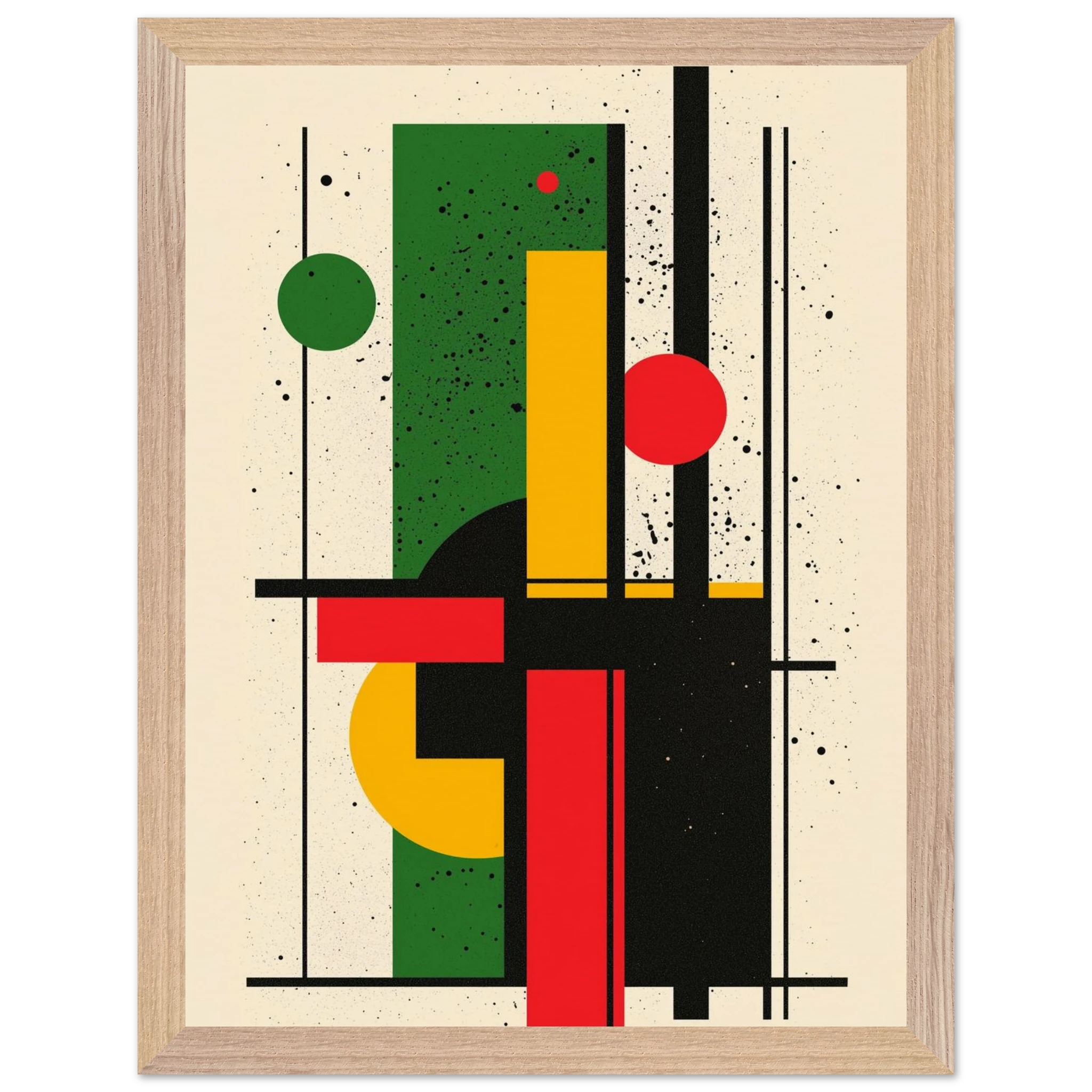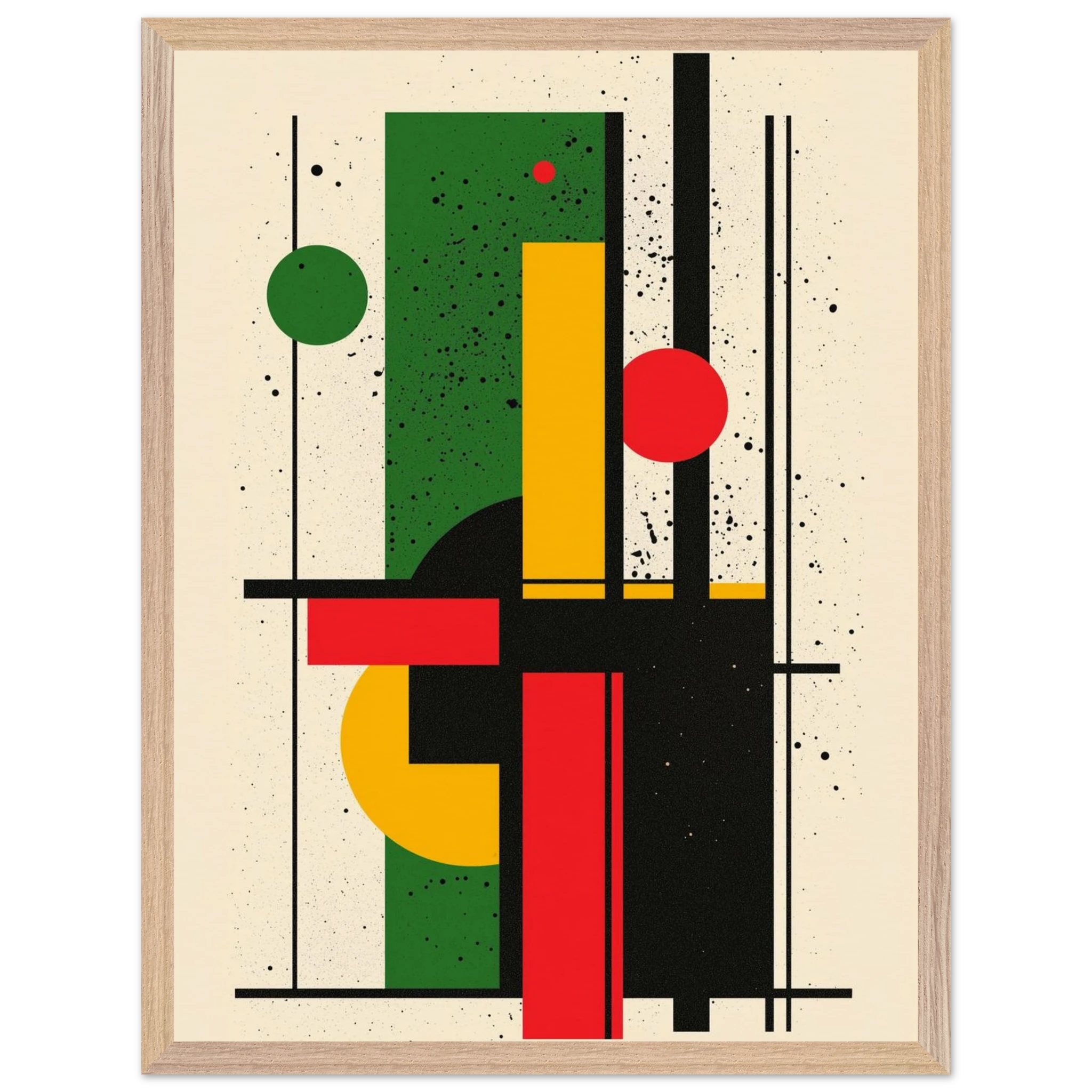 Give your space a burst of energy with Rhythm in Color, a bold abstract piece that merges vibrant reds, greens, and yellows with sleek geometric lines. Its dynamic interplay of shapes brings movement and excitement to any room—perfect for modern living areas, minimalist offices, or creative studios. Printed using Gelato’s top-tier process, each print boasts crisp details and enduring color. Select from a premium wooden poster or a range of canvas options—including wood, dark wood, or white wood frames—for a stylish finish that reflects your personal taste. Let Rhythm in Color enliven your décor with its contemporary flair.