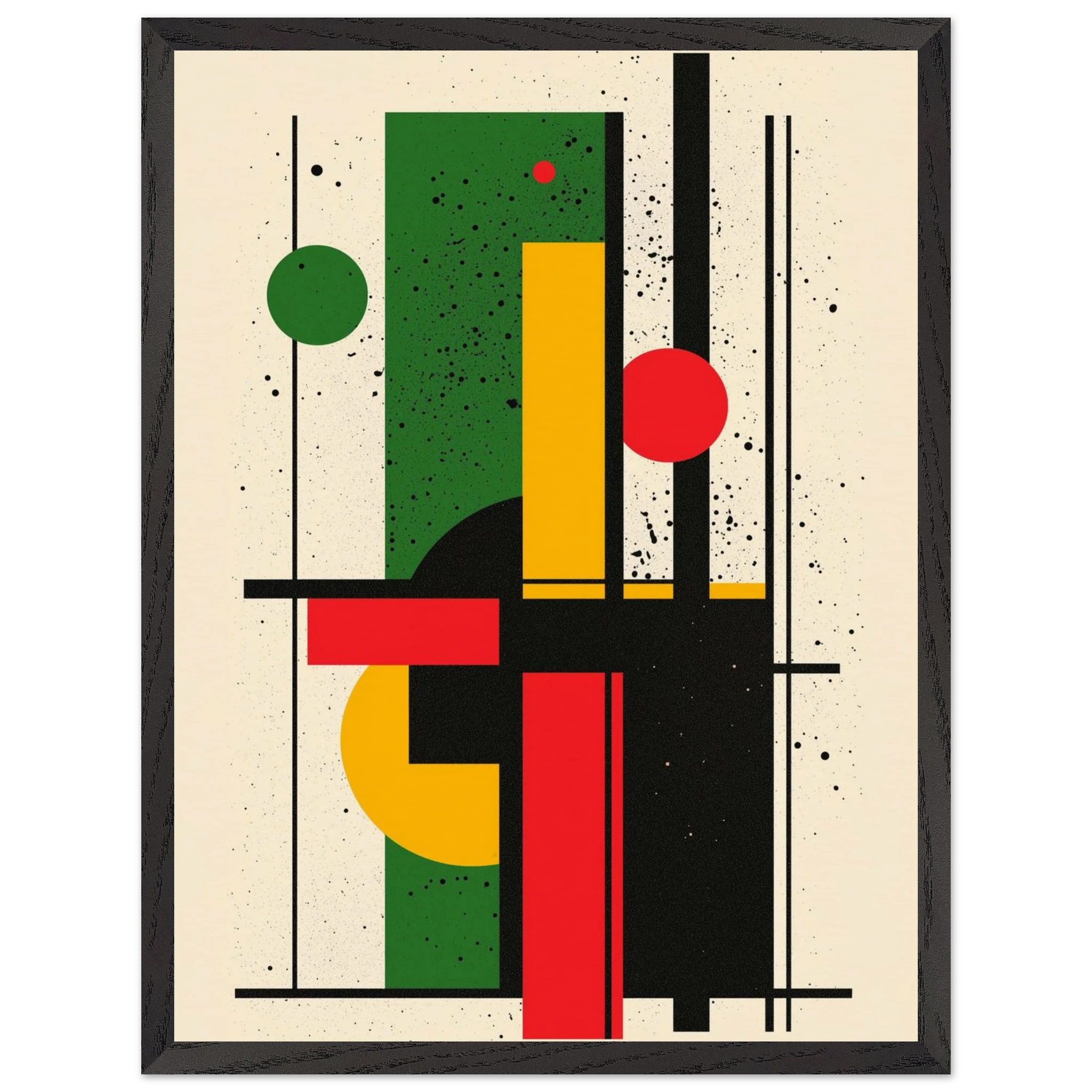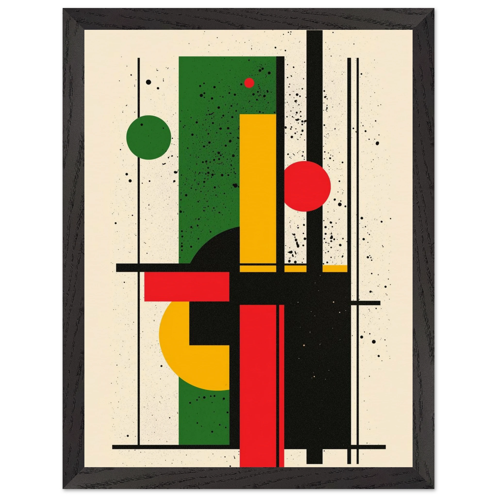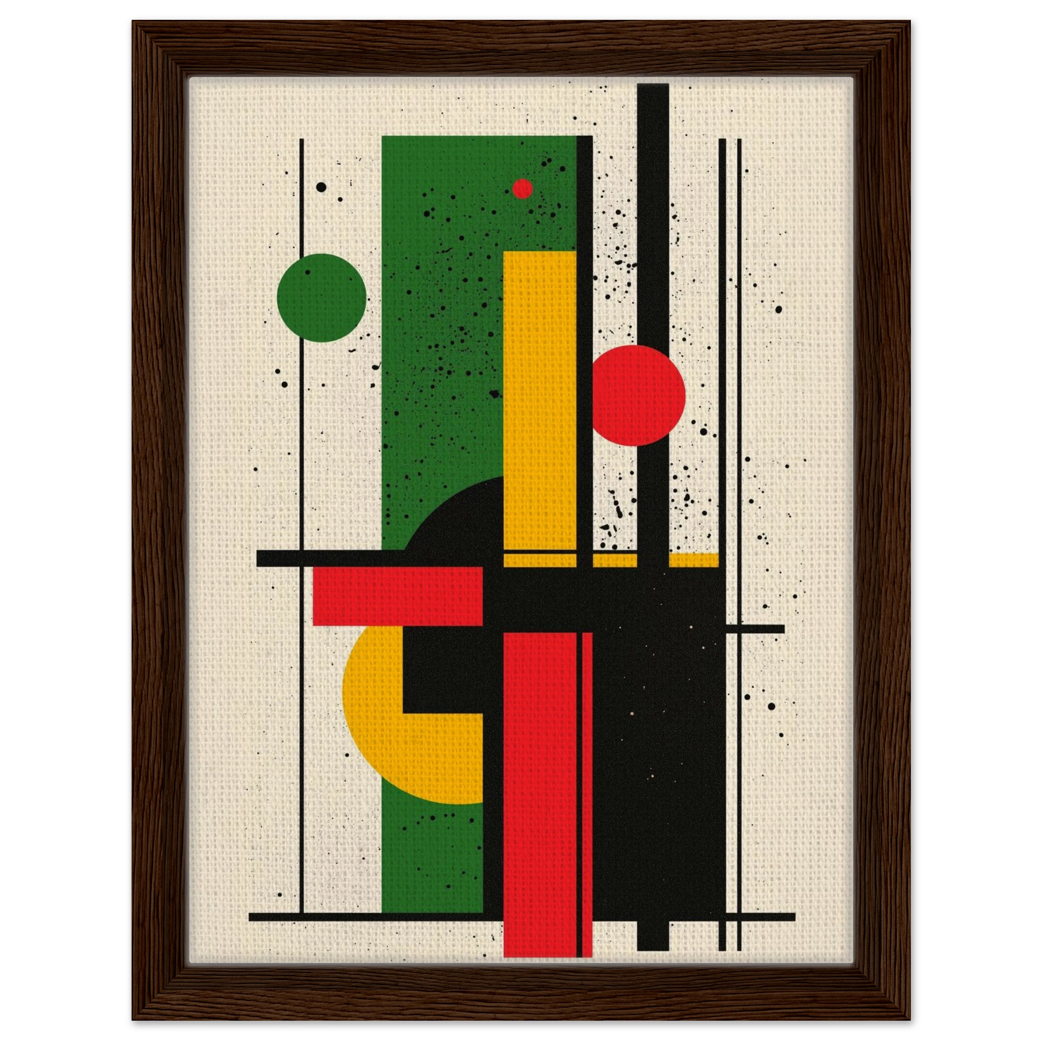 Give your space a burst of energy with Rhythm in Color, a bold abstract piece that merges vibrant reds, greens, and yellows with sleek geometric lines. Its dynamic interplay of shapes brings movement and excitement to any room—perfect for modern living areas, minimalist offices, or creative studios. Printed using Gelato’s top-tier process, each print boasts crisp details and enduring color. Select from a premium wooden poster or a range of canvas options—including wood, dark wood, or white wood frames—for a stylish finish that reflects your personal taste. Let Rhythm in Color enliven your décor with its contemporary flair.