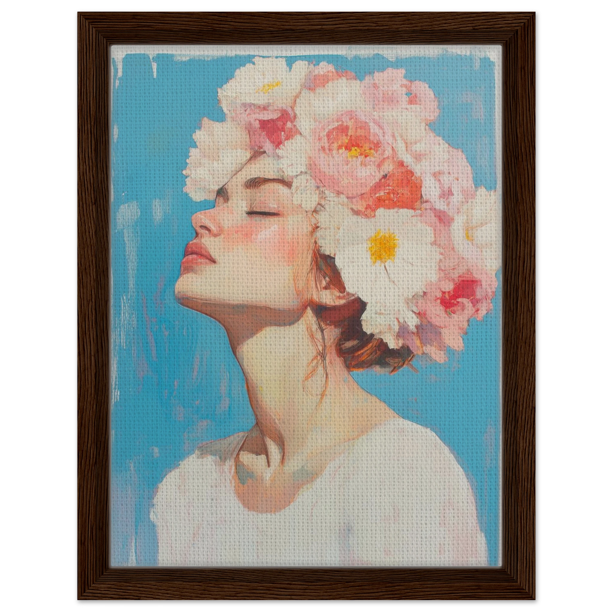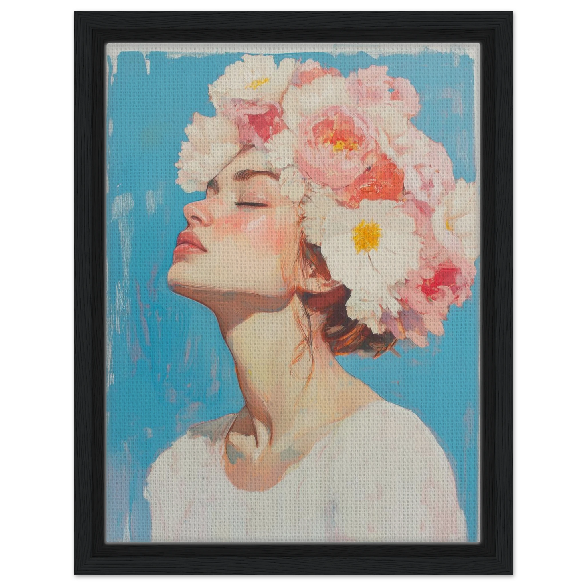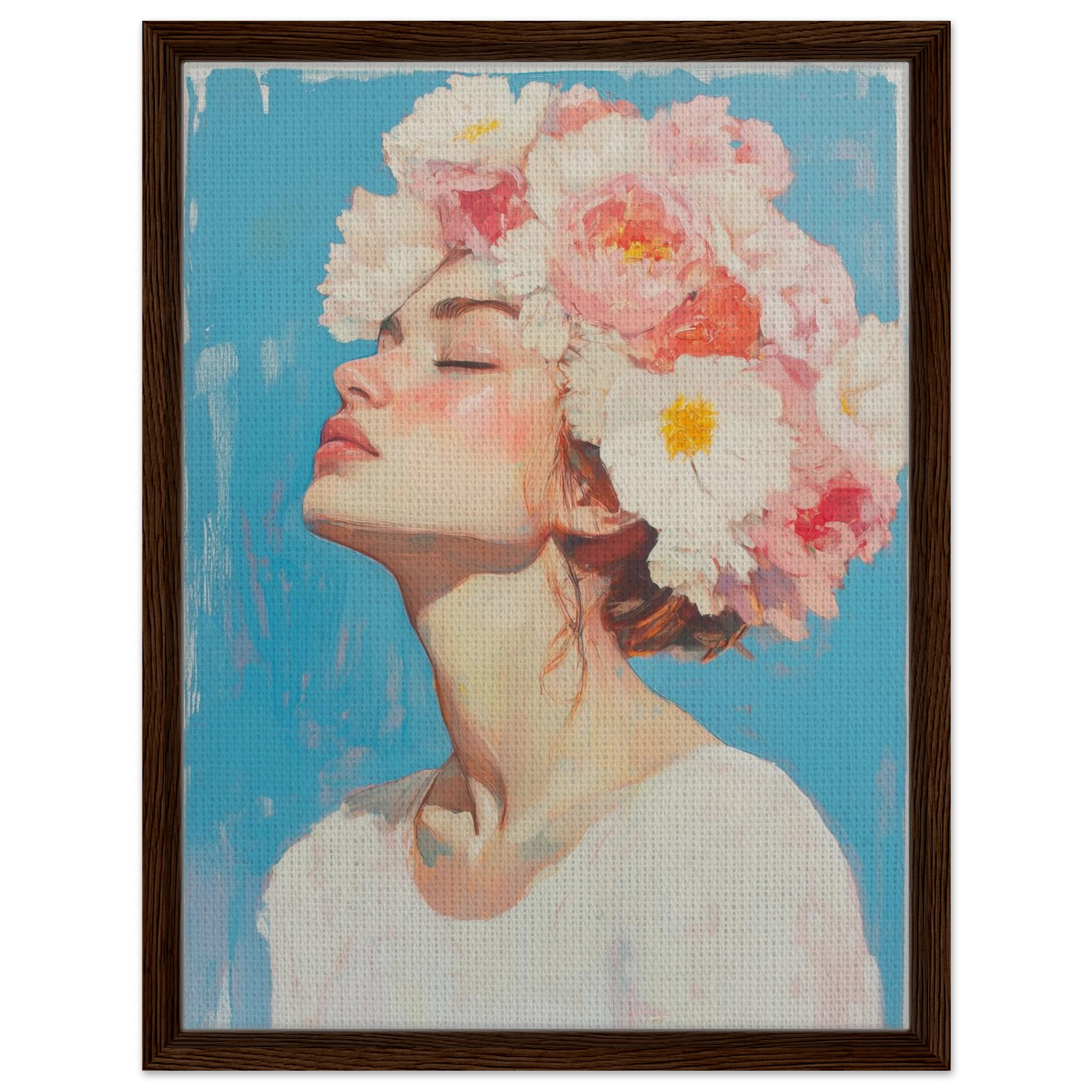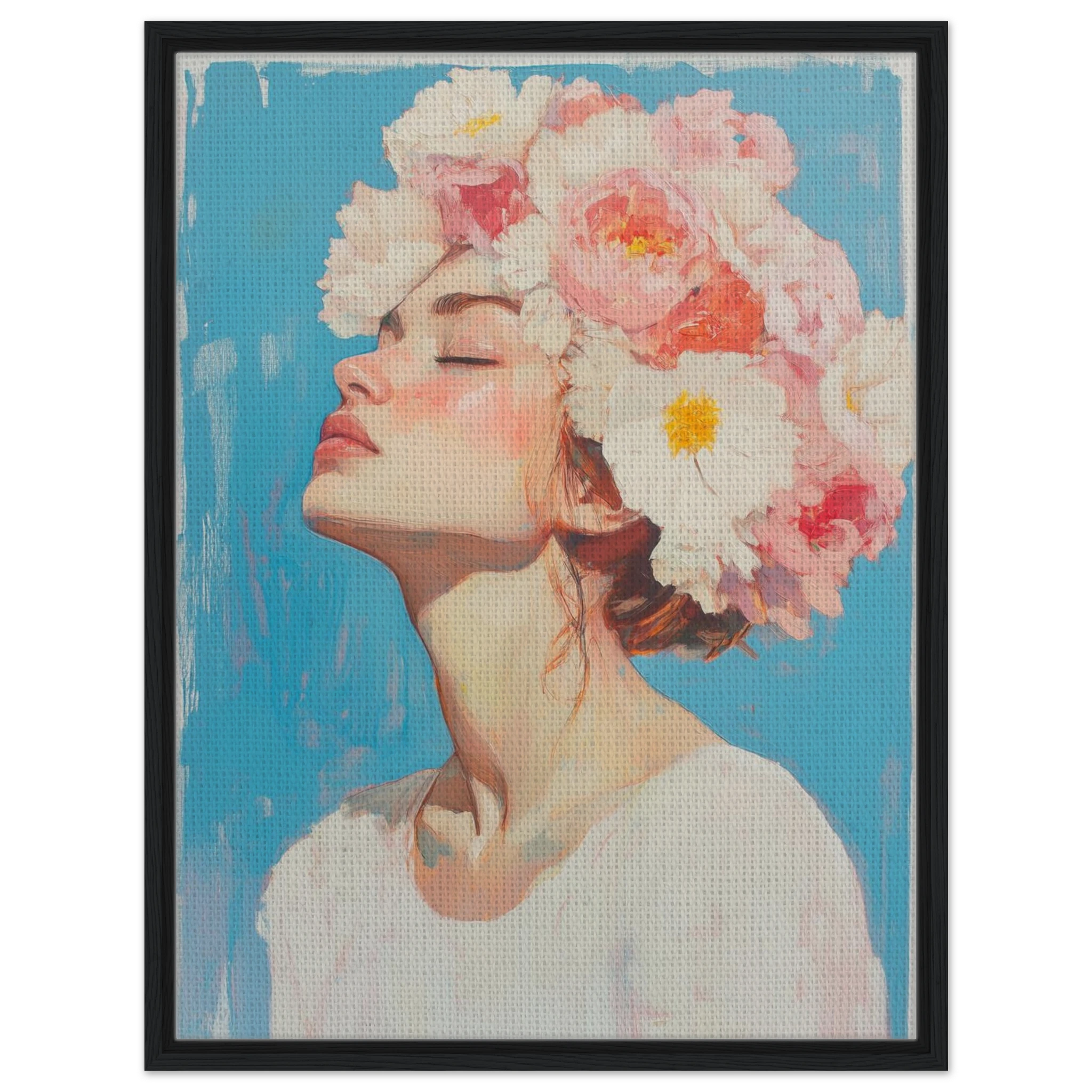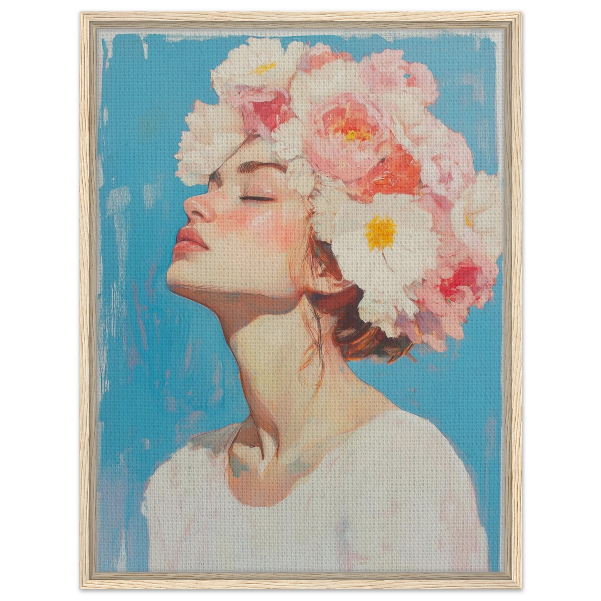 Head tilted to the sky, crowned in blush petals, she becomes the definition of radiant stillness. This piece feels like a sigh, a prayer, and a blooming all at once.