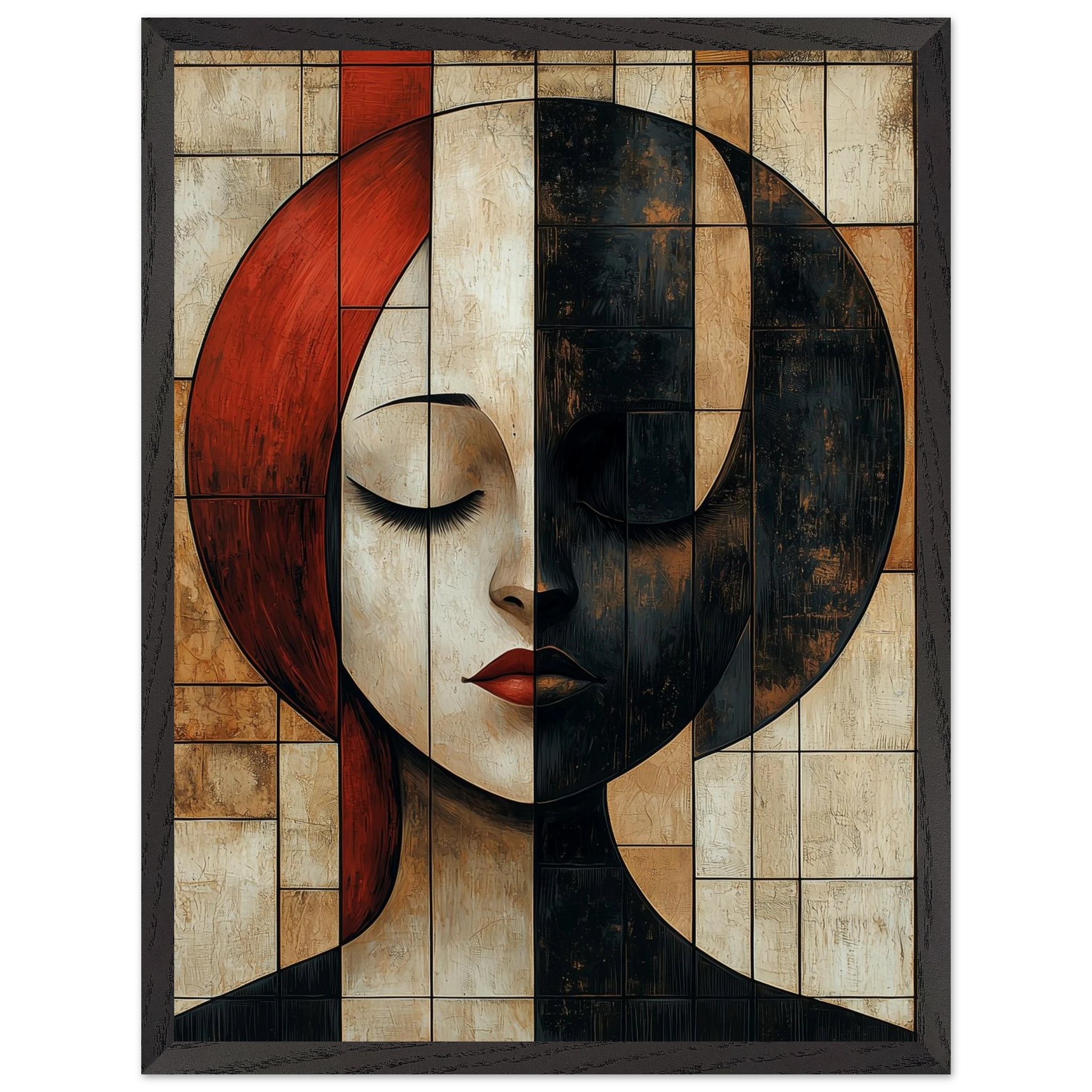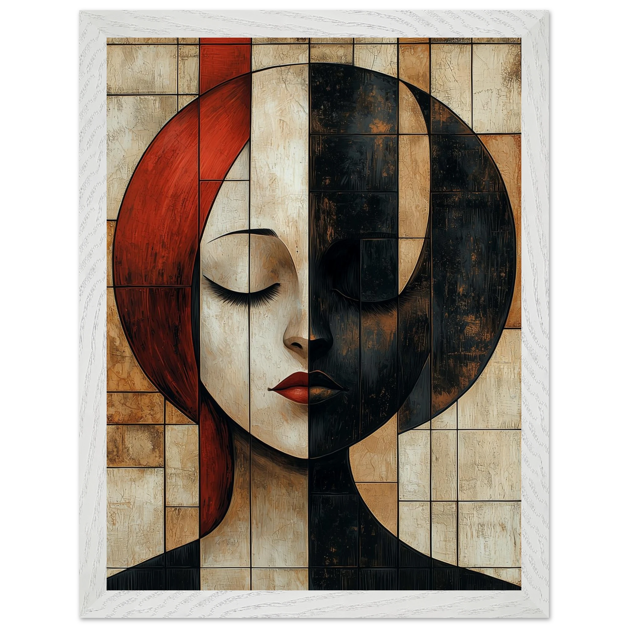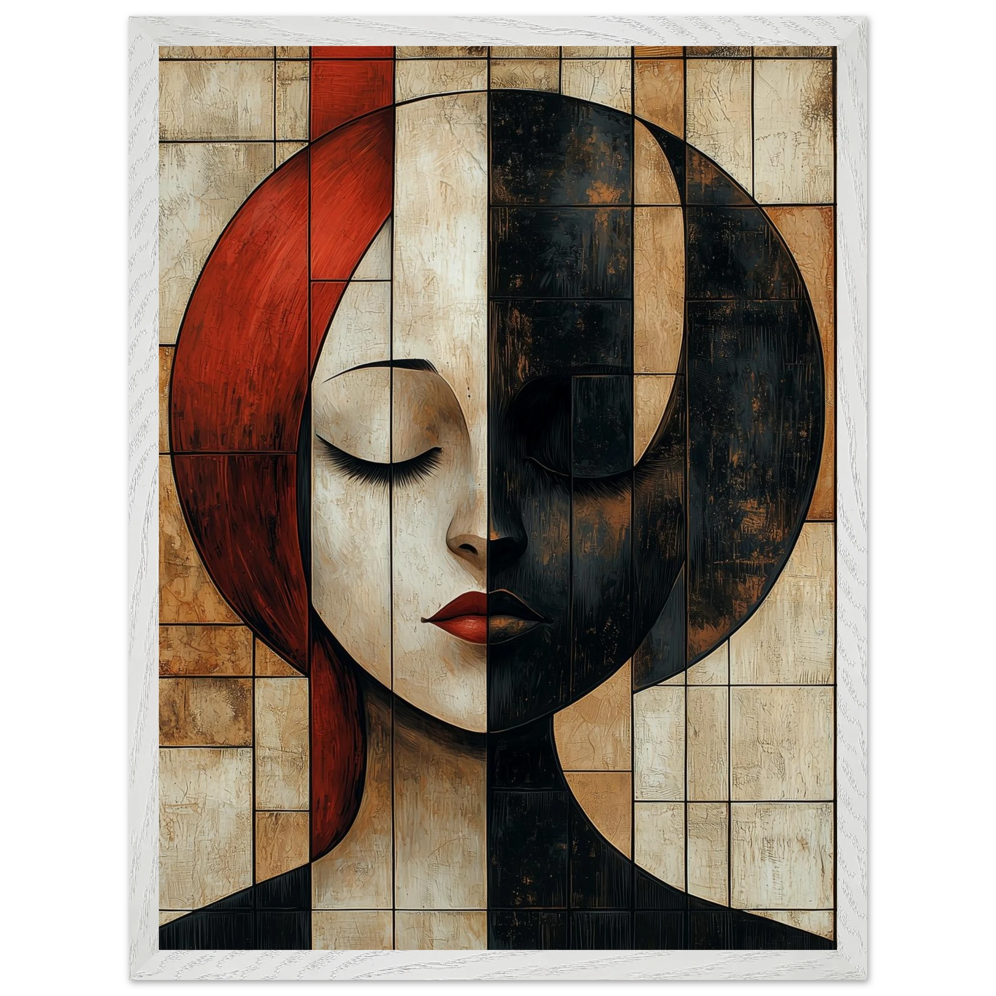Neither light nor dark claims her entirely. She holds both — not in battle, but in silent agreement.