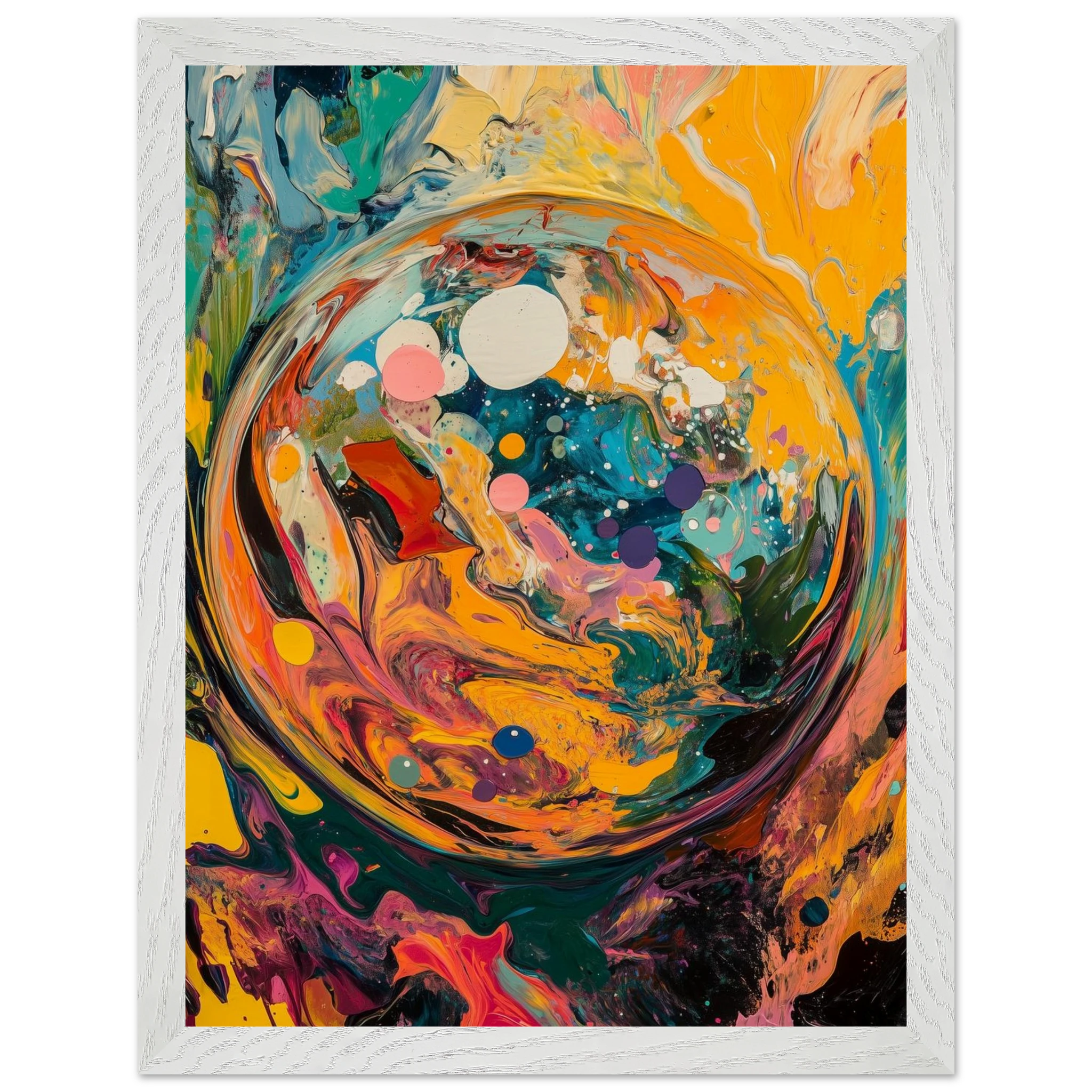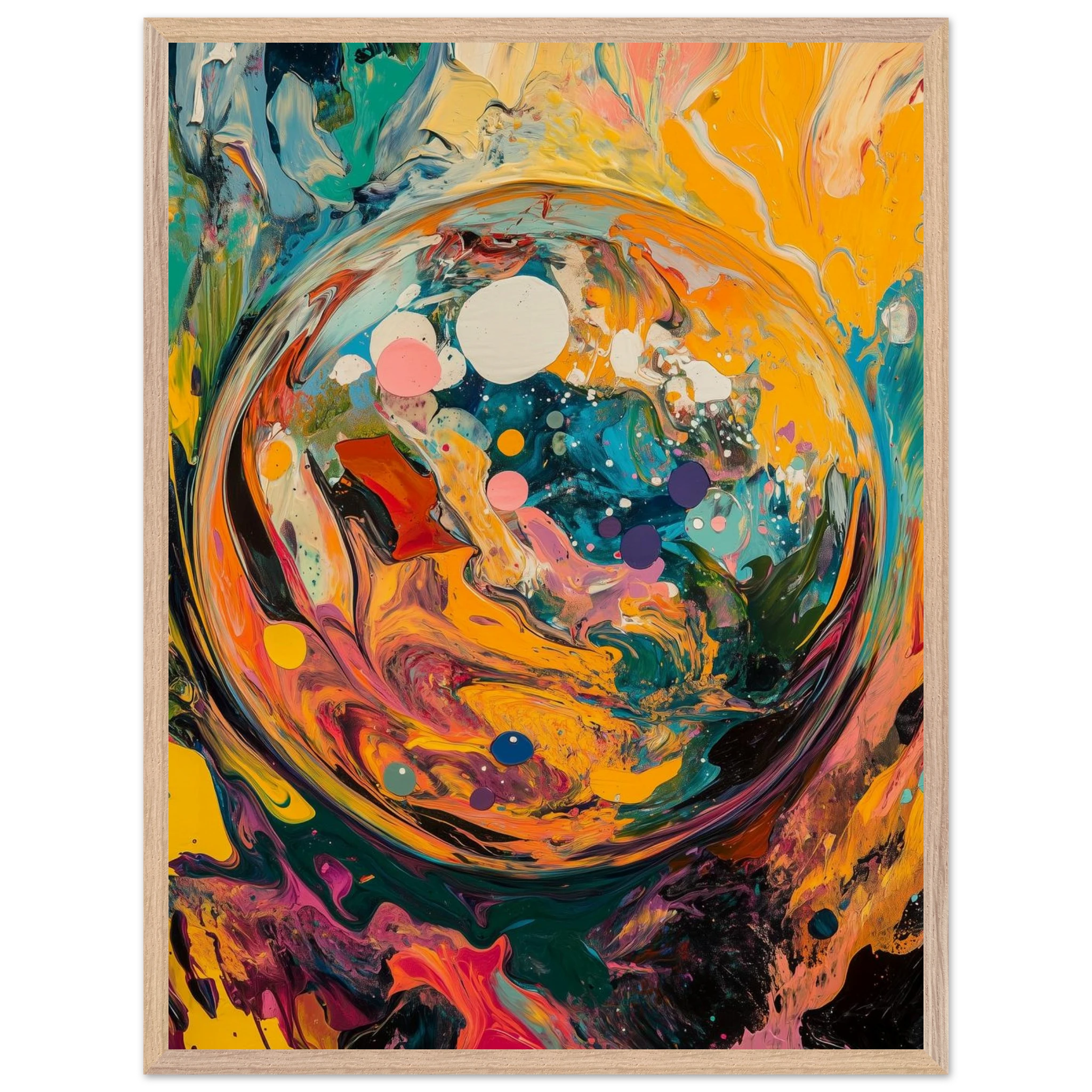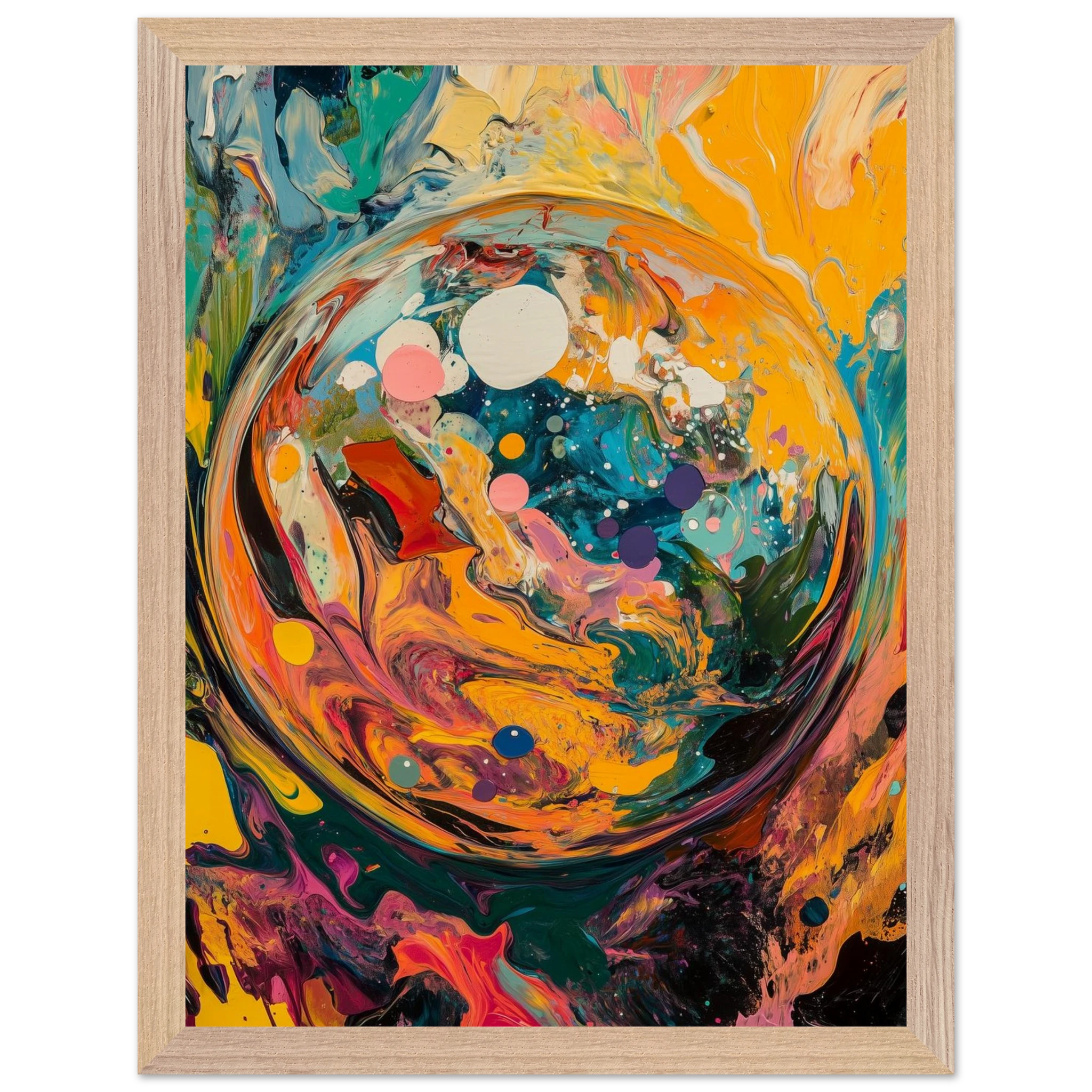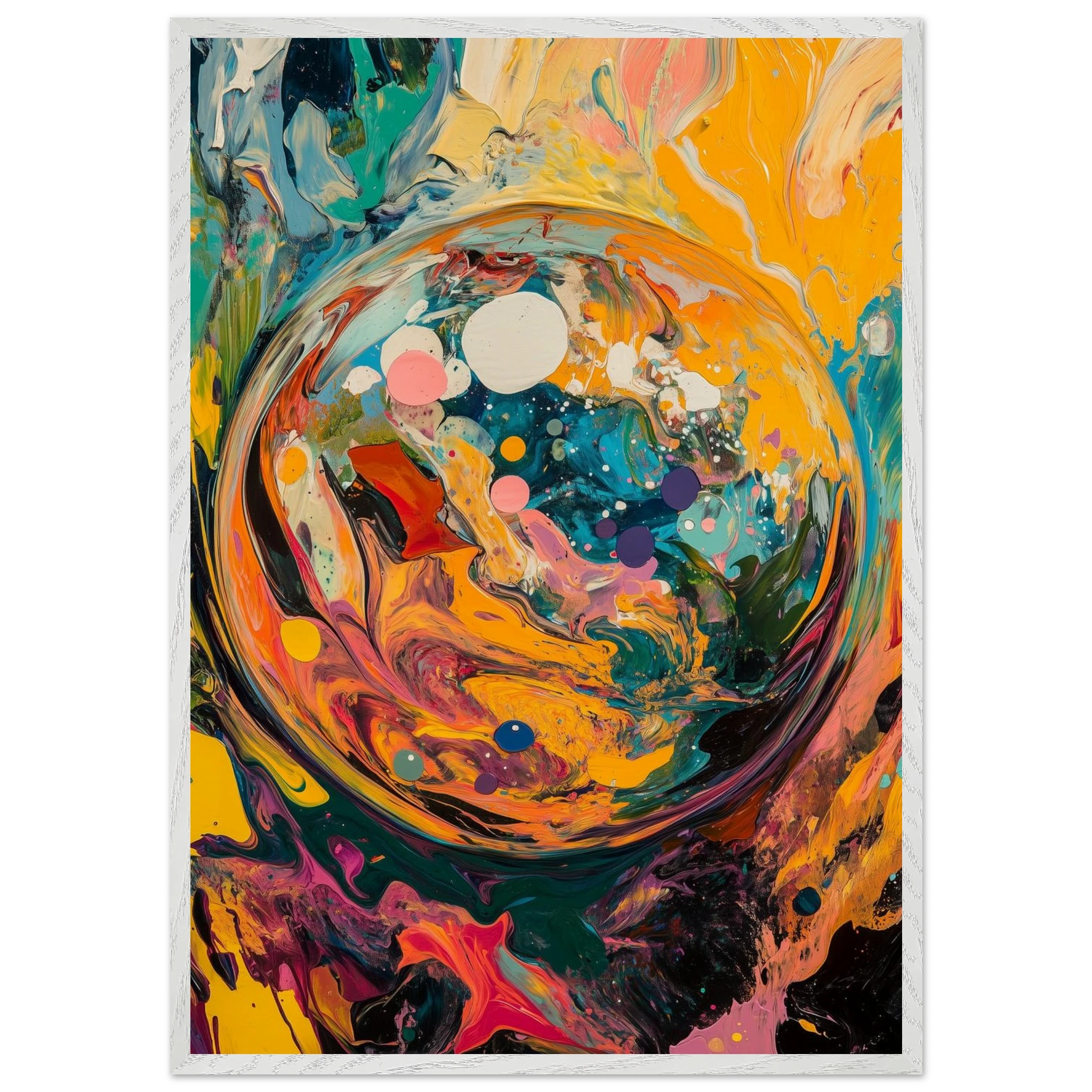 Before time, before memory—there was this: a world spiraling into existence. A dynamic burst of color and motion, this piece captures the beauty of beginnings.