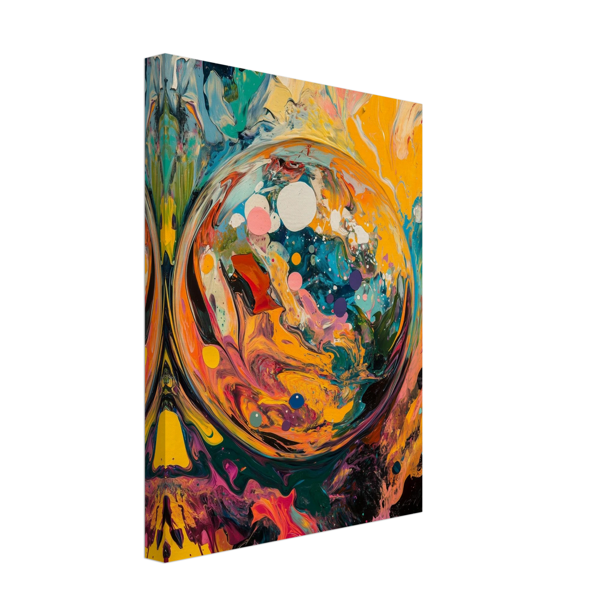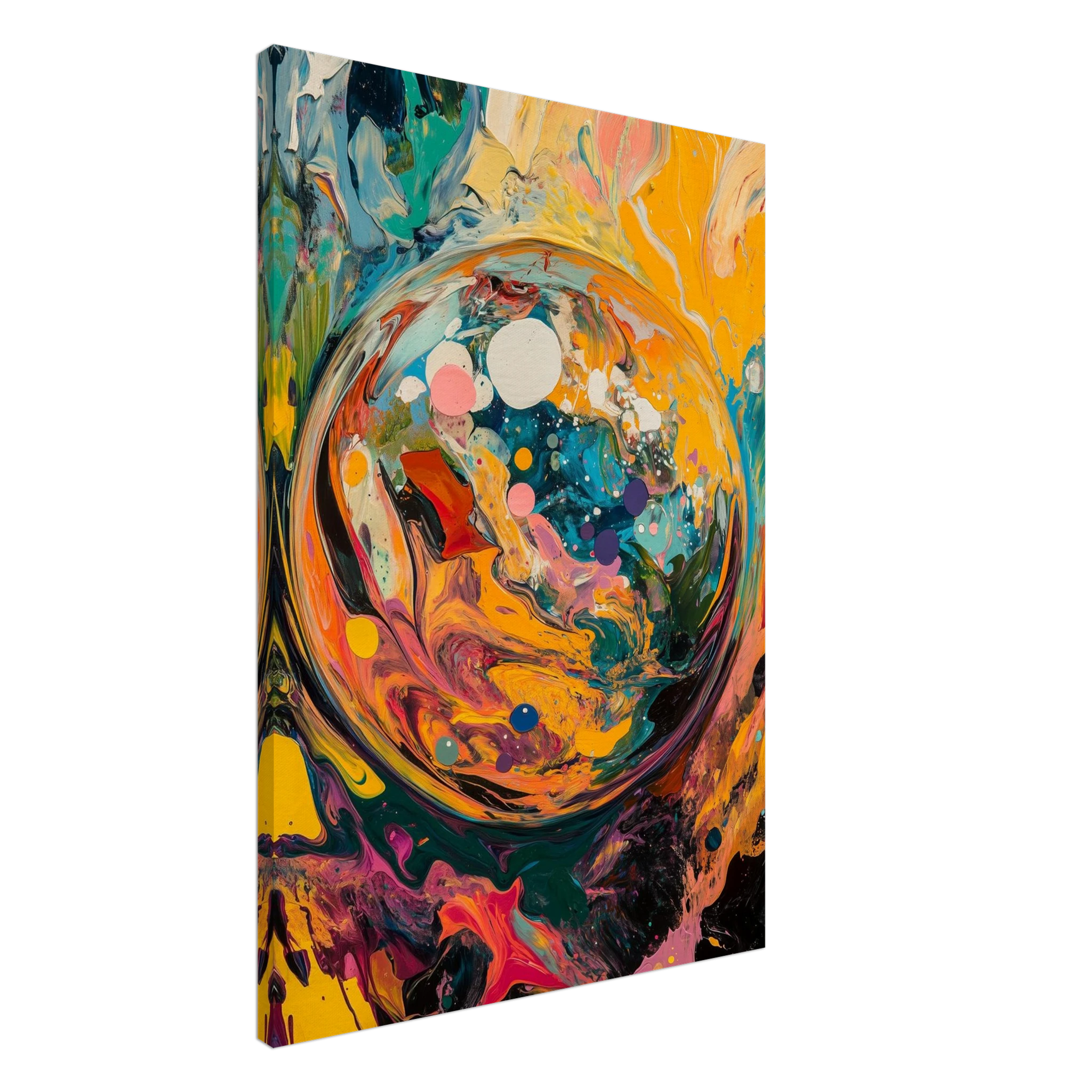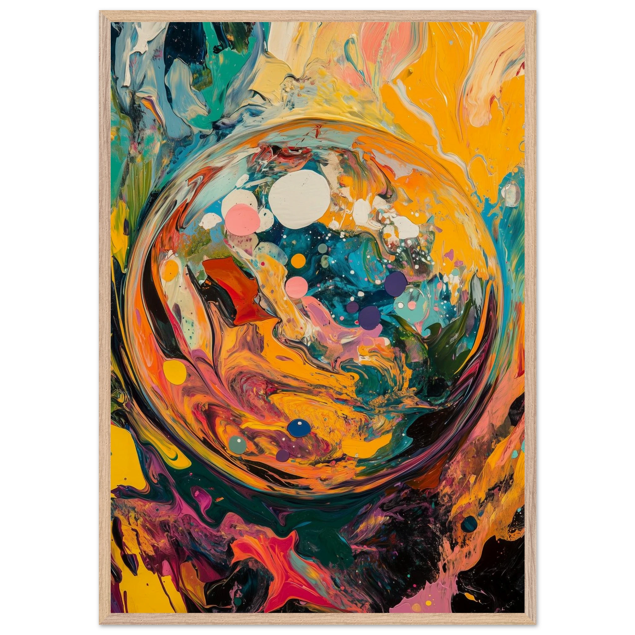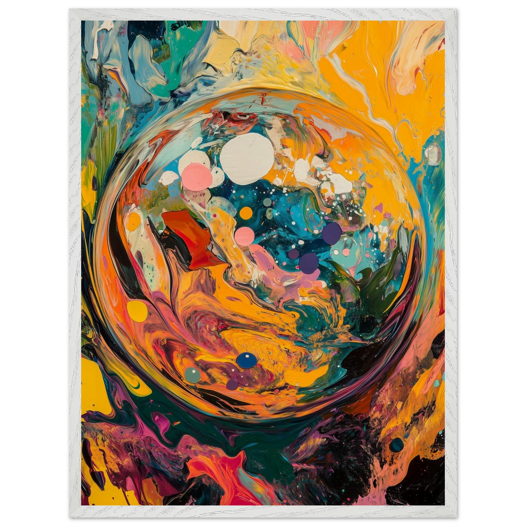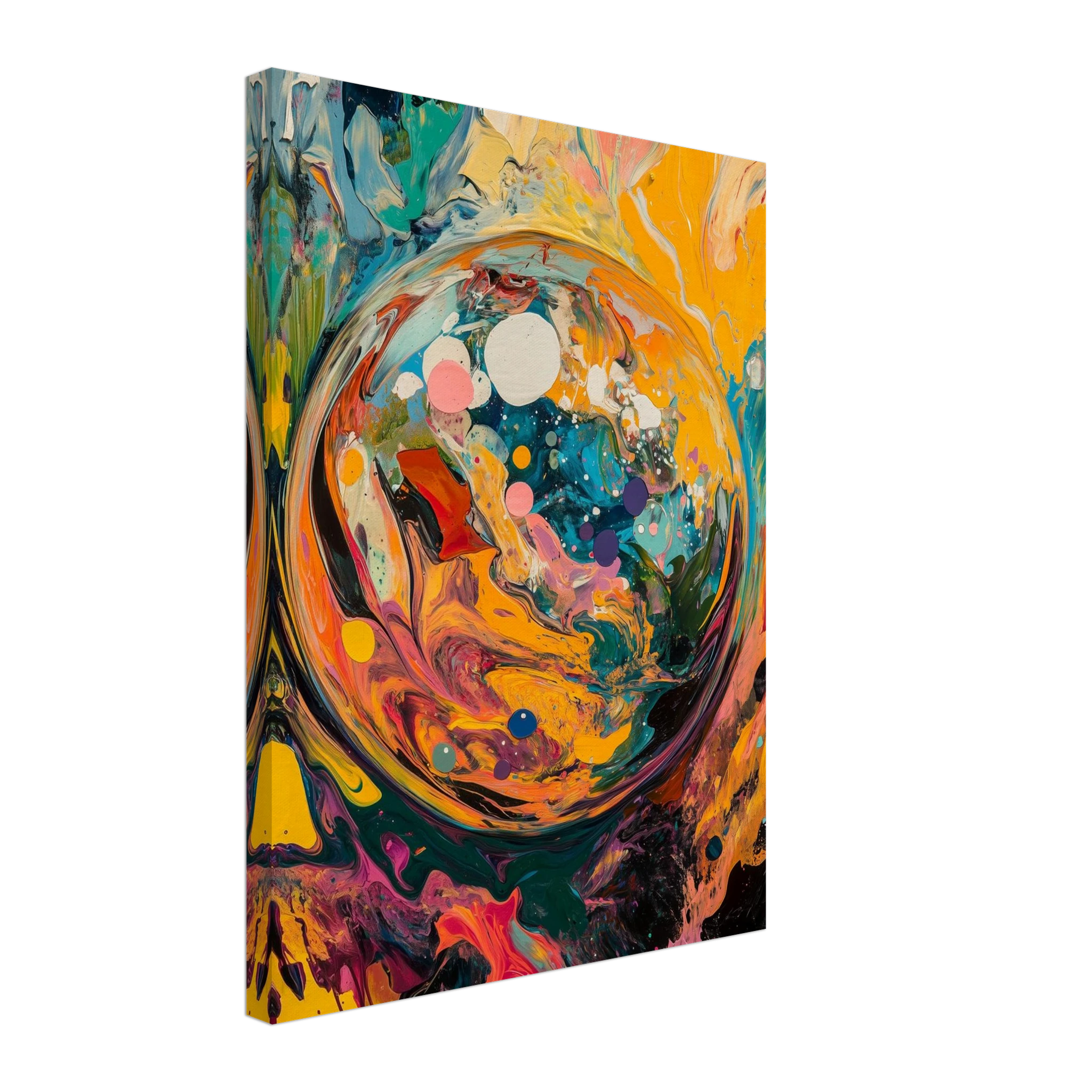 Before time, before memory—there was this: a world spiraling into existence. A dynamic burst of color and motion, this piece captures the beauty of beginnings.