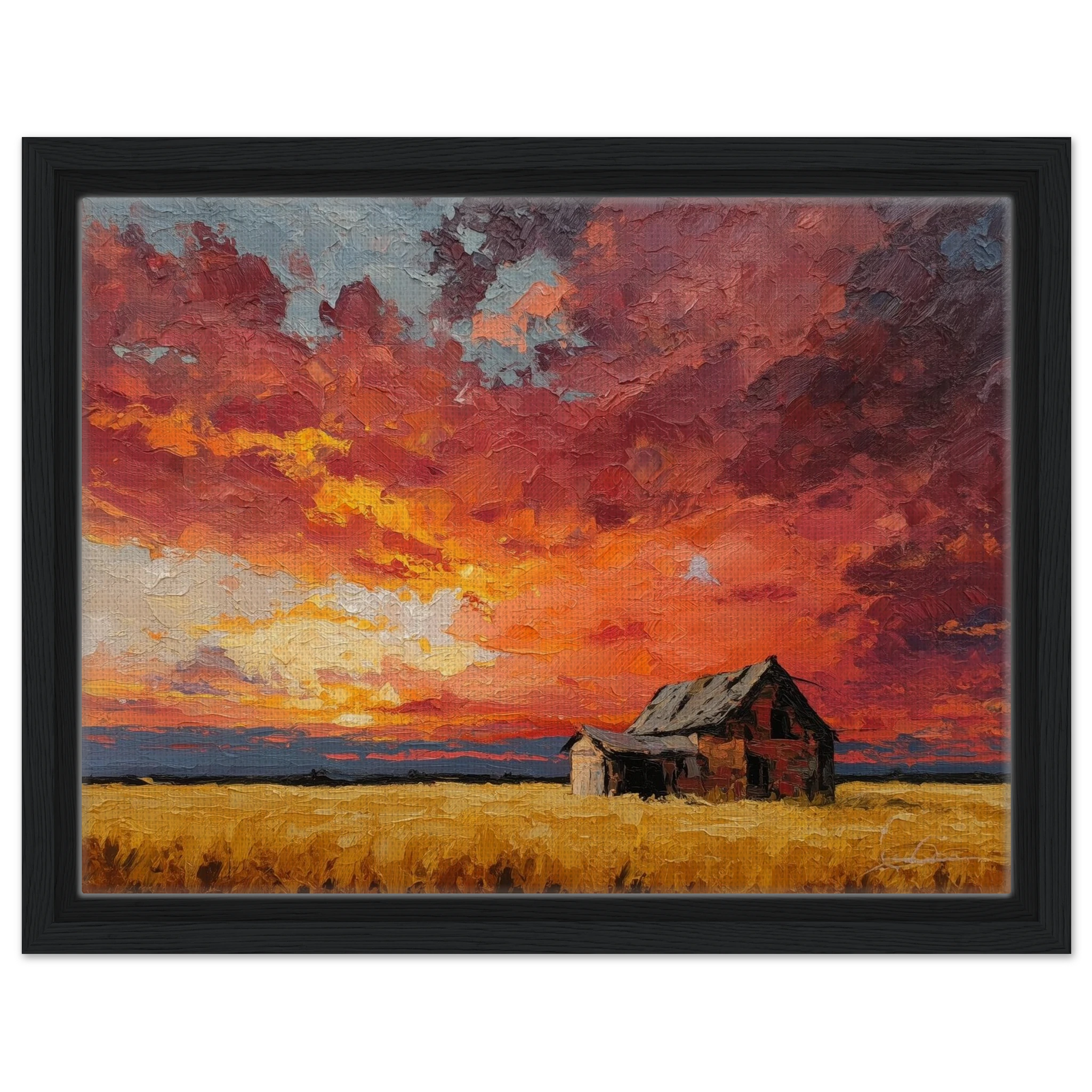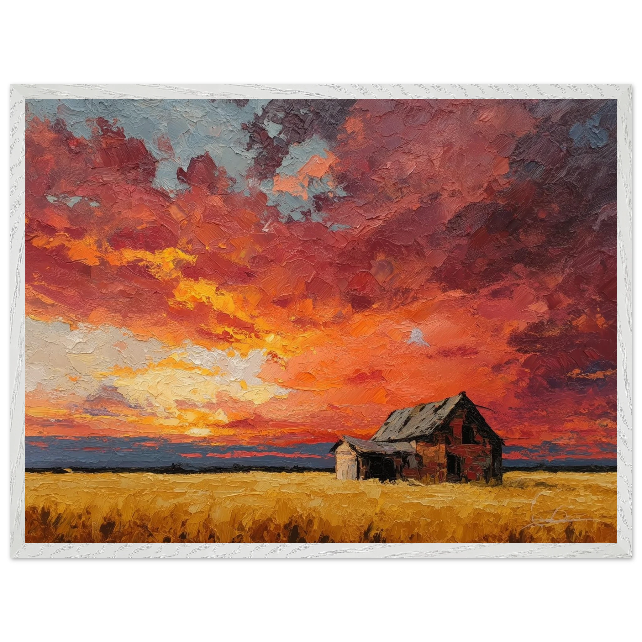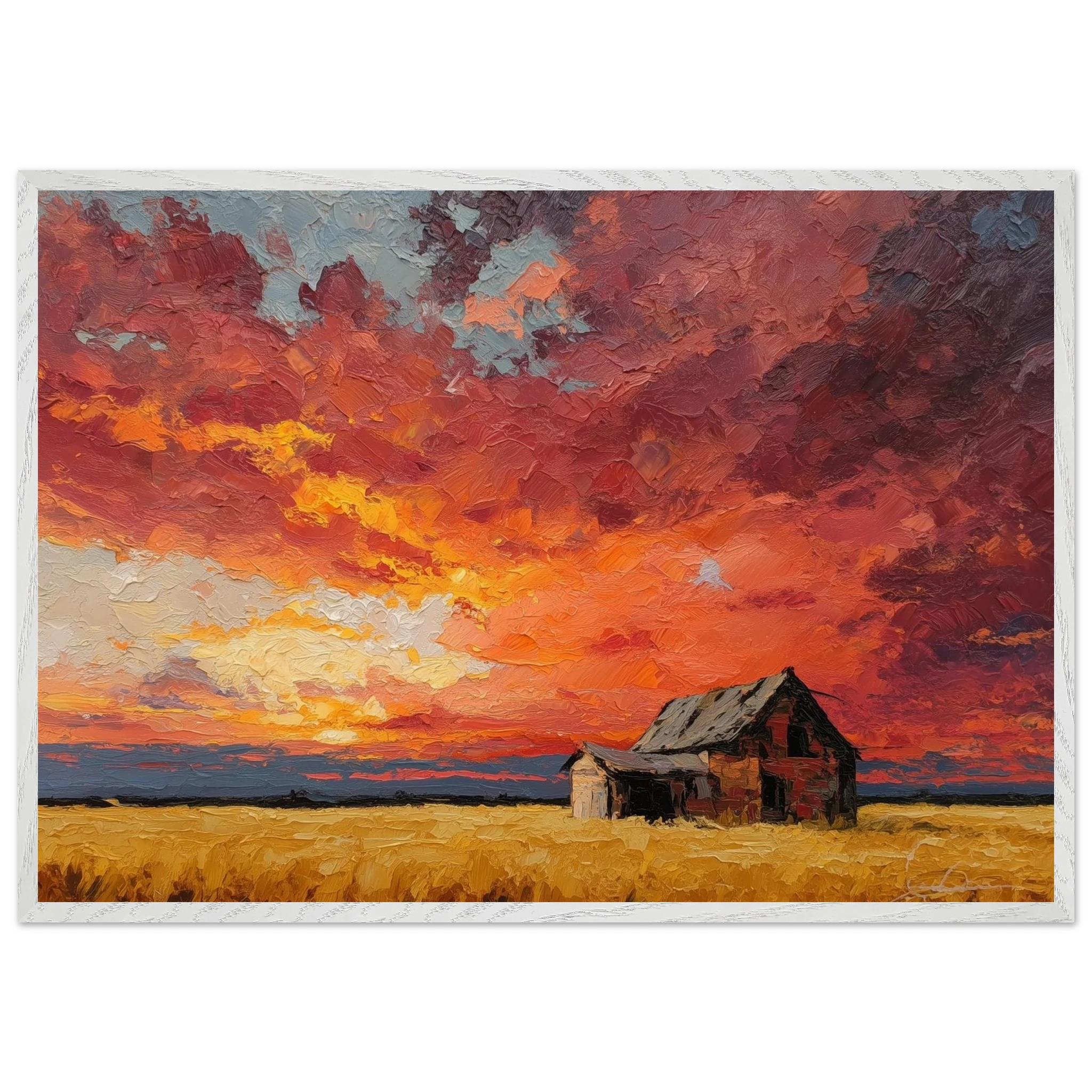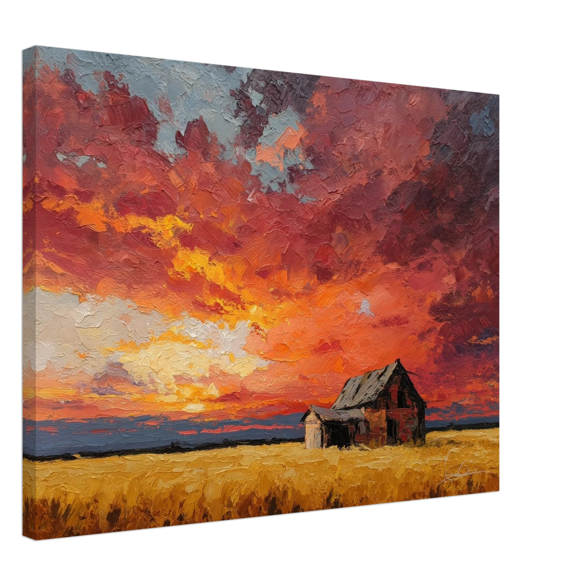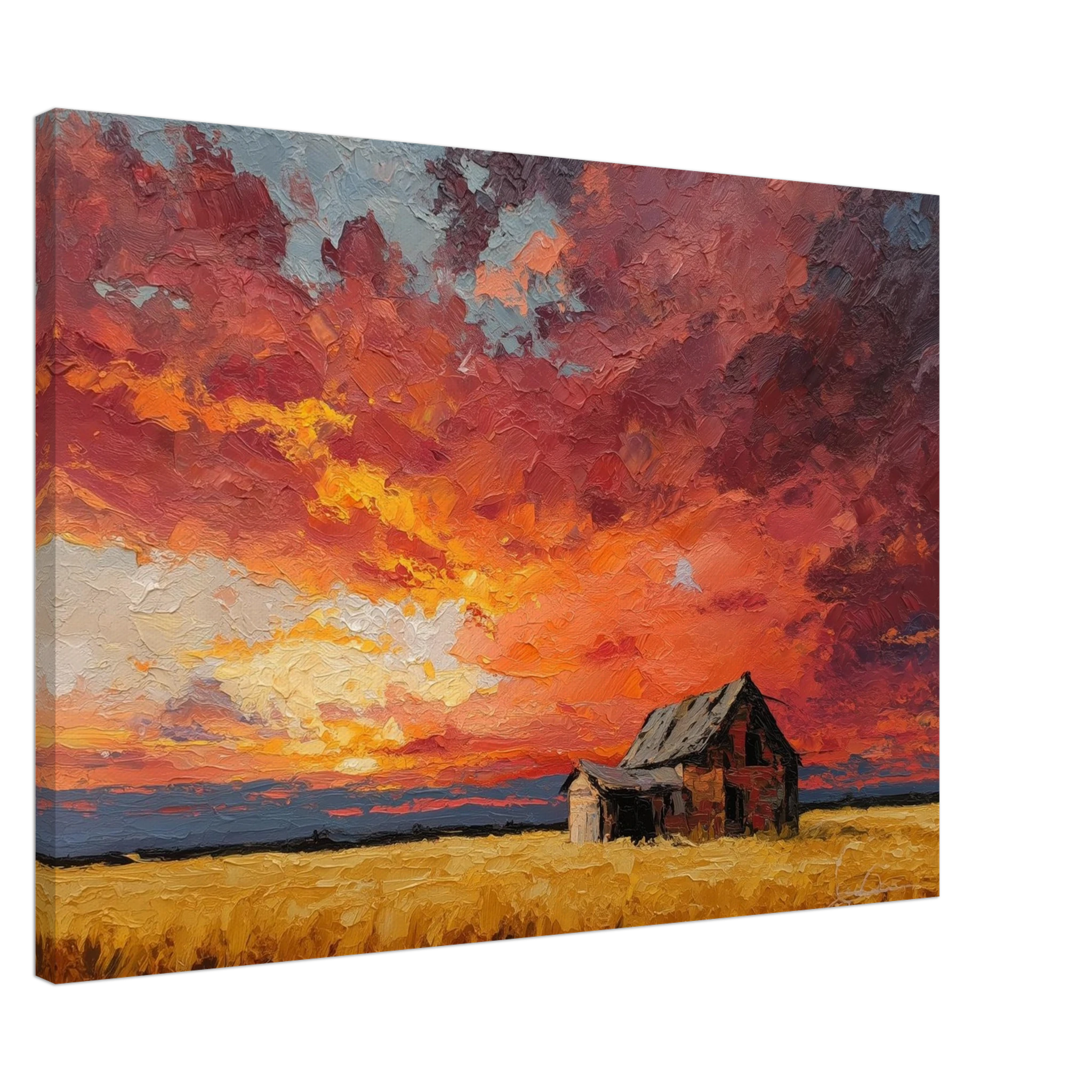 Nestled in golden fields, the barn watches the sun fall like wheat from the heavens — warm, abundant, final.