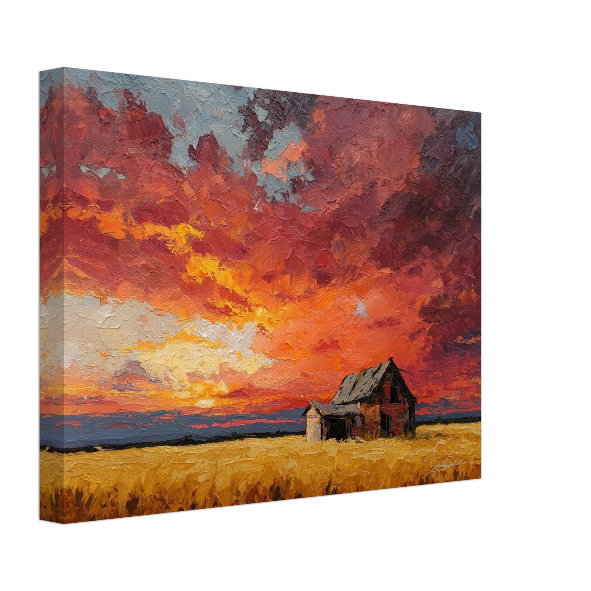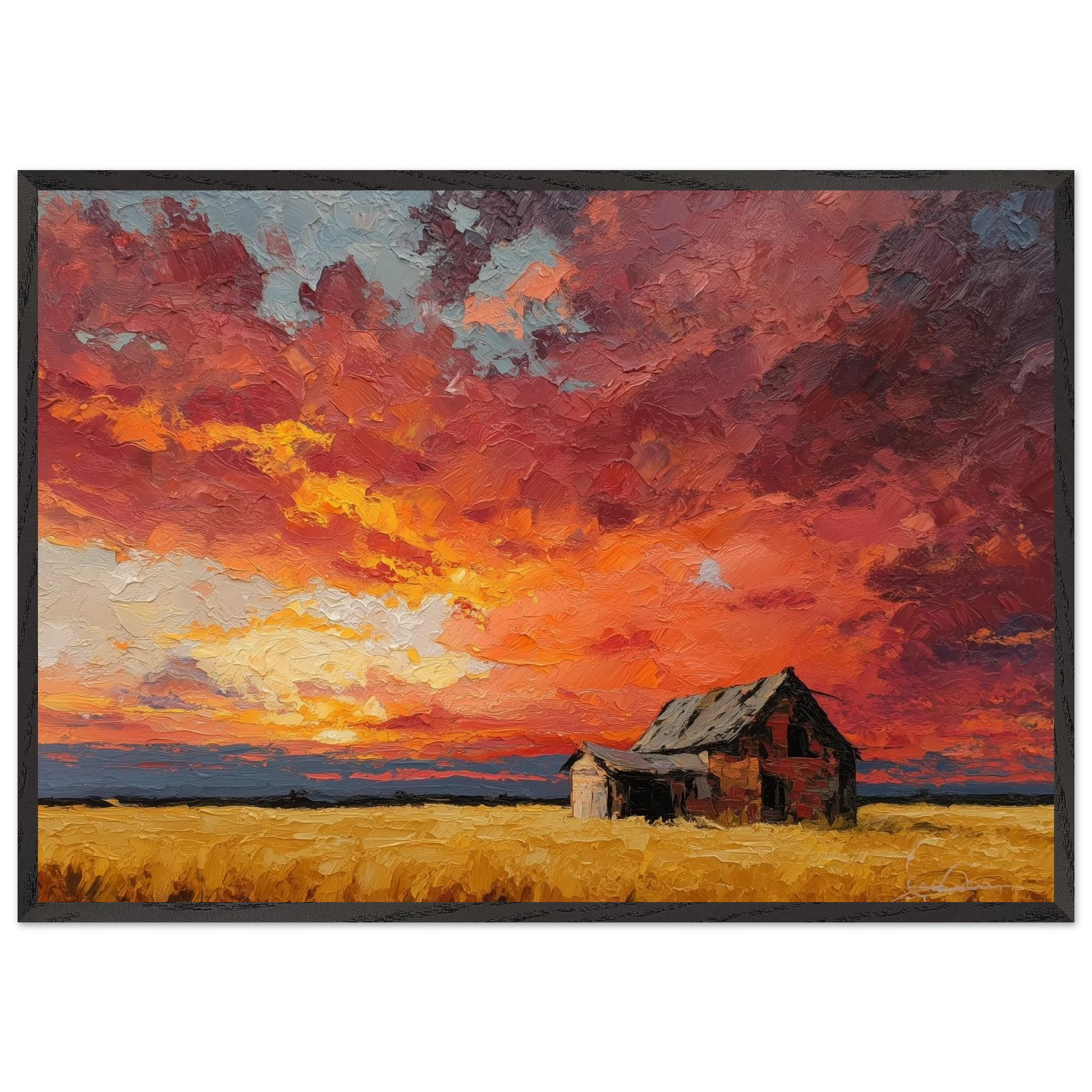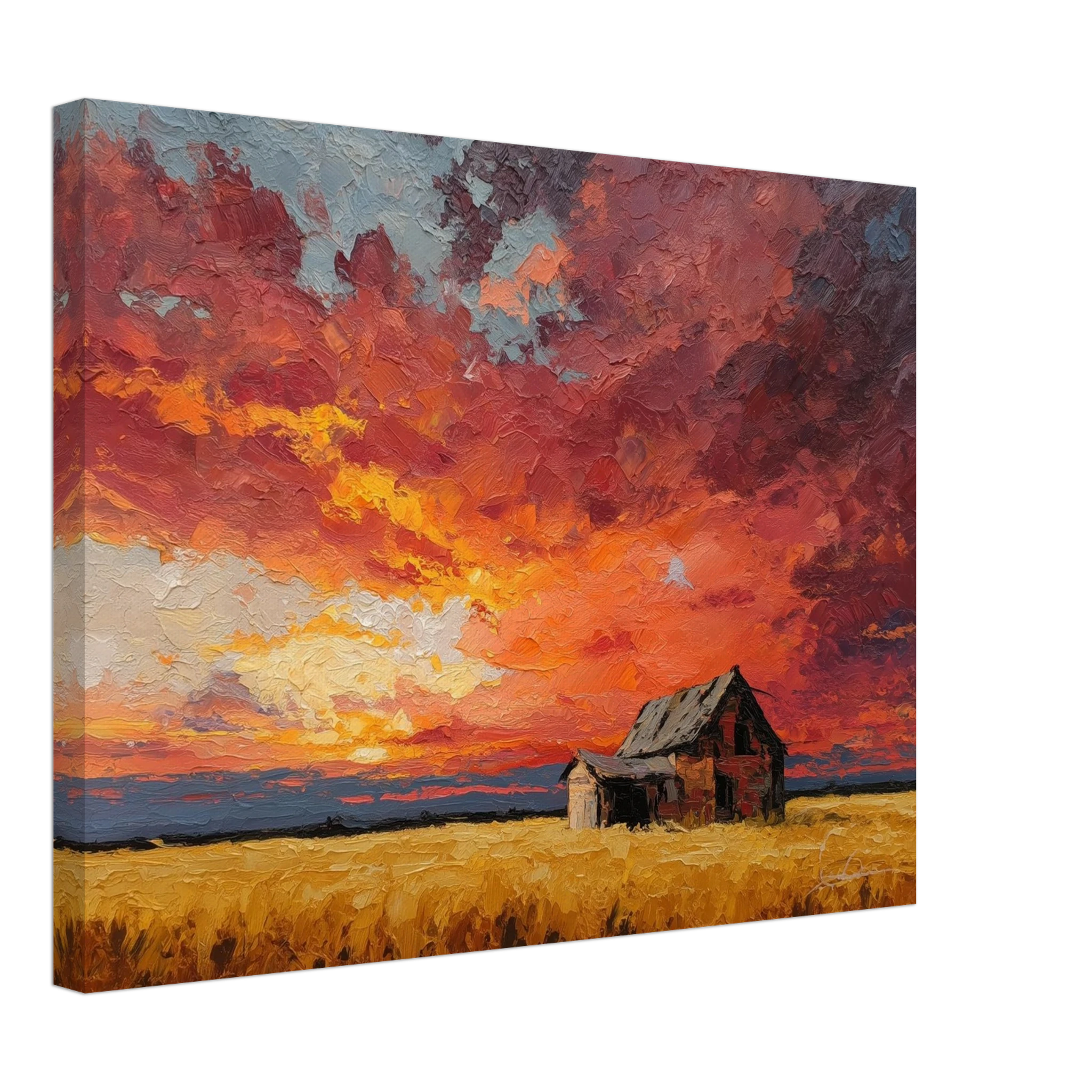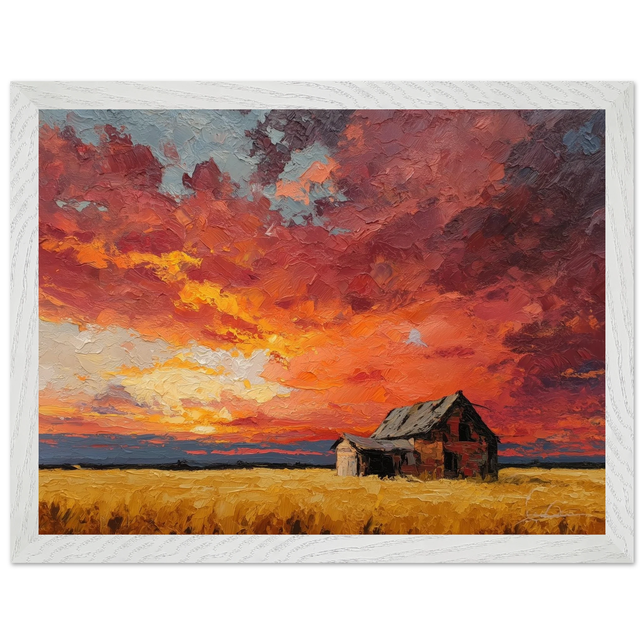 Nestled in golden fields, the barn watches the sun fall like wheat from the heavens — warm, abundant, final.