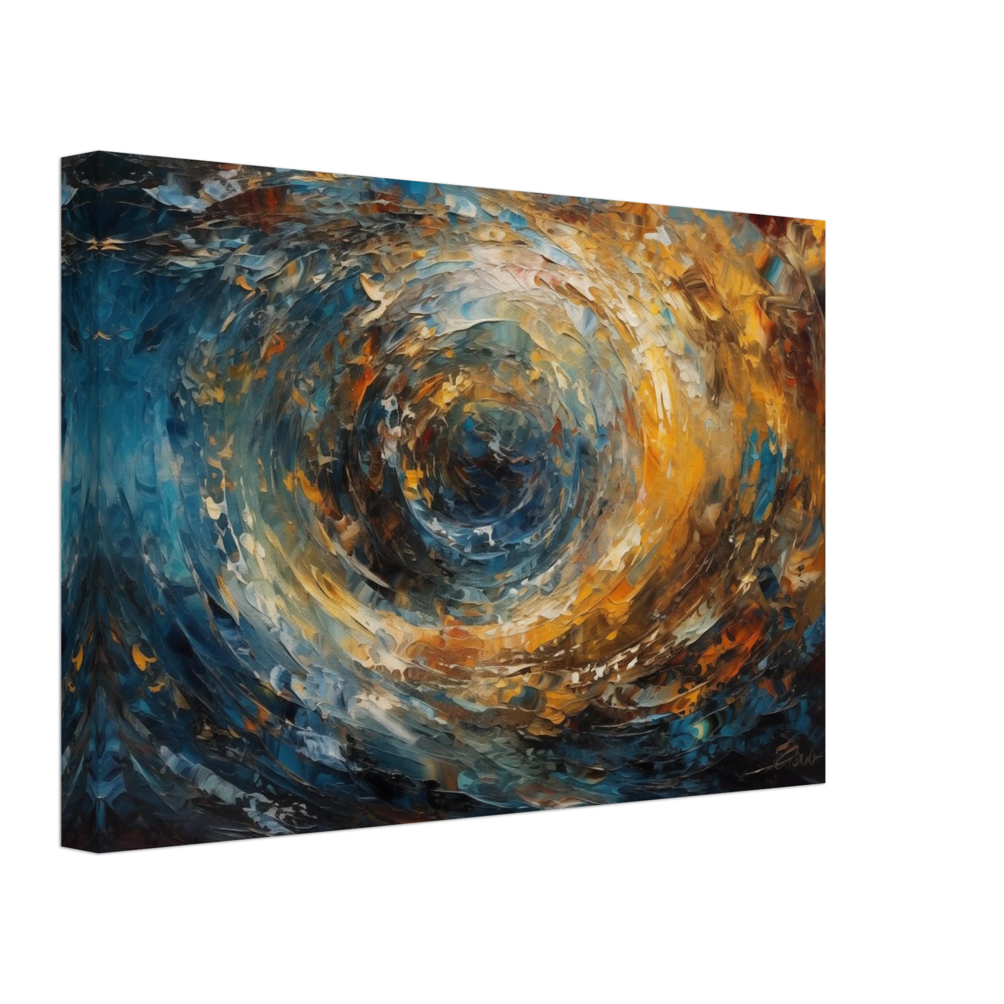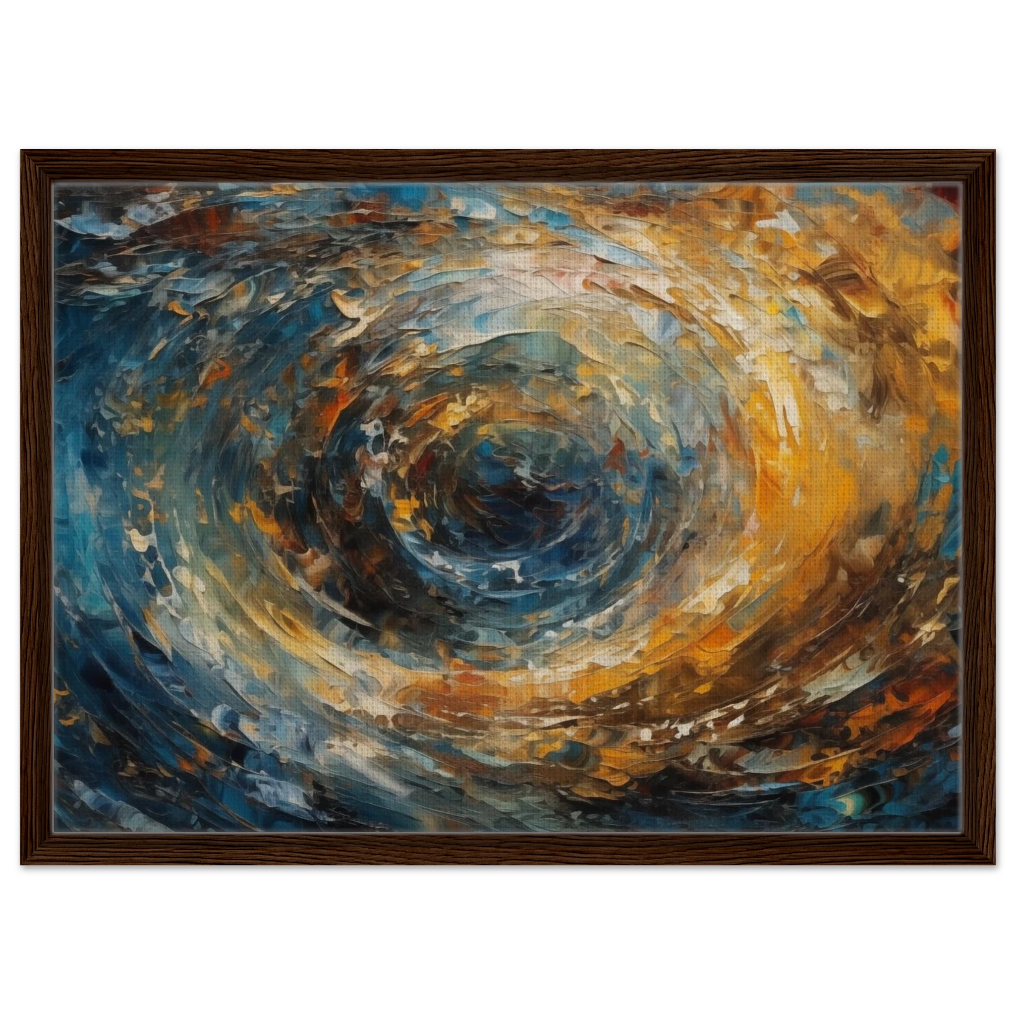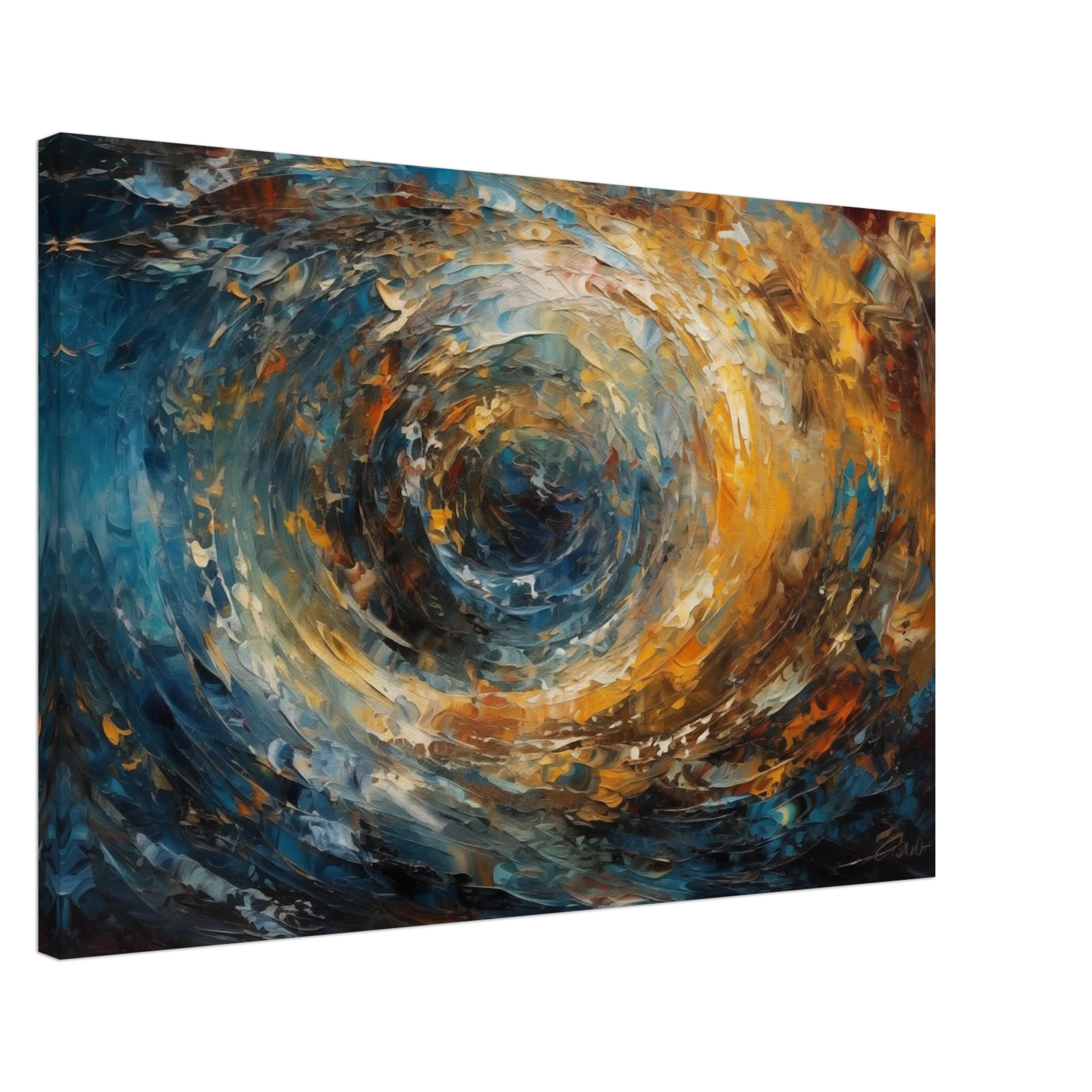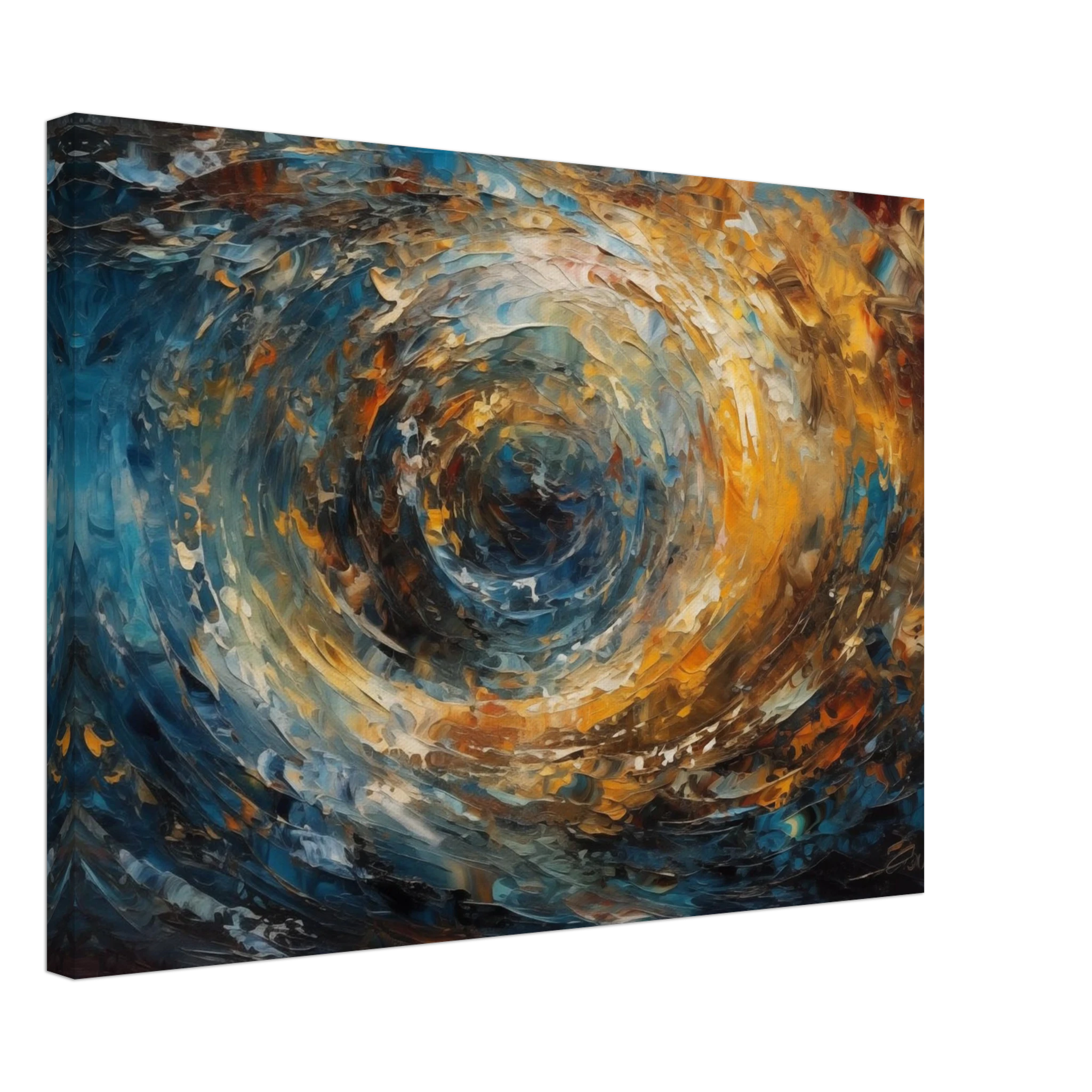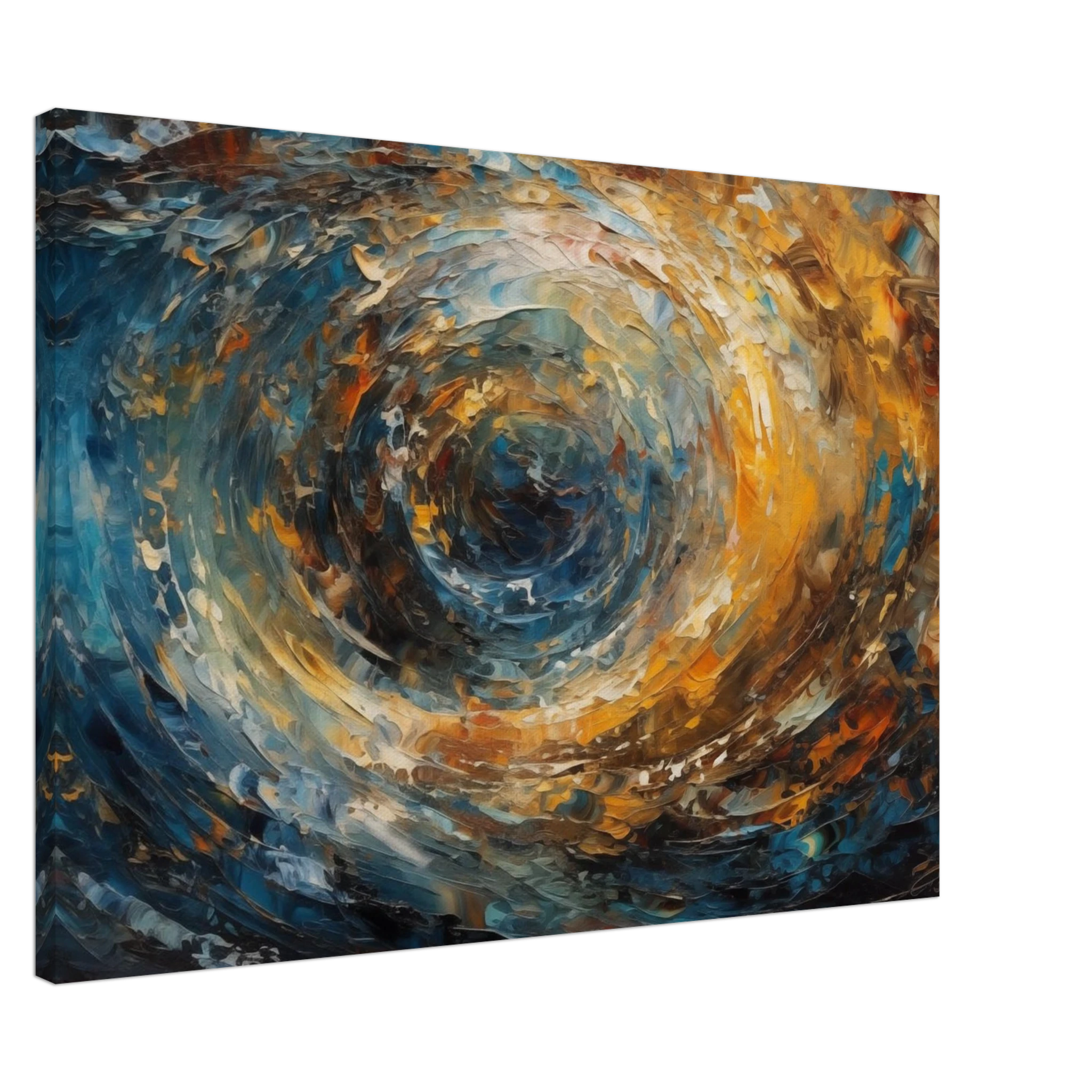 This isn’t just color—it’s tension and release, caught mid-spin. A hypnotic vortex of ochre, slate, and flame that feels like falling into thought or fire. For rooms that crave mood, not decoration.