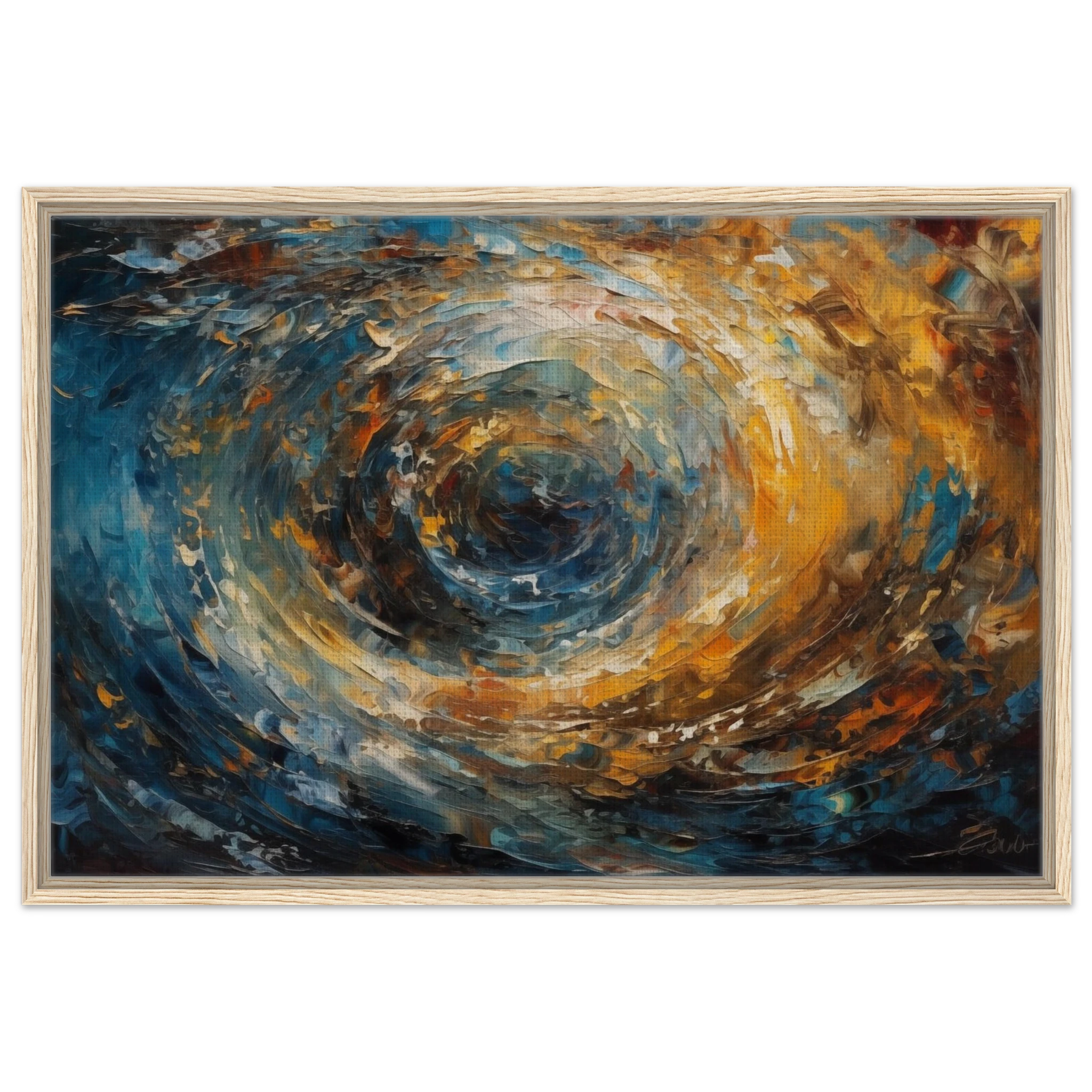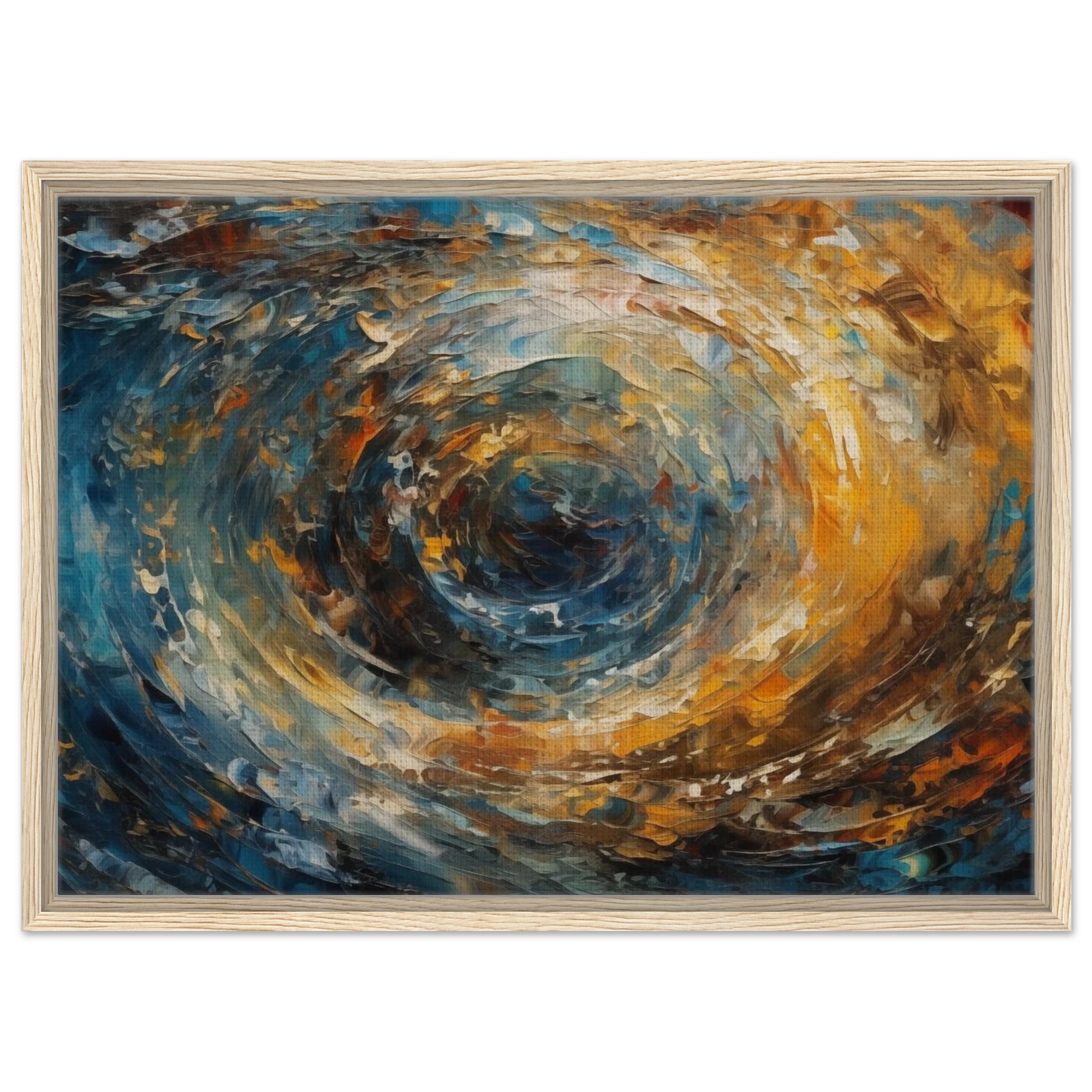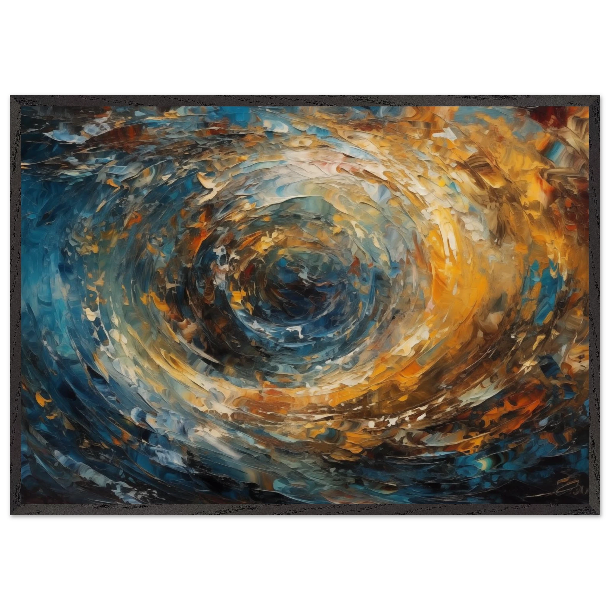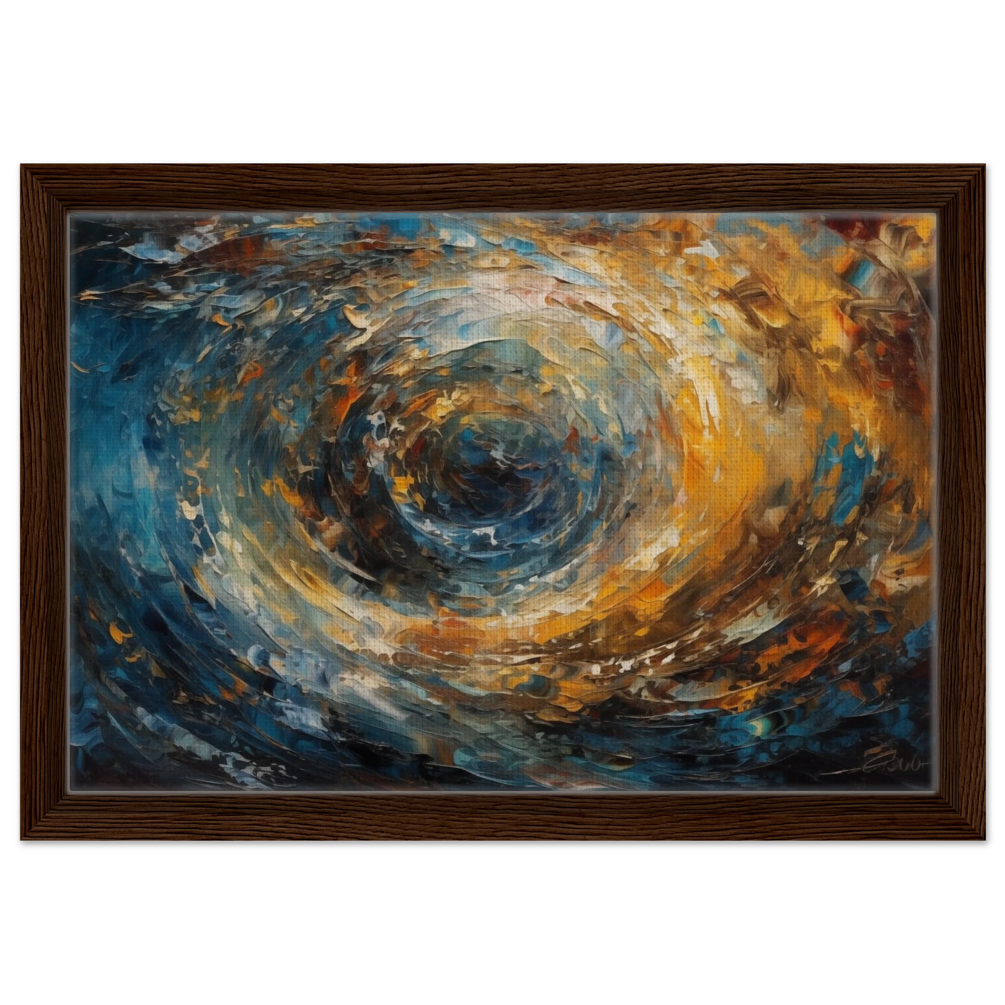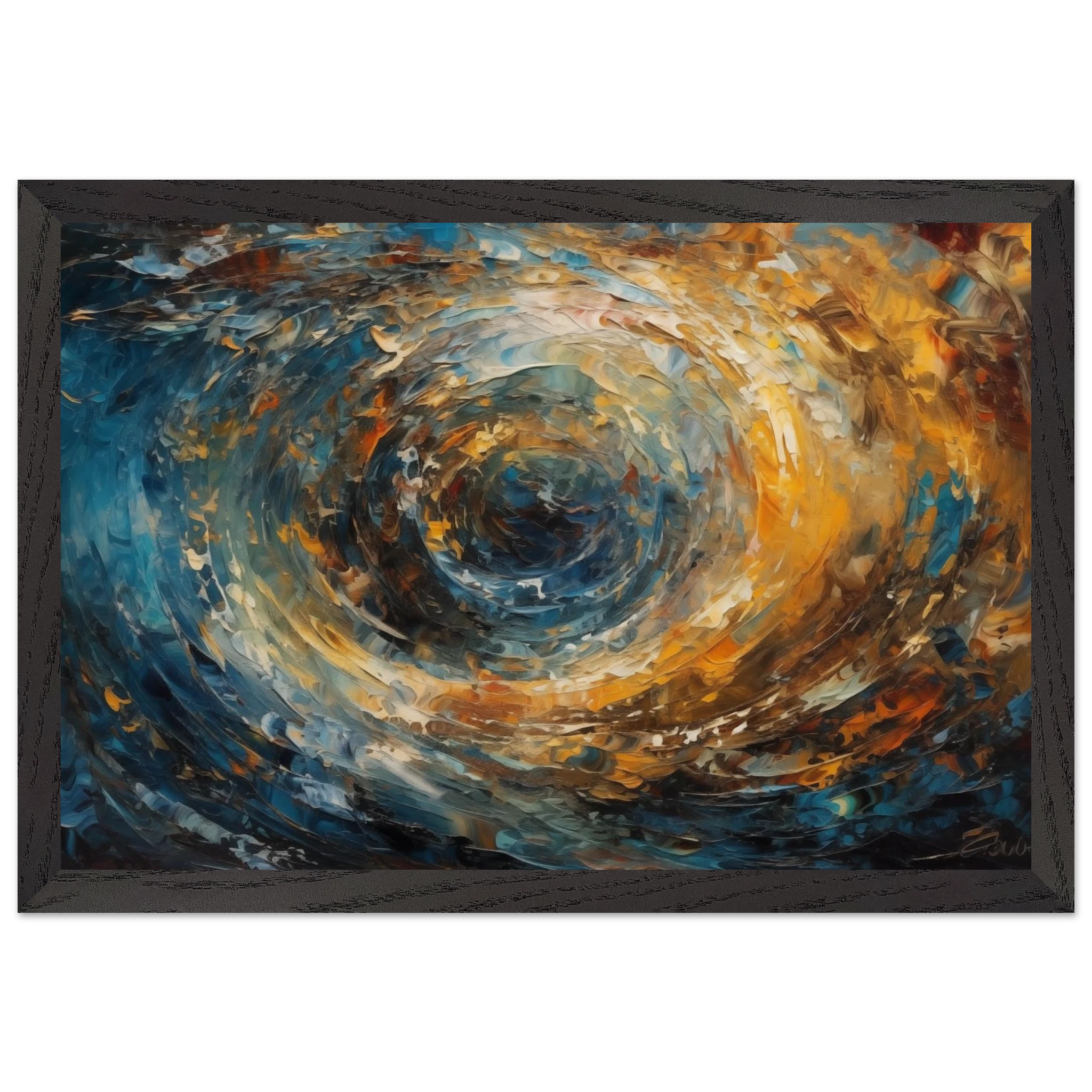 This isn’t just color—it’s tension and release, caught mid-spin. A hypnotic vortex of ochre, slate, and flame that feels like falling into thought or fire. For rooms that crave mood, not decoration.