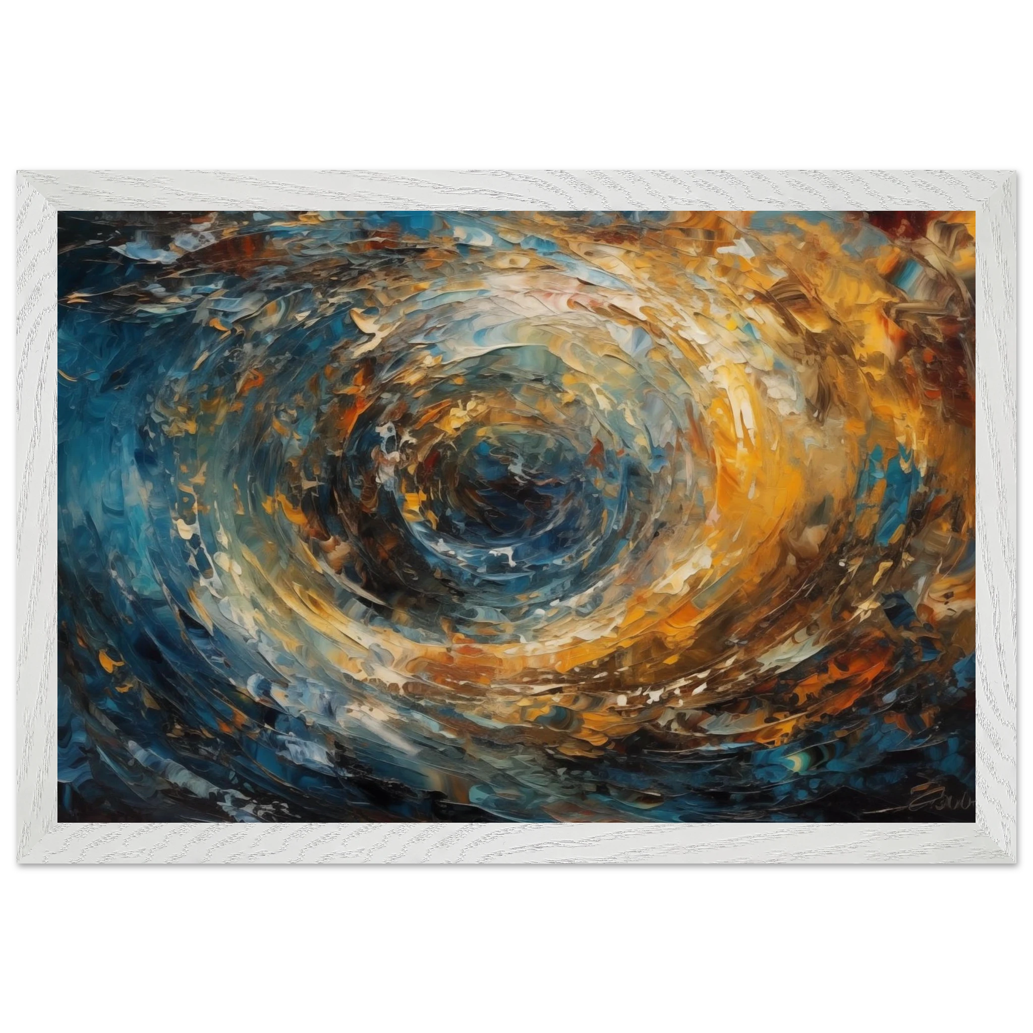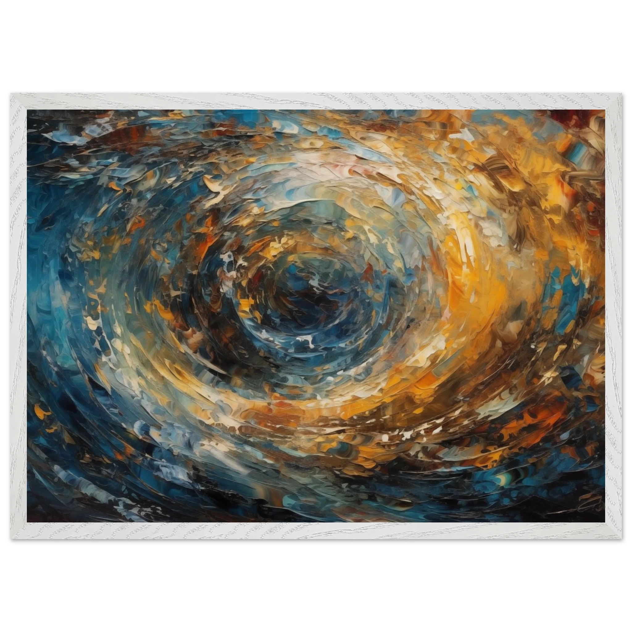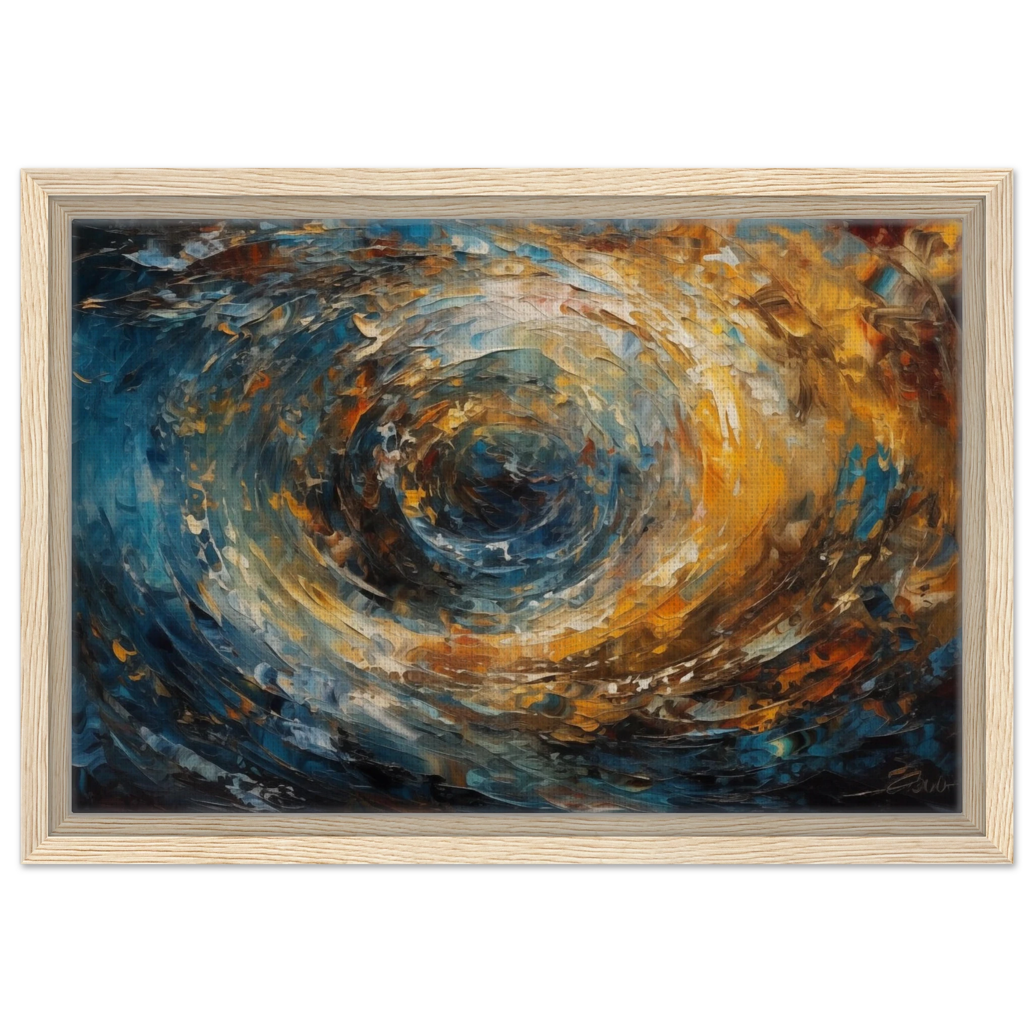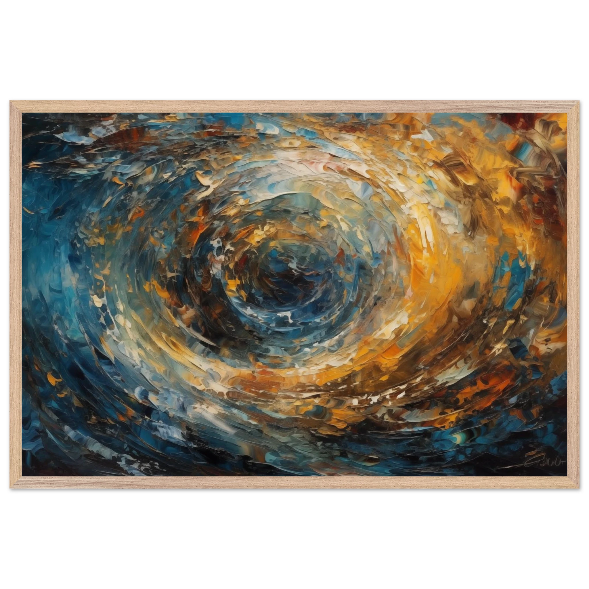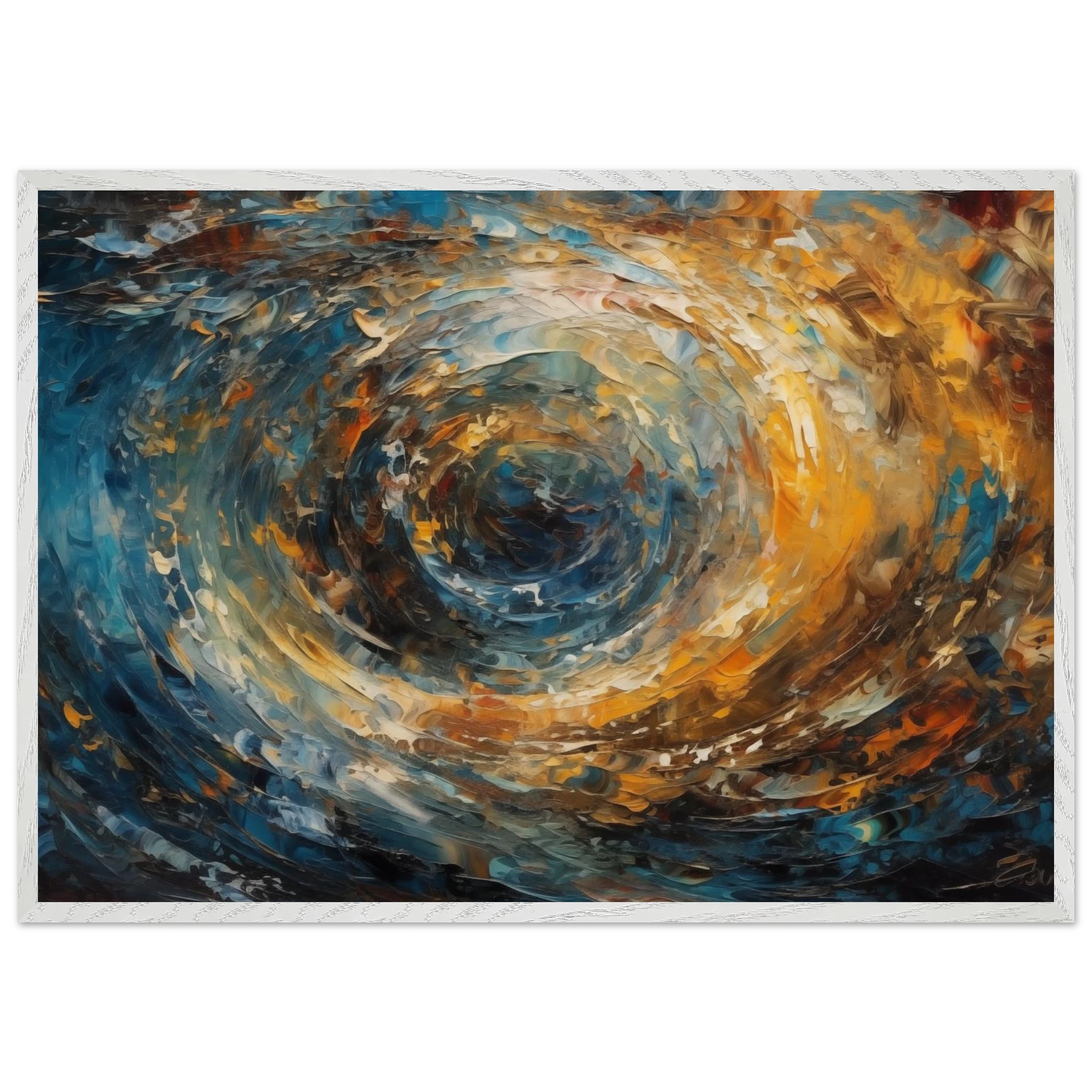 This isn’t just color—it’s tension and release, caught mid-spin. A hypnotic vortex of ochre, slate, and flame that feels like falling into thought or fire. For rooms that crave mood, not decoration.