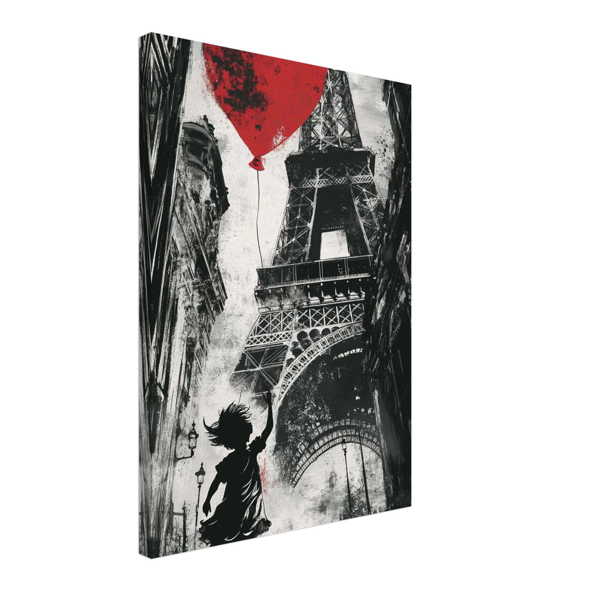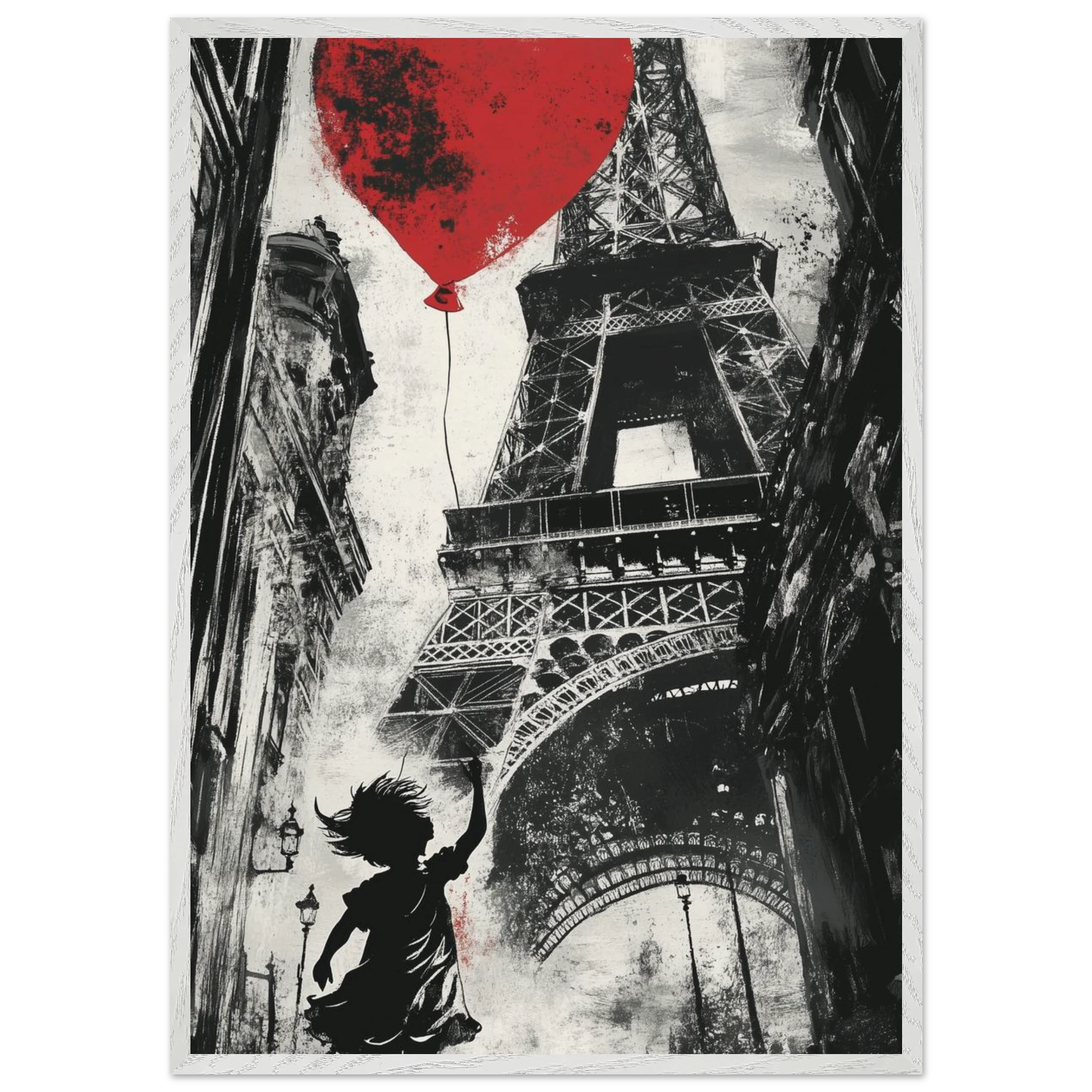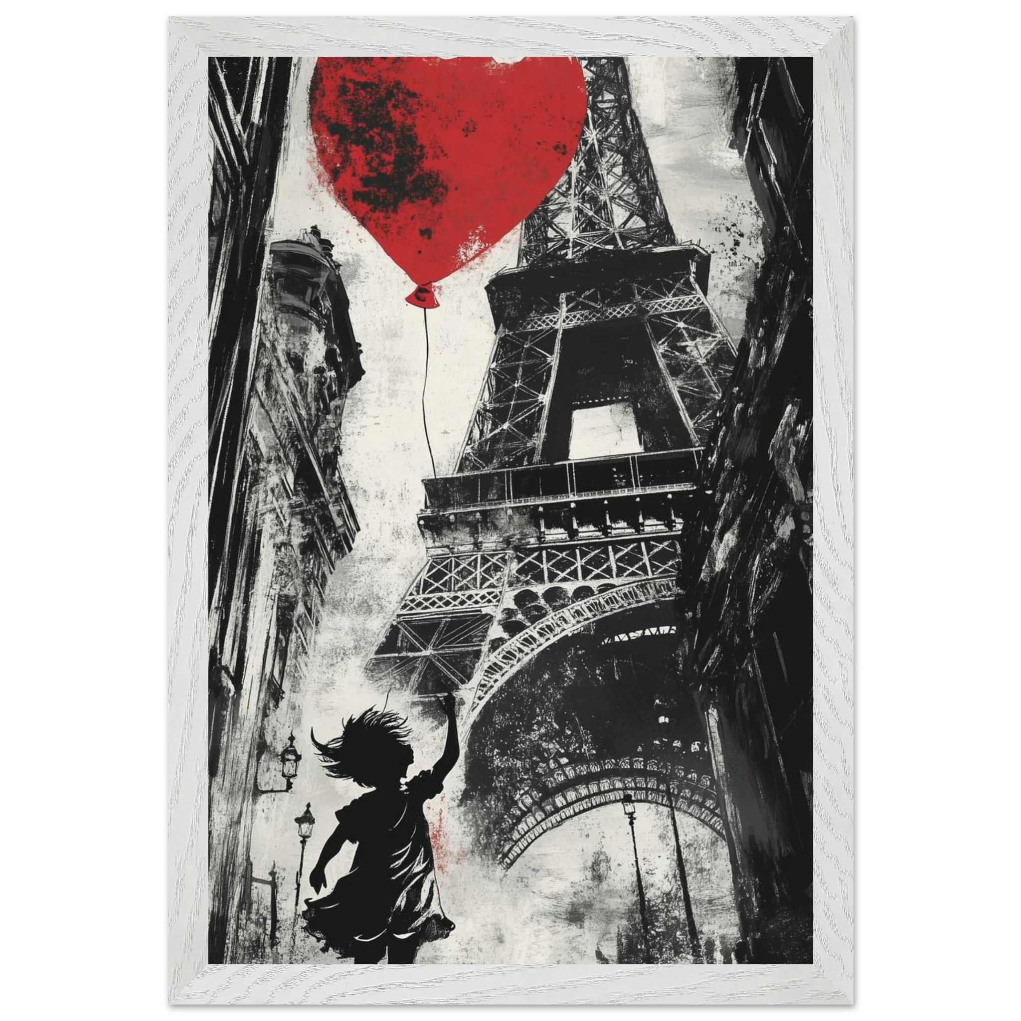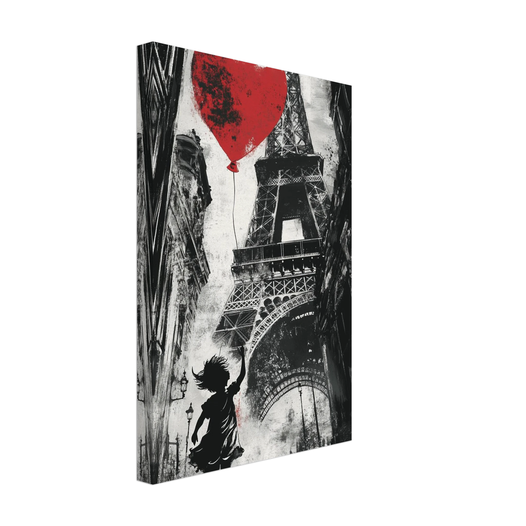 Set against the stark romance of Paris, this artwork is both protest and poem. Raw brushwork, bold contrasts, and a single red heart drifting upward—it’s emotion in motion.