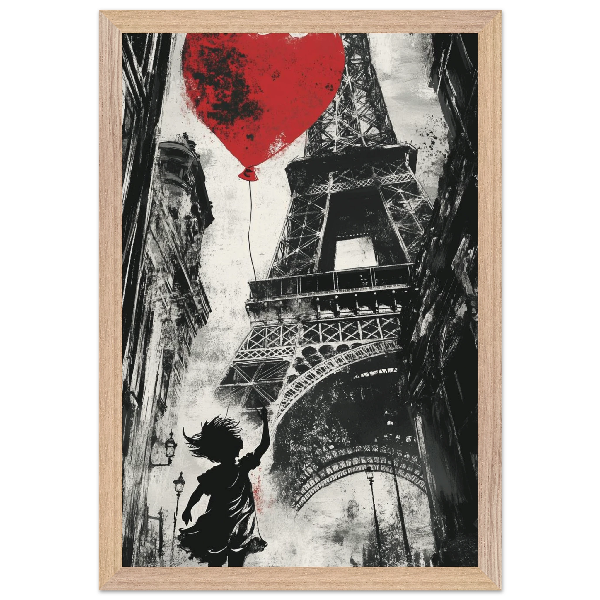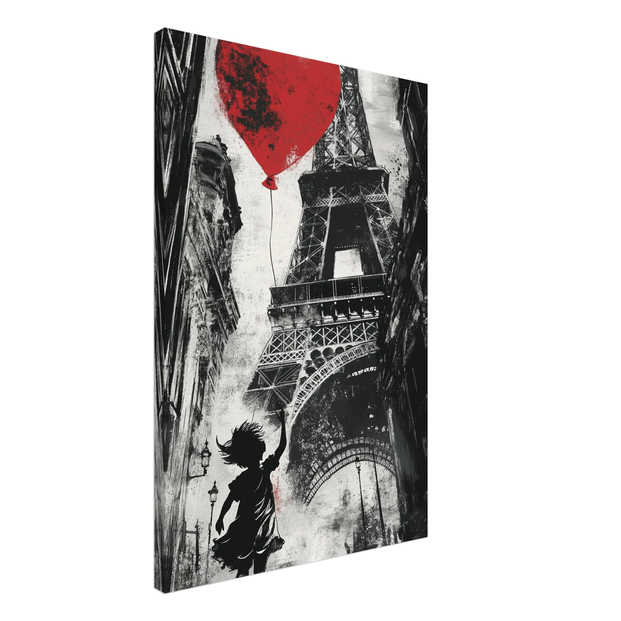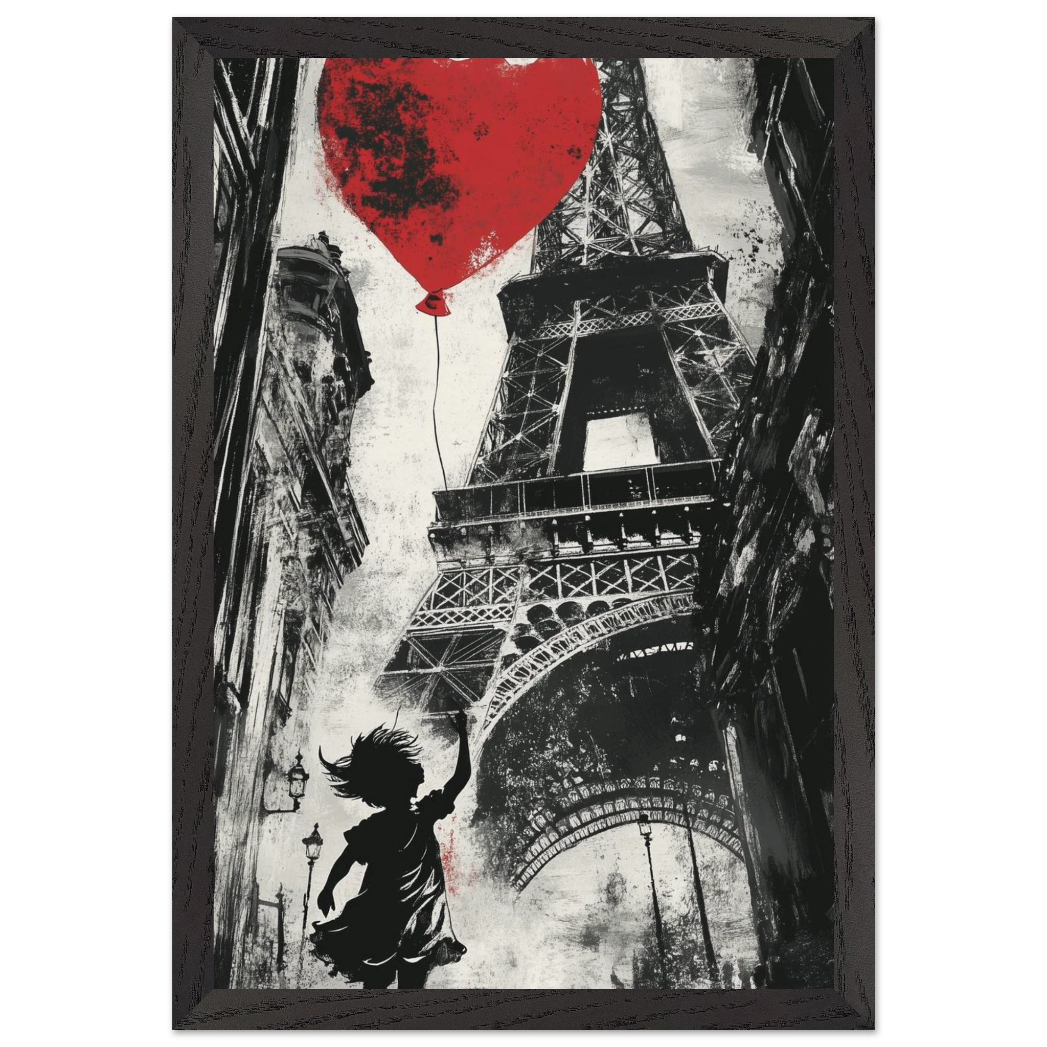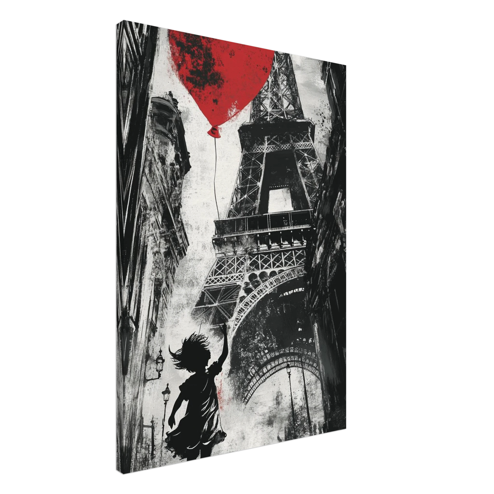 Set against the stark romance of Paris, this artwork is both protest and poem. Raw brushwork, bold contrasts, and a single red heart drifting upward—it’s emotion in motion.