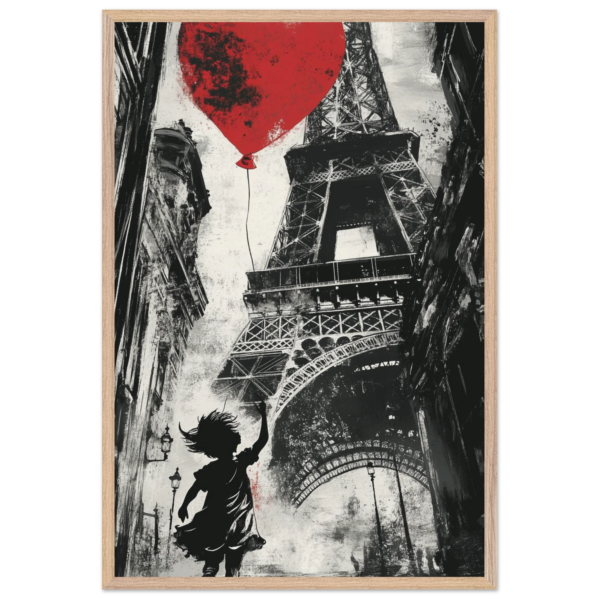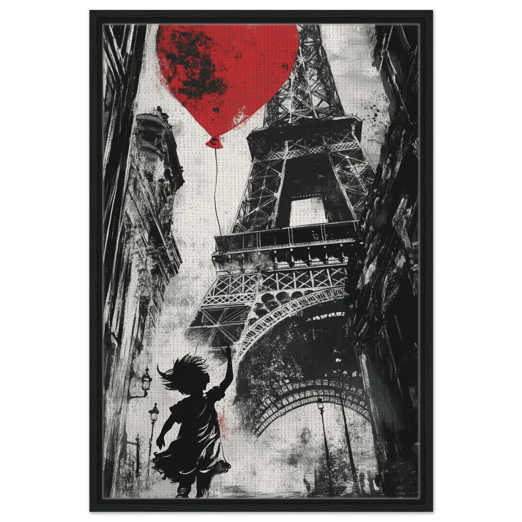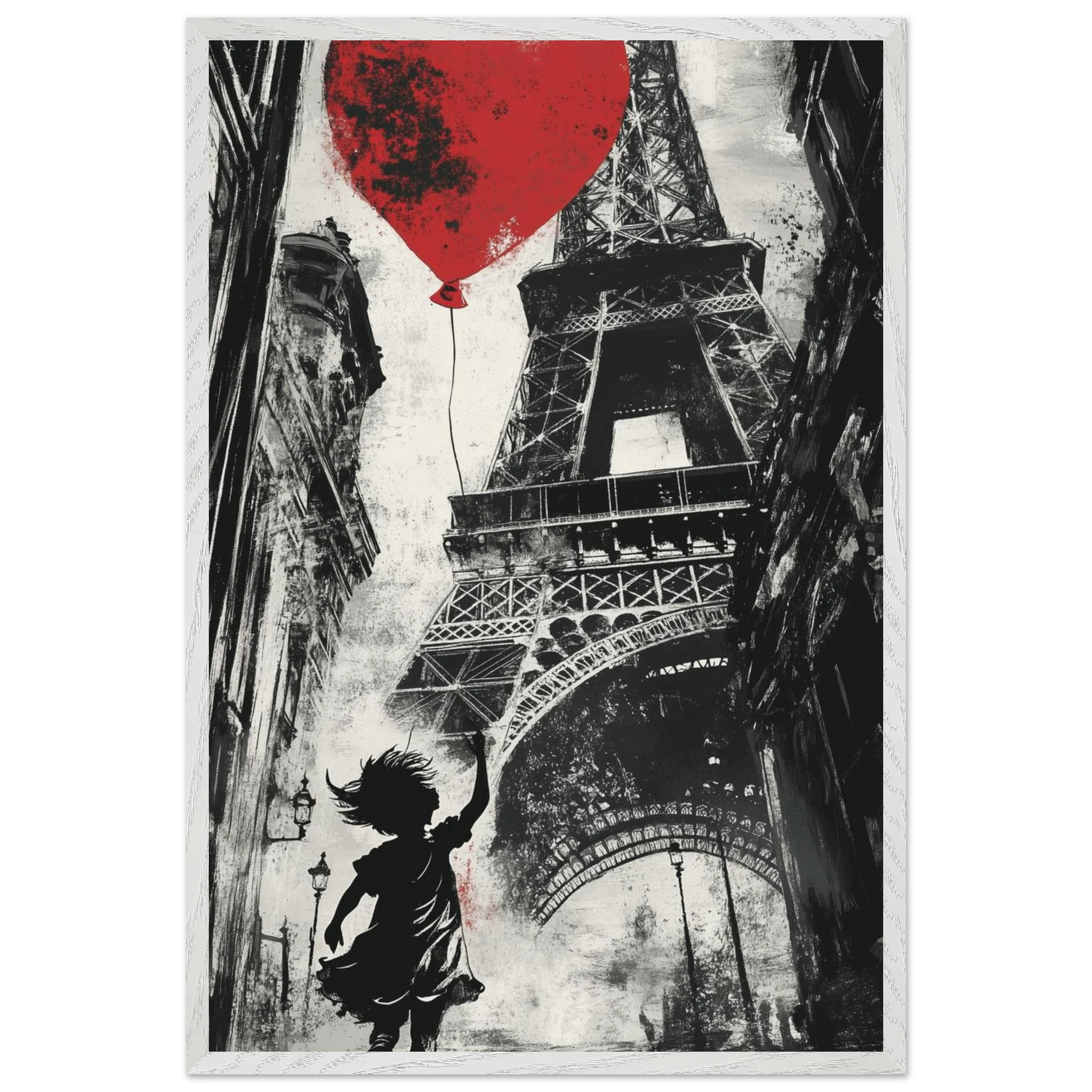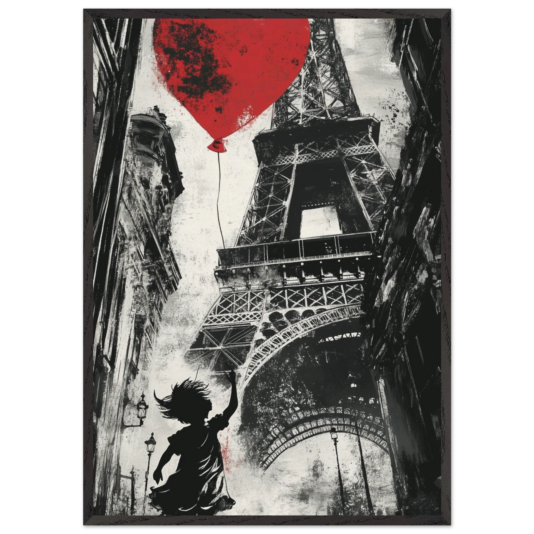 Set against the stark romance of Paris, this artwork is both protest and poem. Raw brushwork, bold contrasts, and a single red heart drifting upward—it’s emotion in motion.