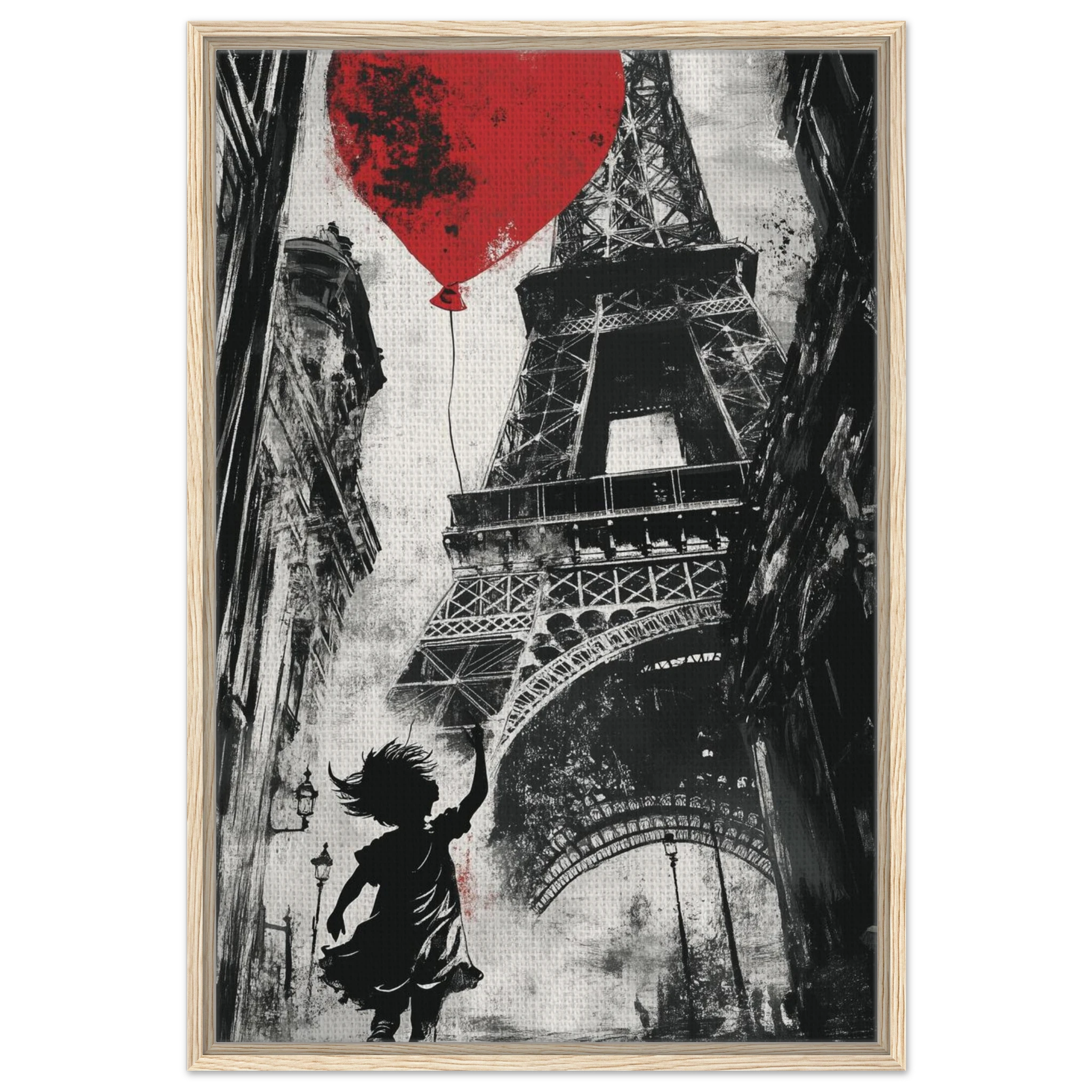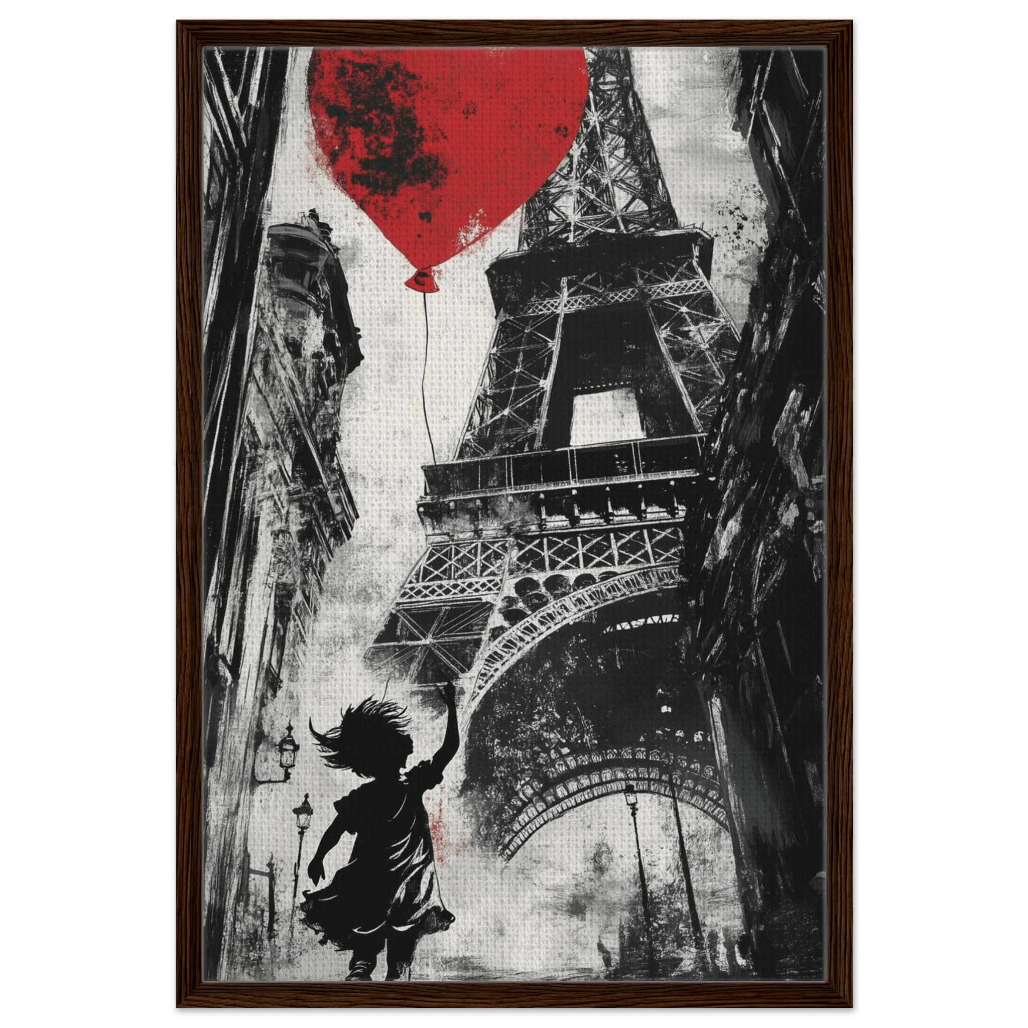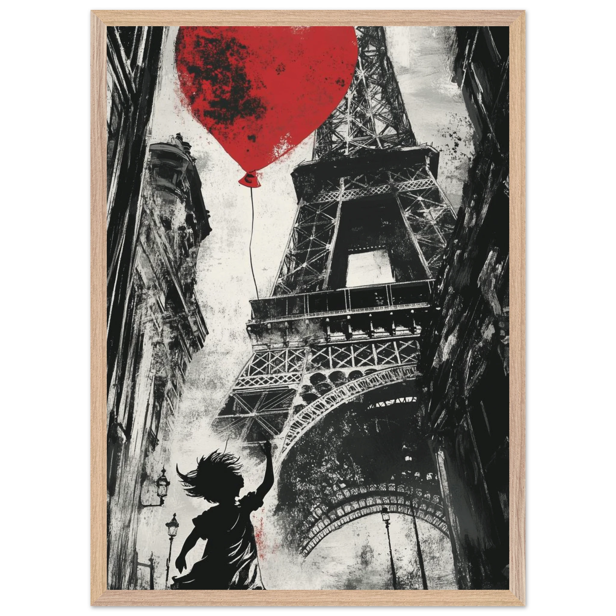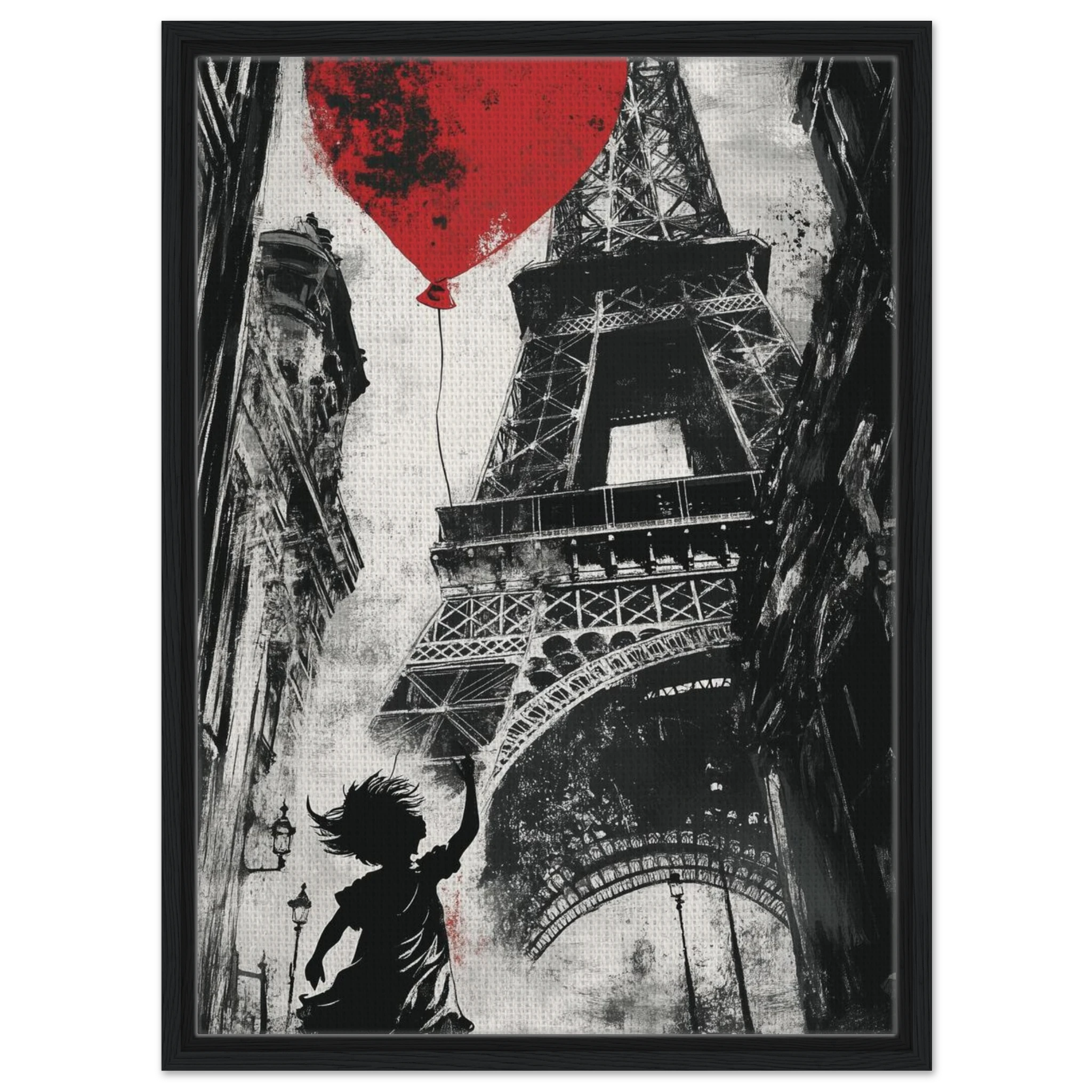 Set against the stark romance of Paris, this artwork is both protest and poem. Raw brushwork, bold contrasts, and a single red heart drifting upward—it’s emotion in motion.