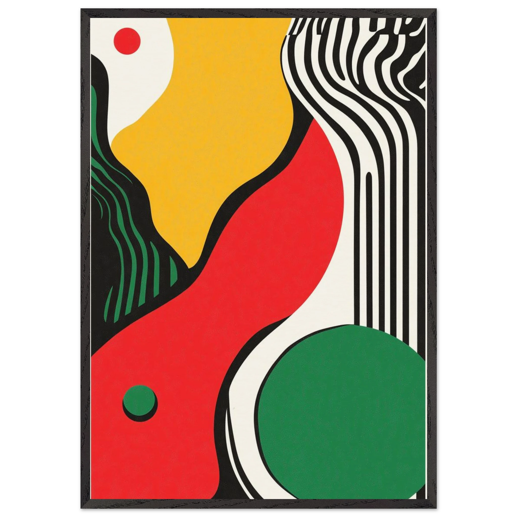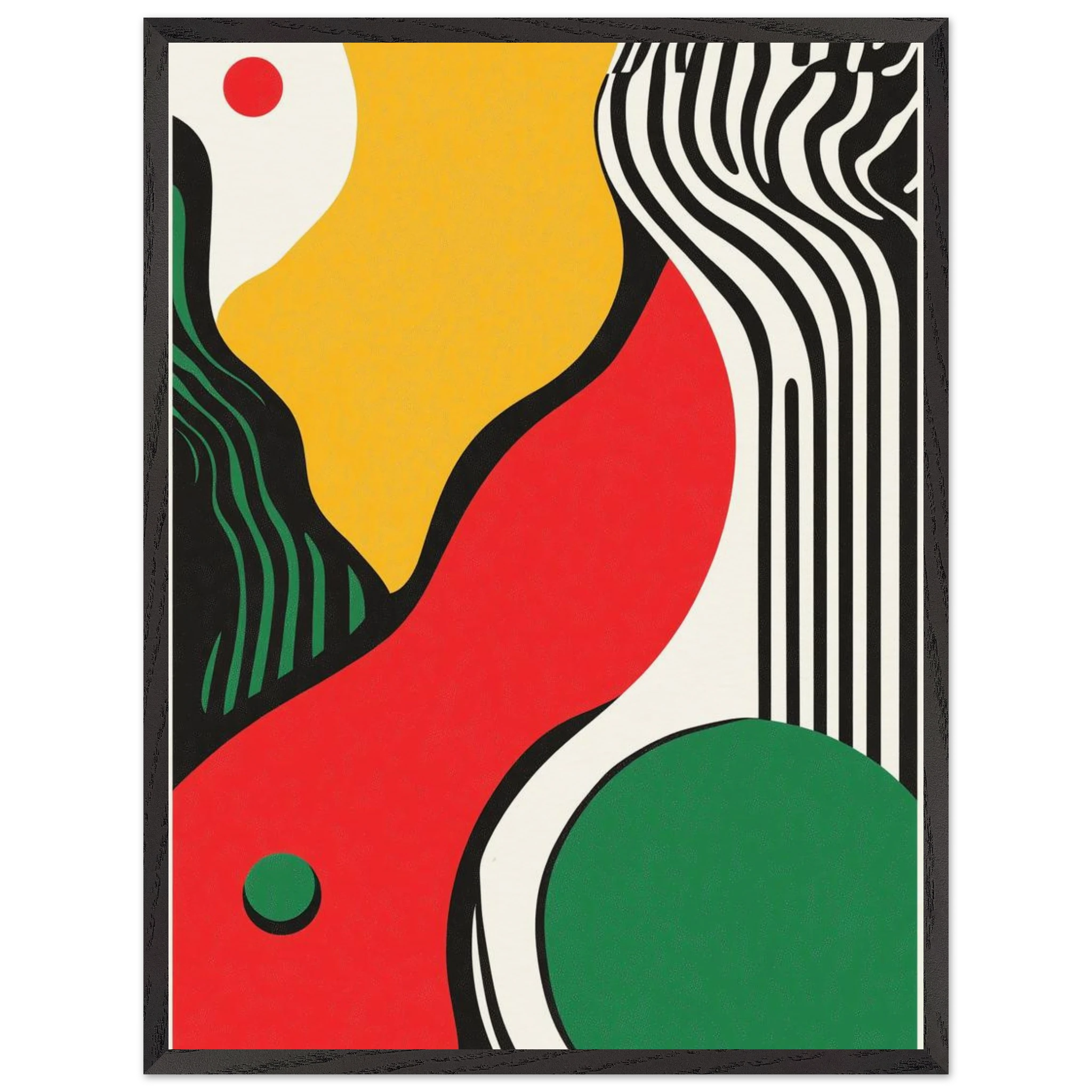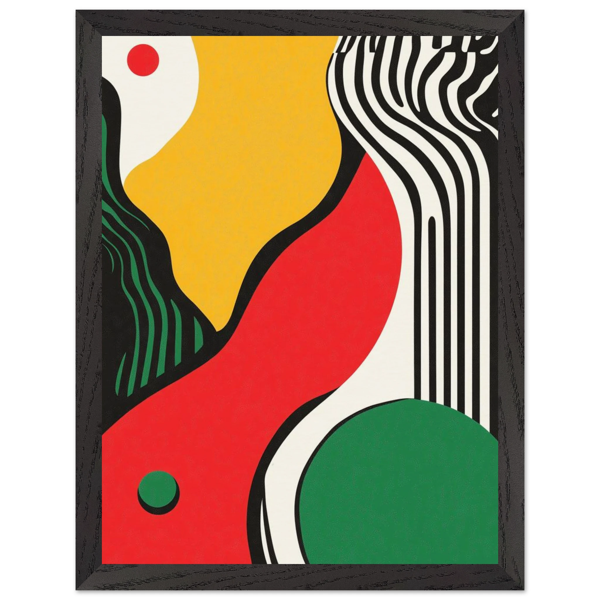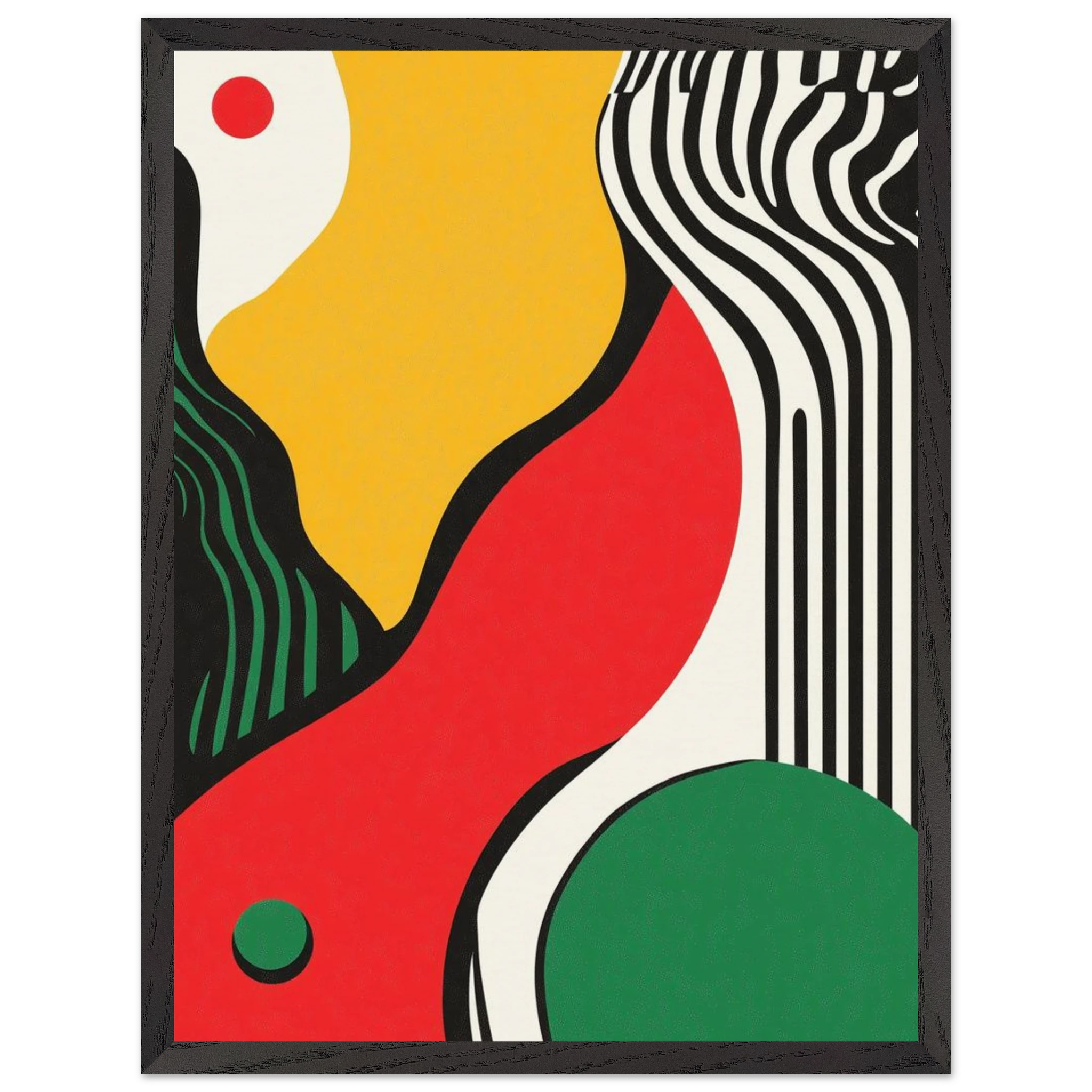 Geometry goes rogue in this vivid abstract where sharp black lines crash against fluid color blocks. A striking visual statement for contemporary interiors with edge.