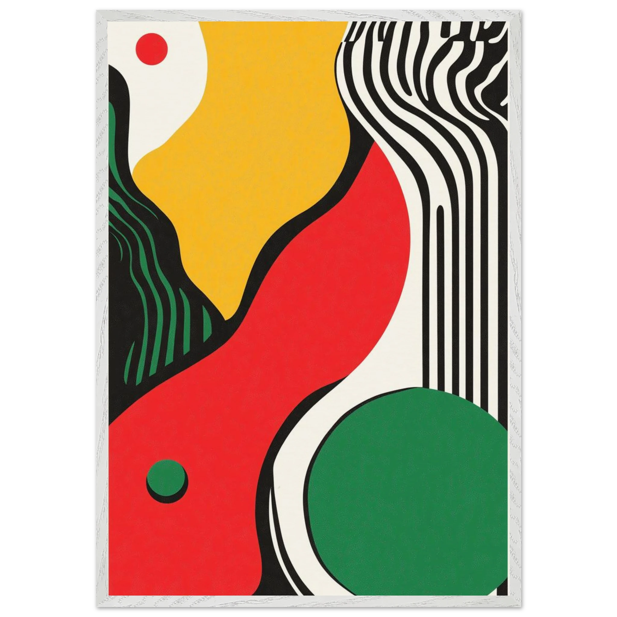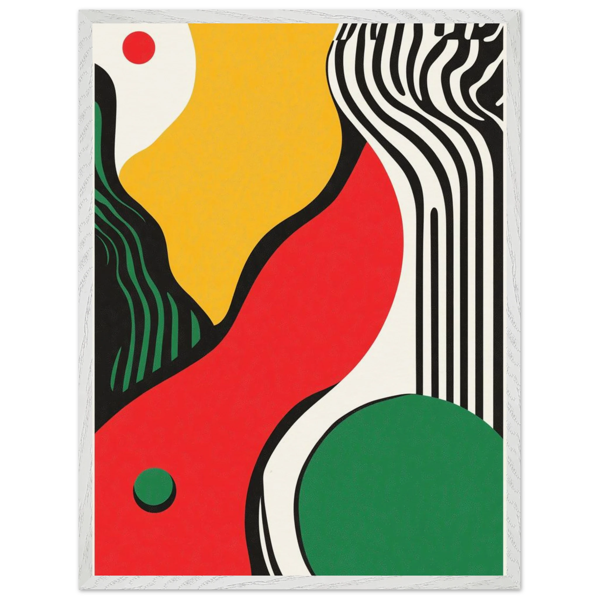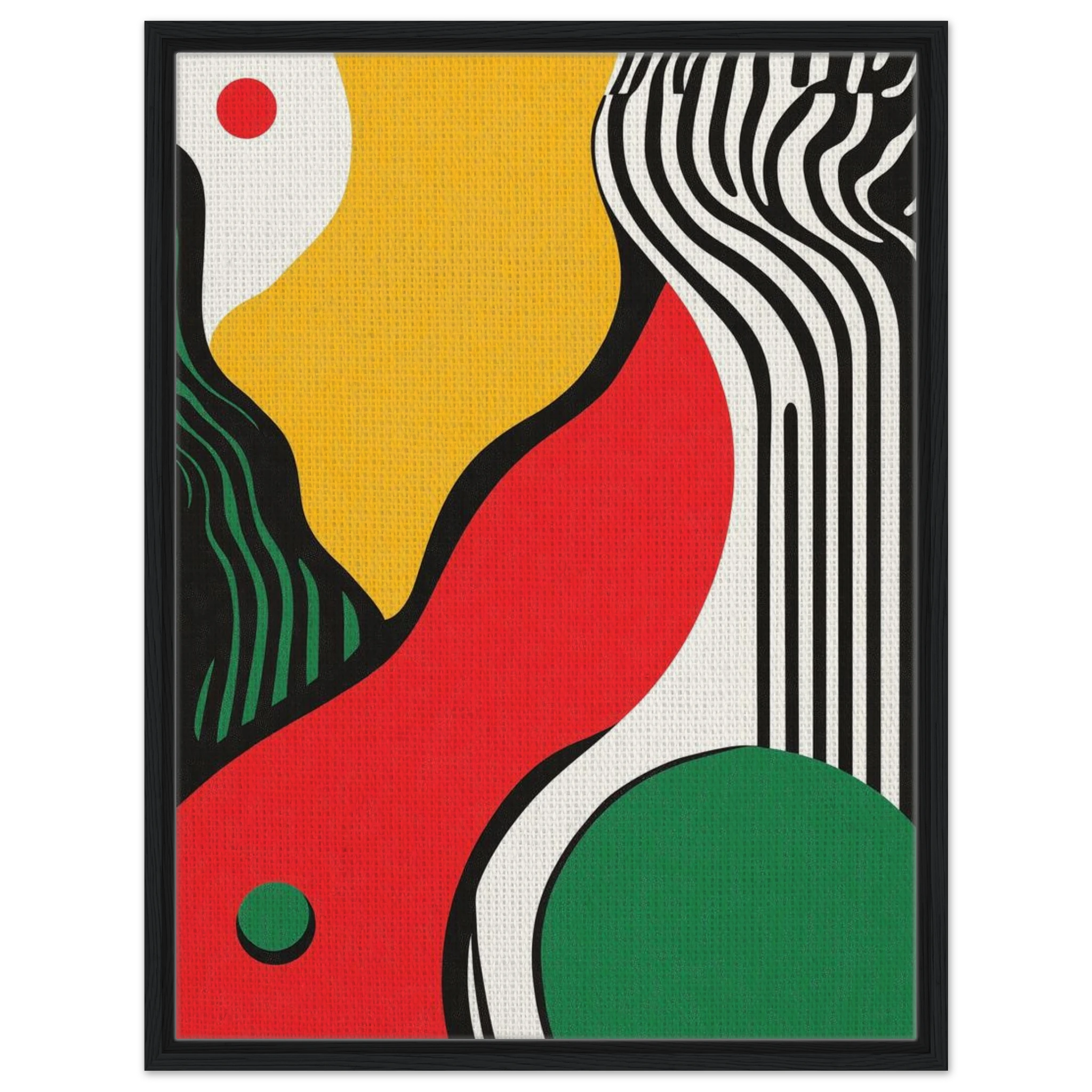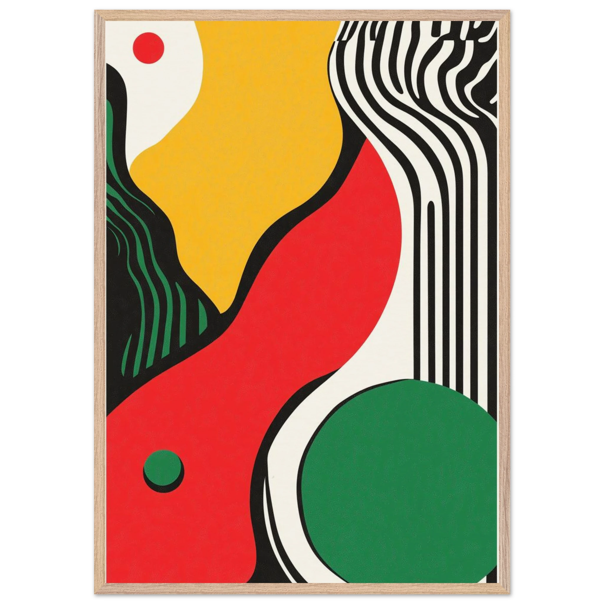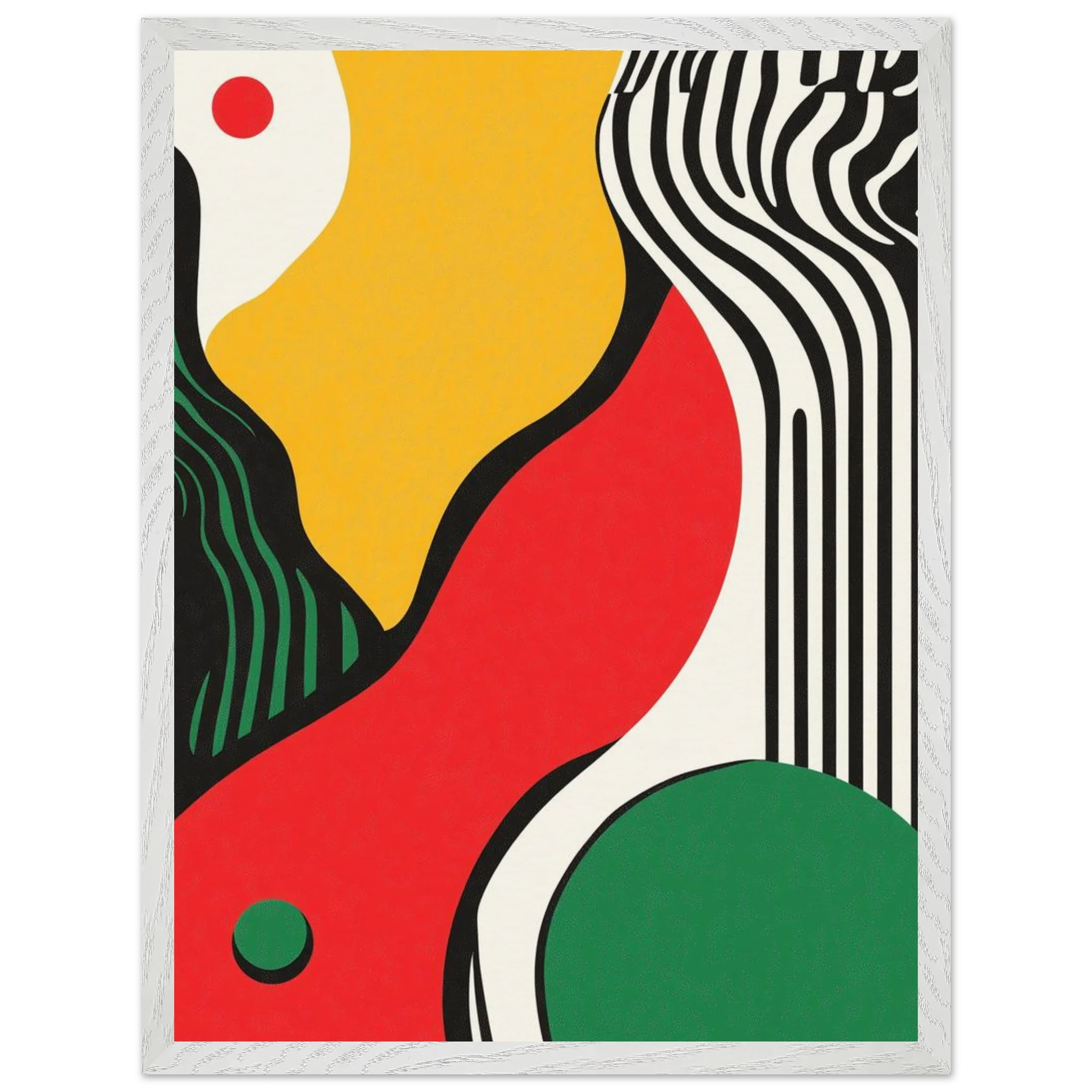 Geometry goes rogue in this vivid abstract where sharp black lines crash against fluid color blocks. A striking visual statement for contemporary interiors with edge.