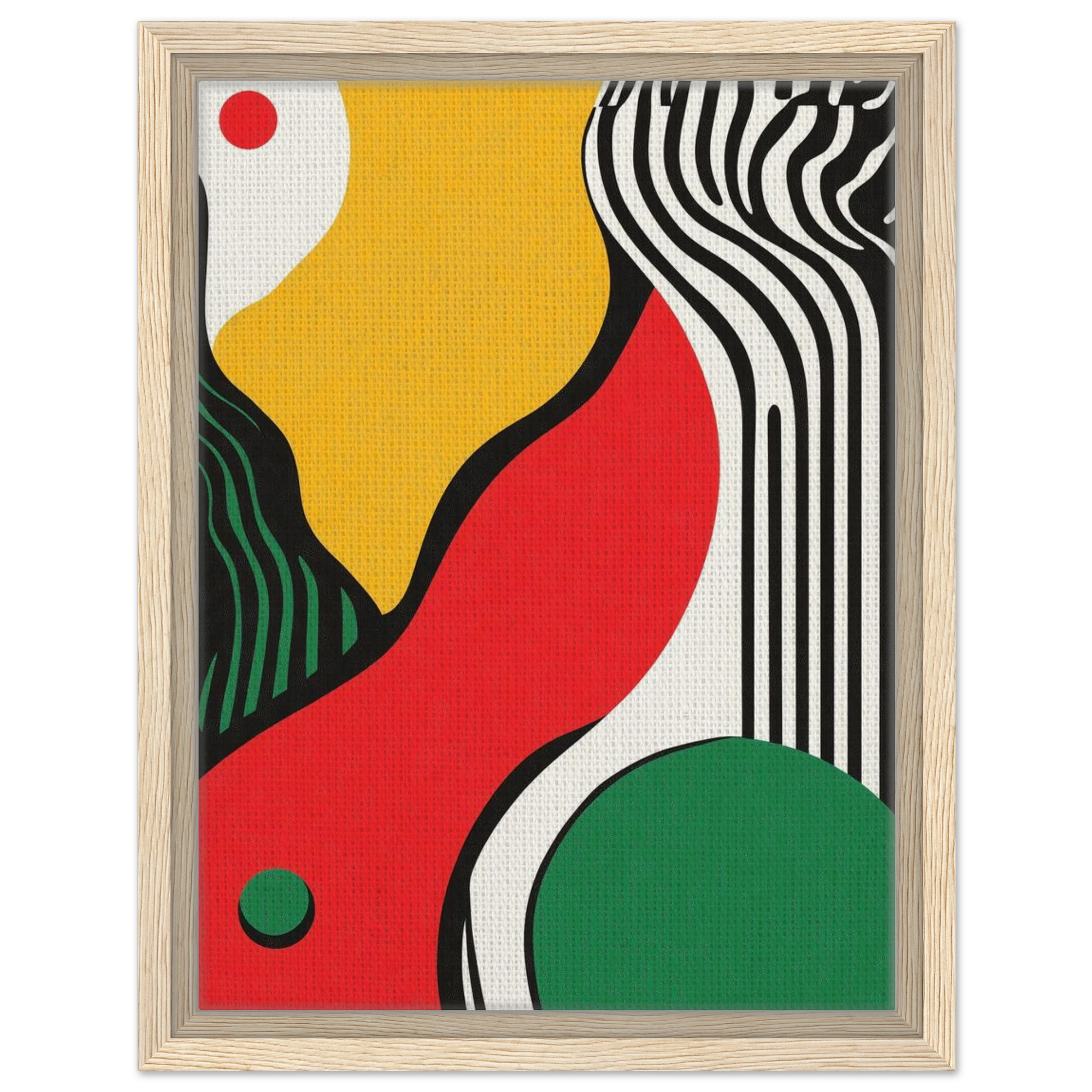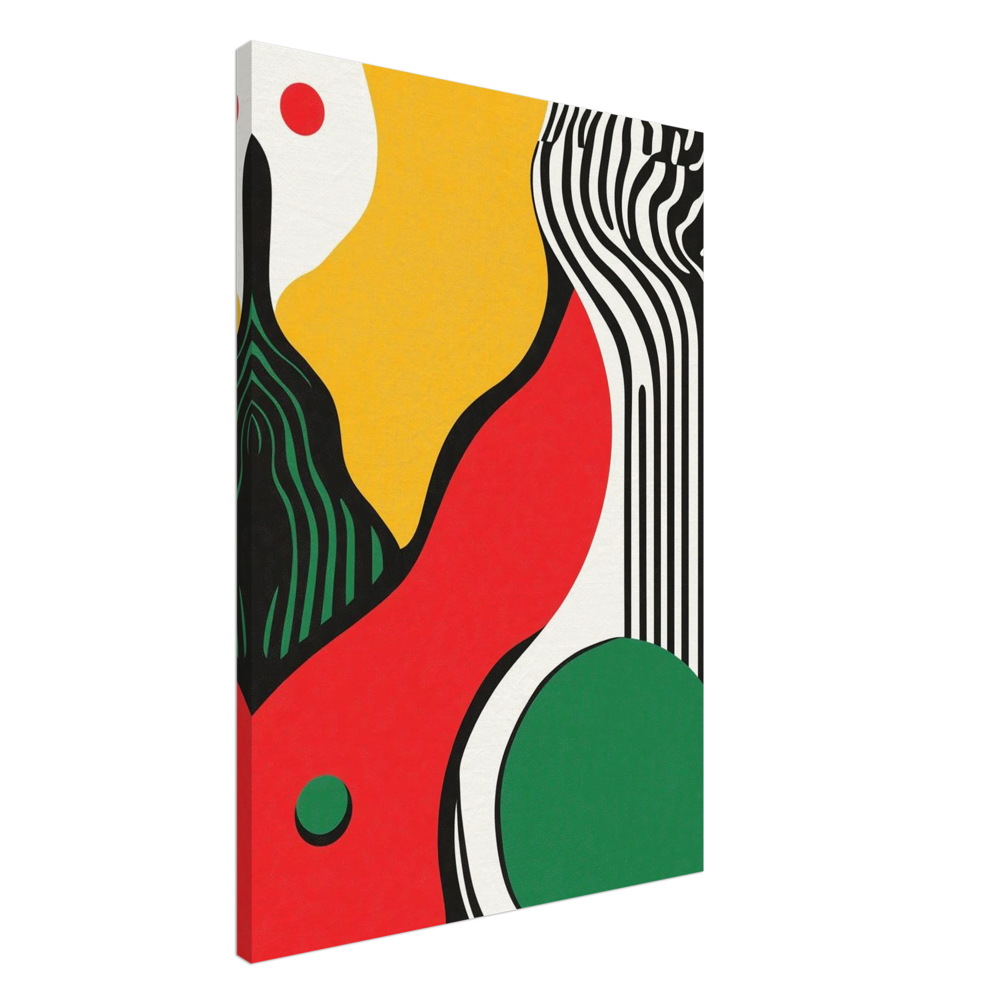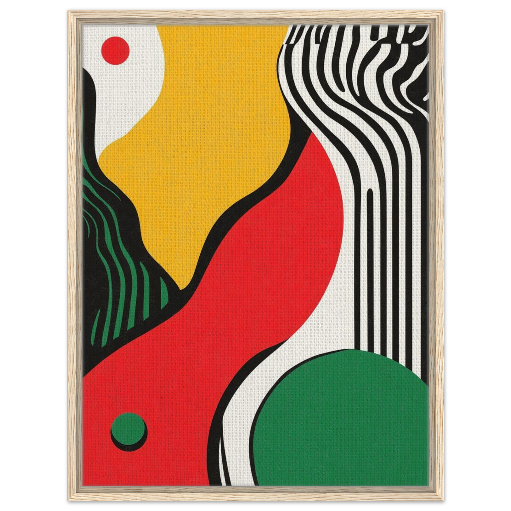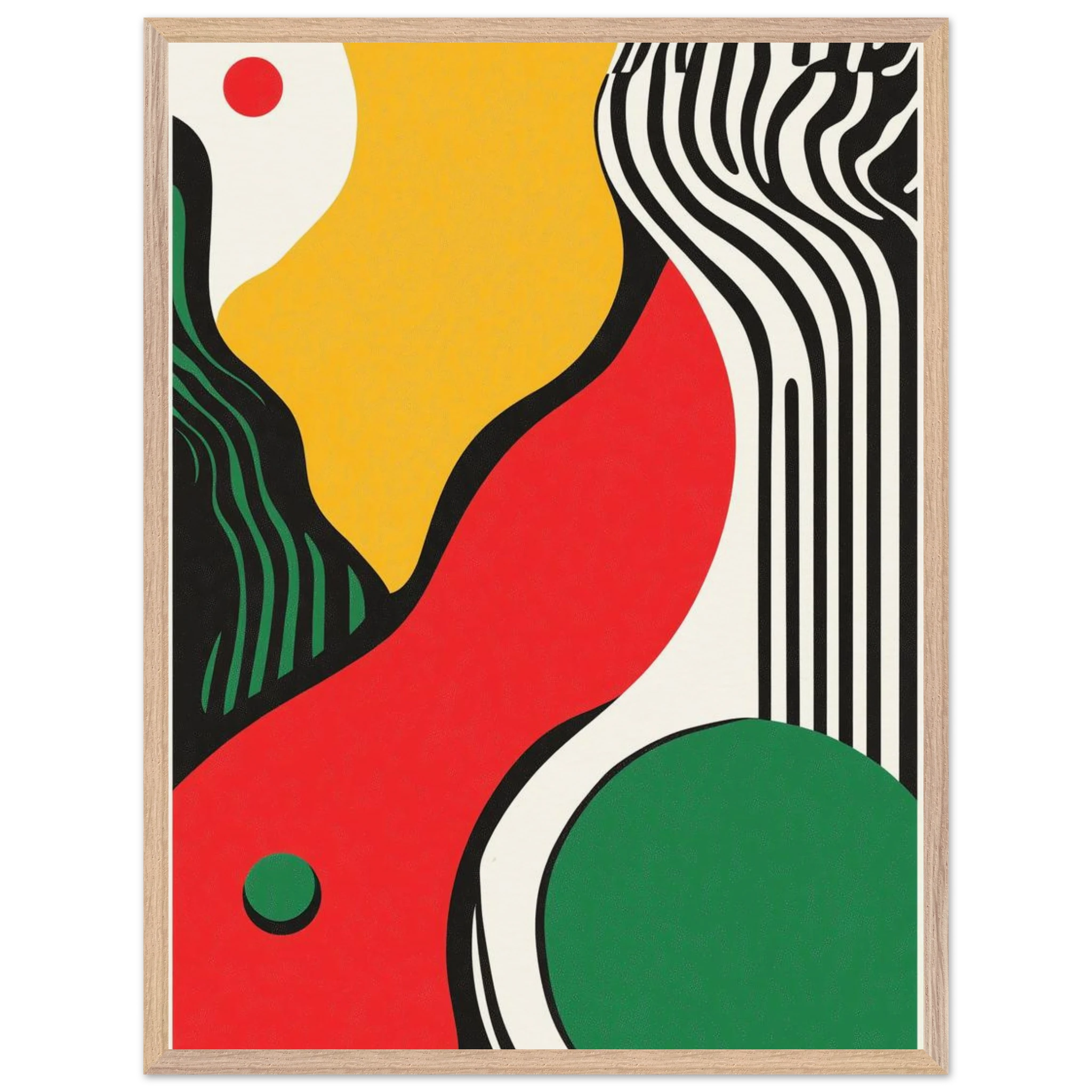 Geometry goes rogue in this vivid abstract where sharp black lines crash against fluid color blocks. A striking visual statement for contemporary interiors with edge.