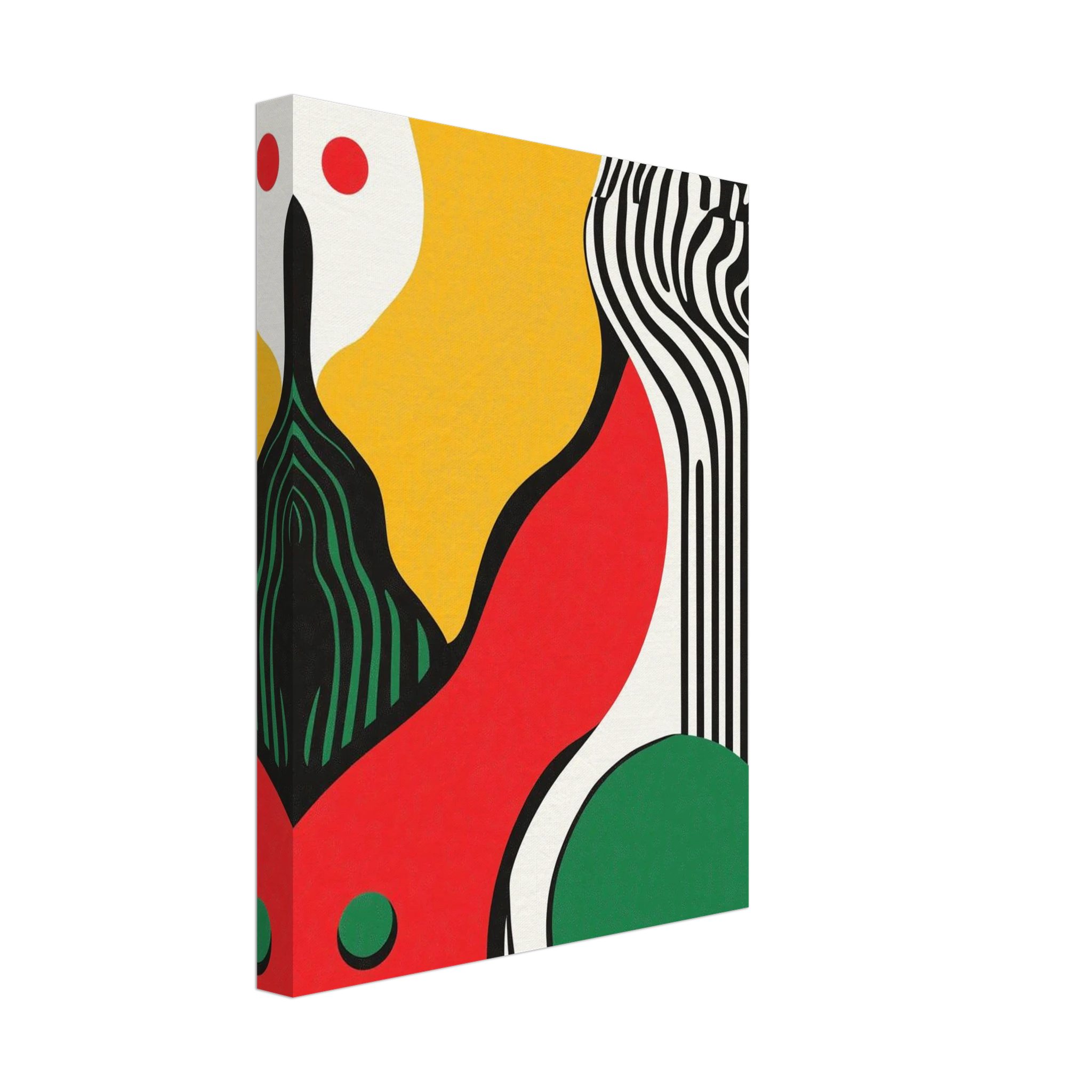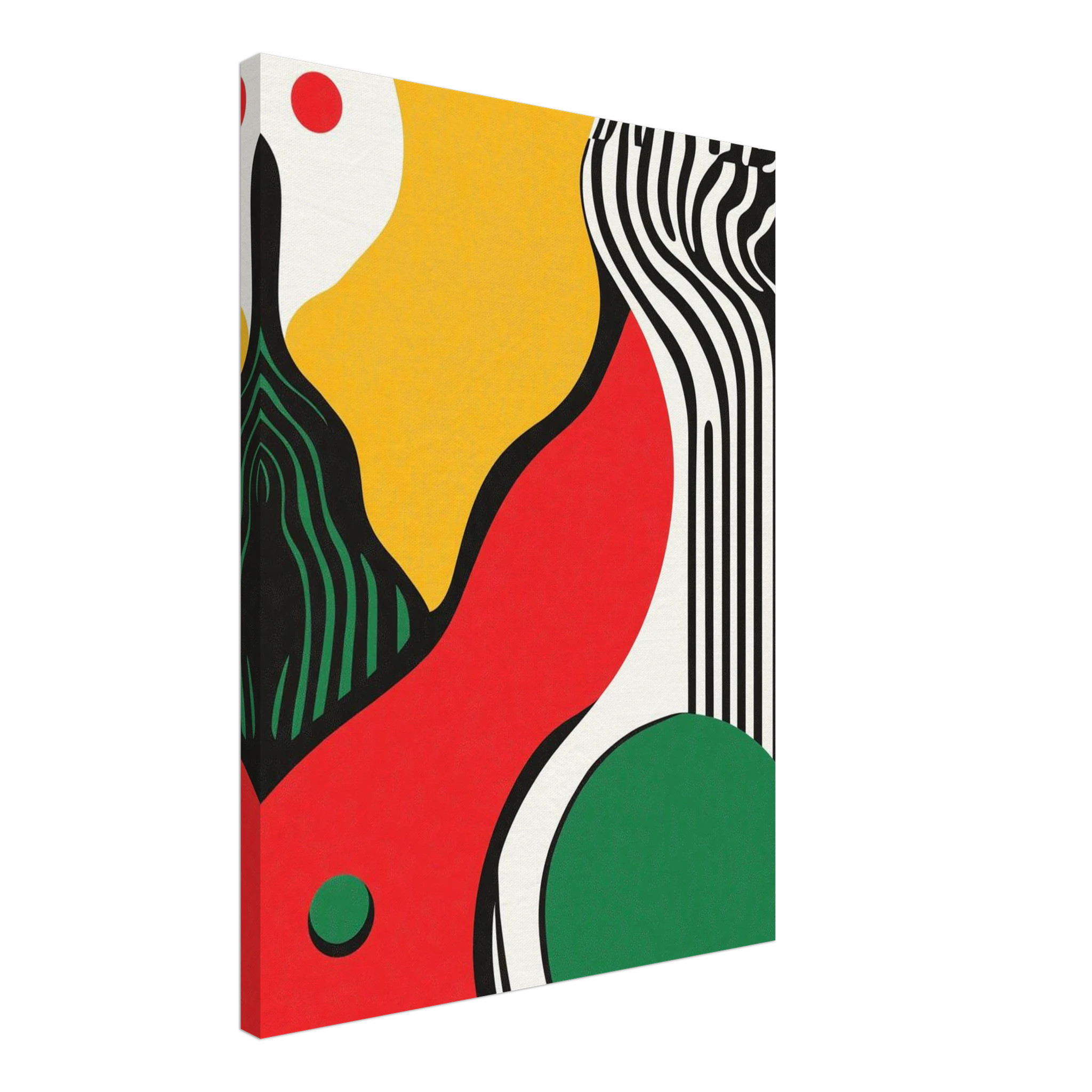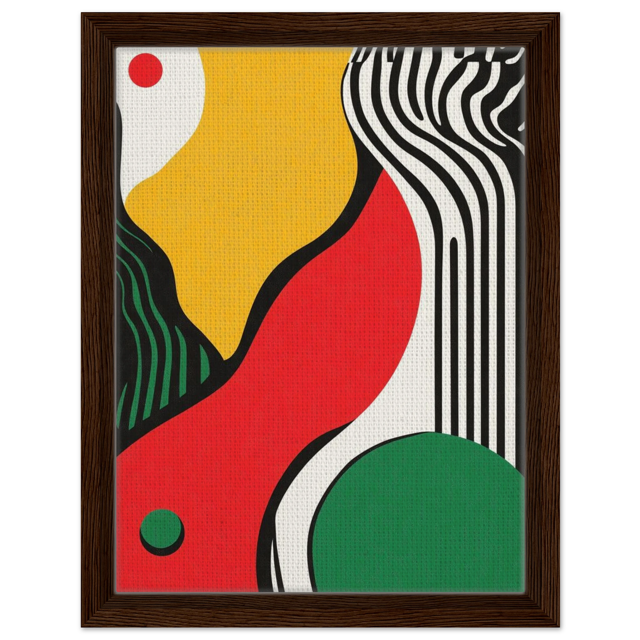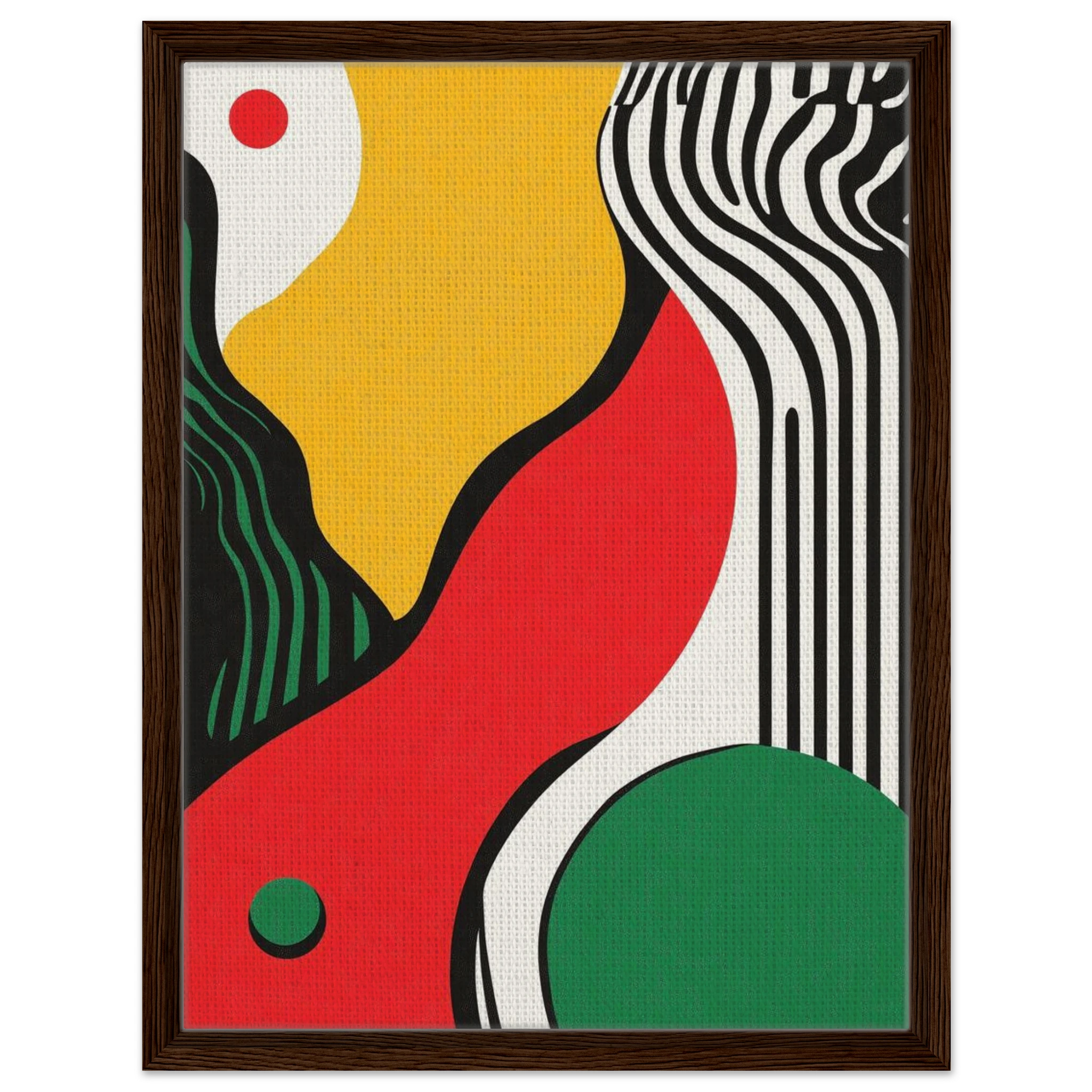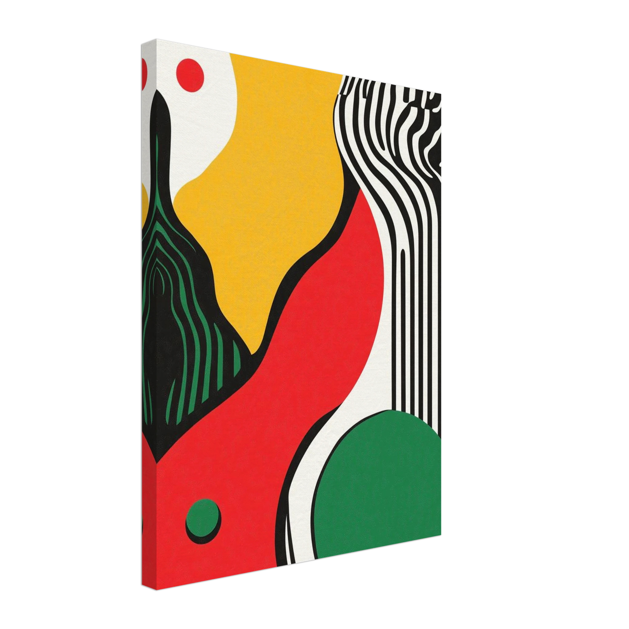 Geometry goes rogue in this vivid abstract where sharp black lines crash against fluid color blocks. A striking visual statement for contemporary interiors with edge.
