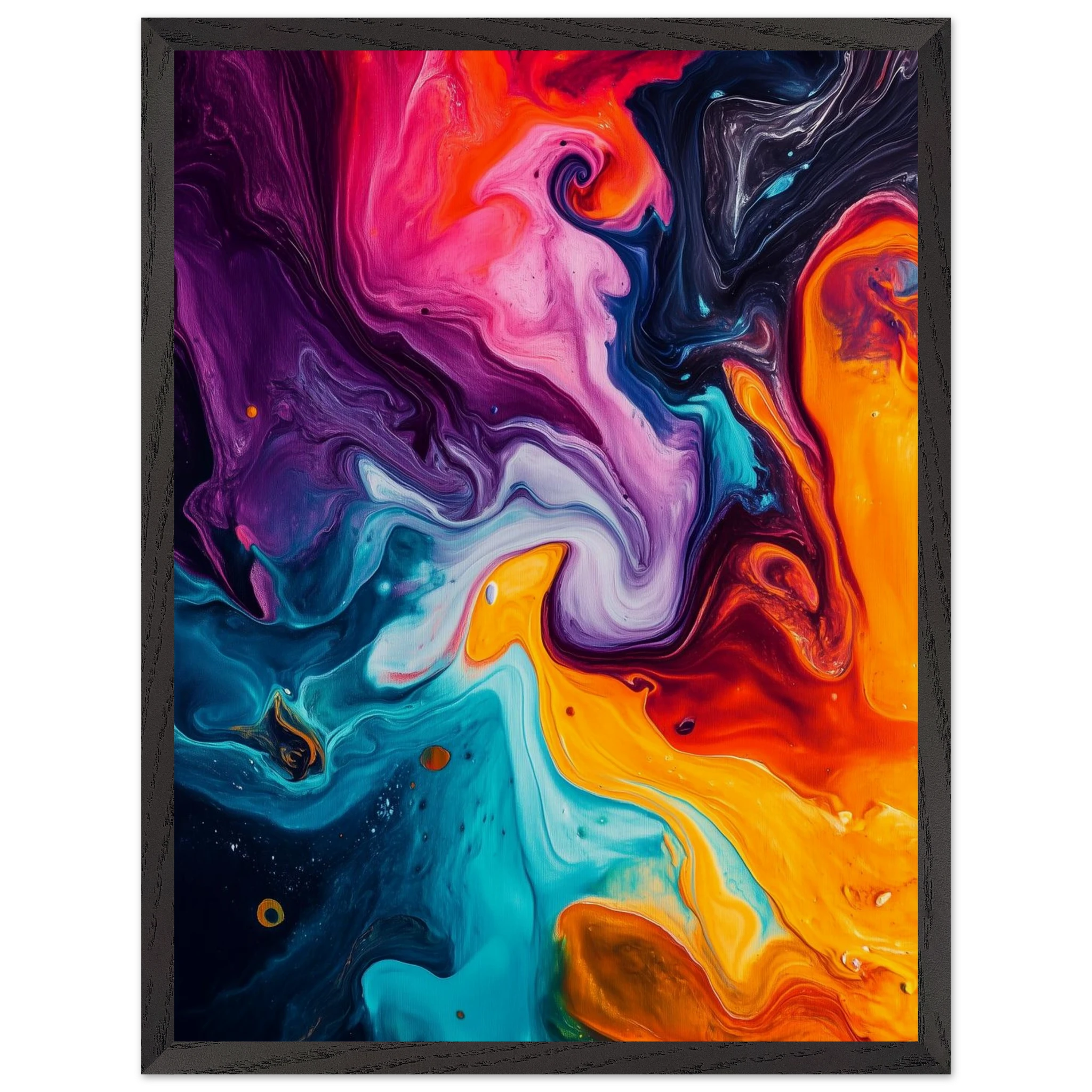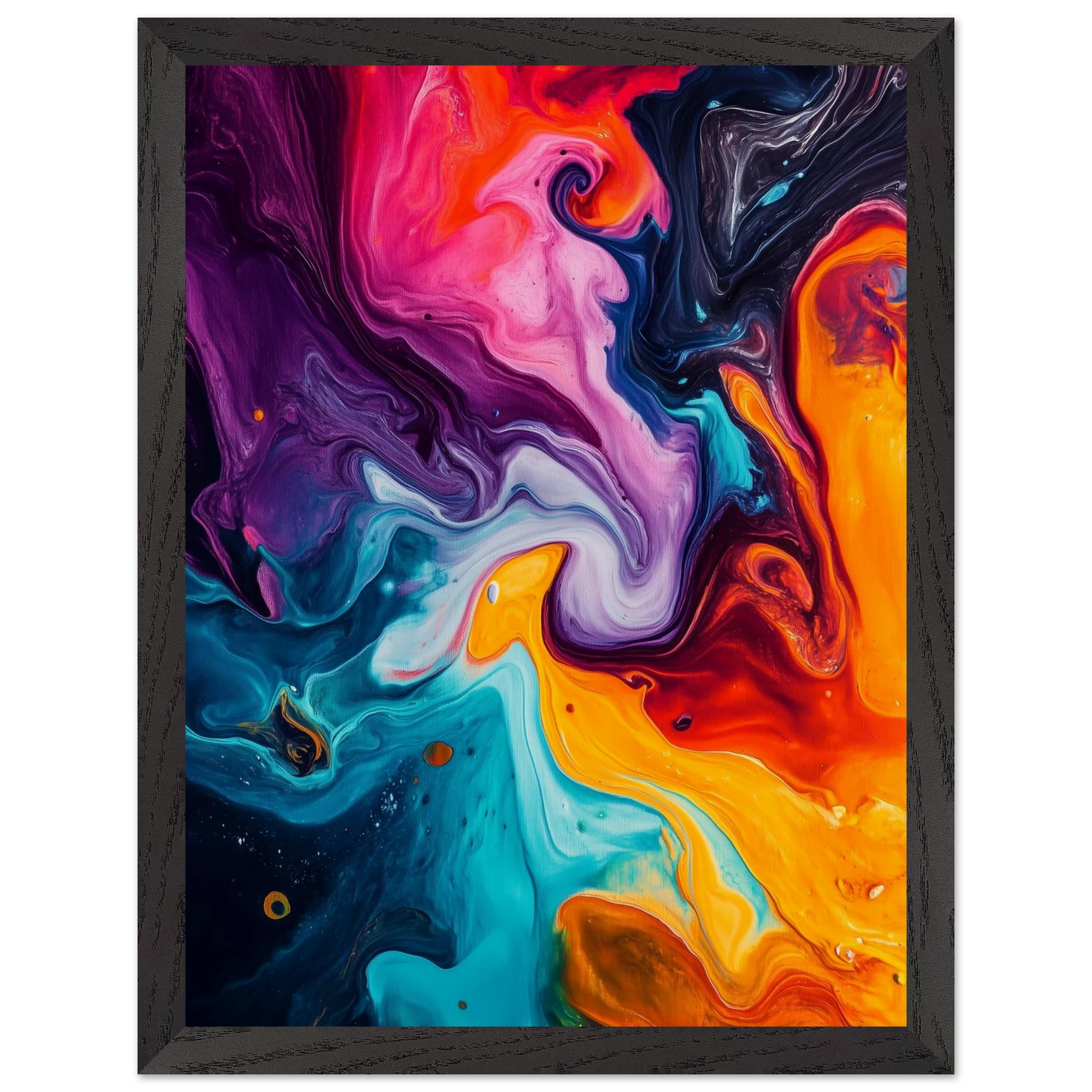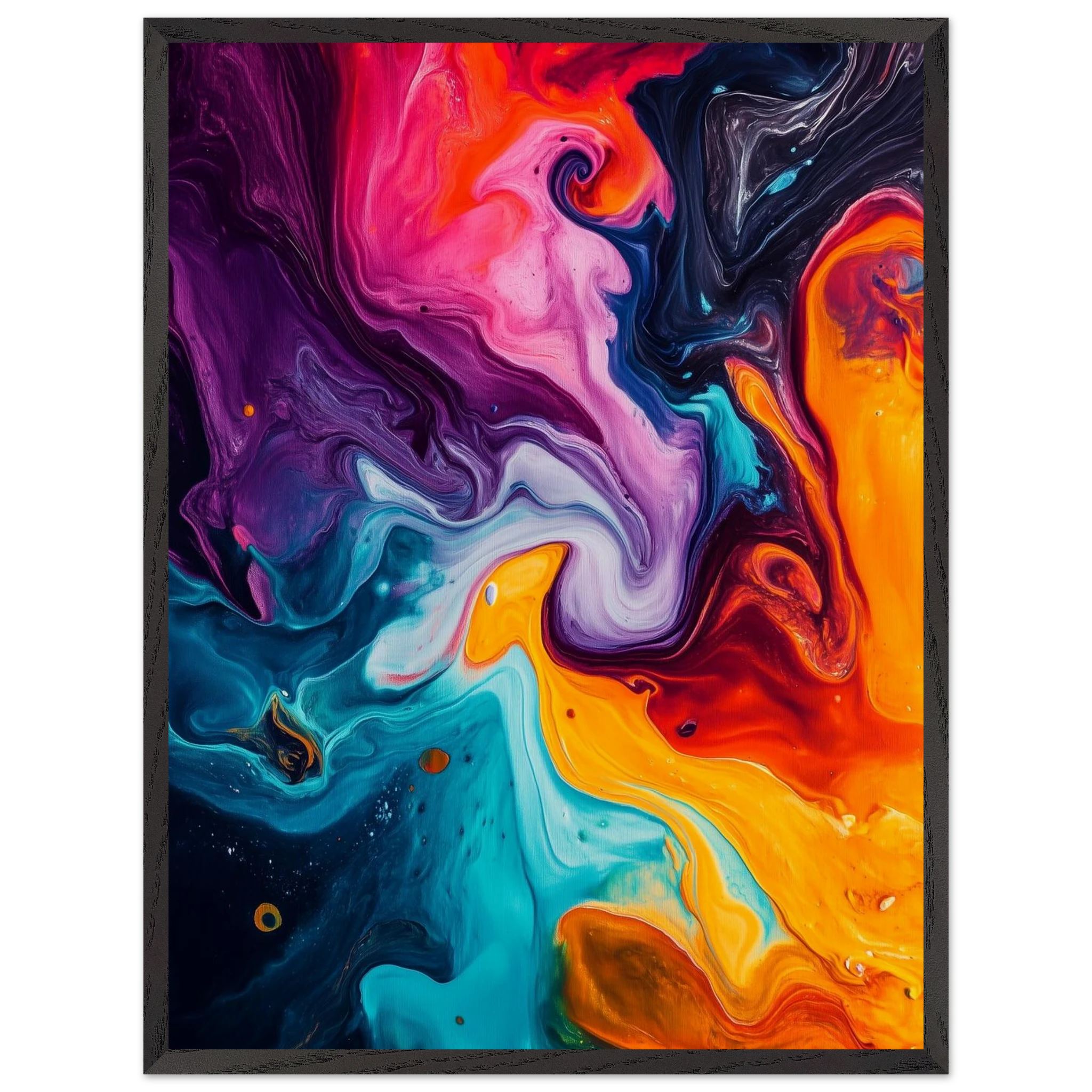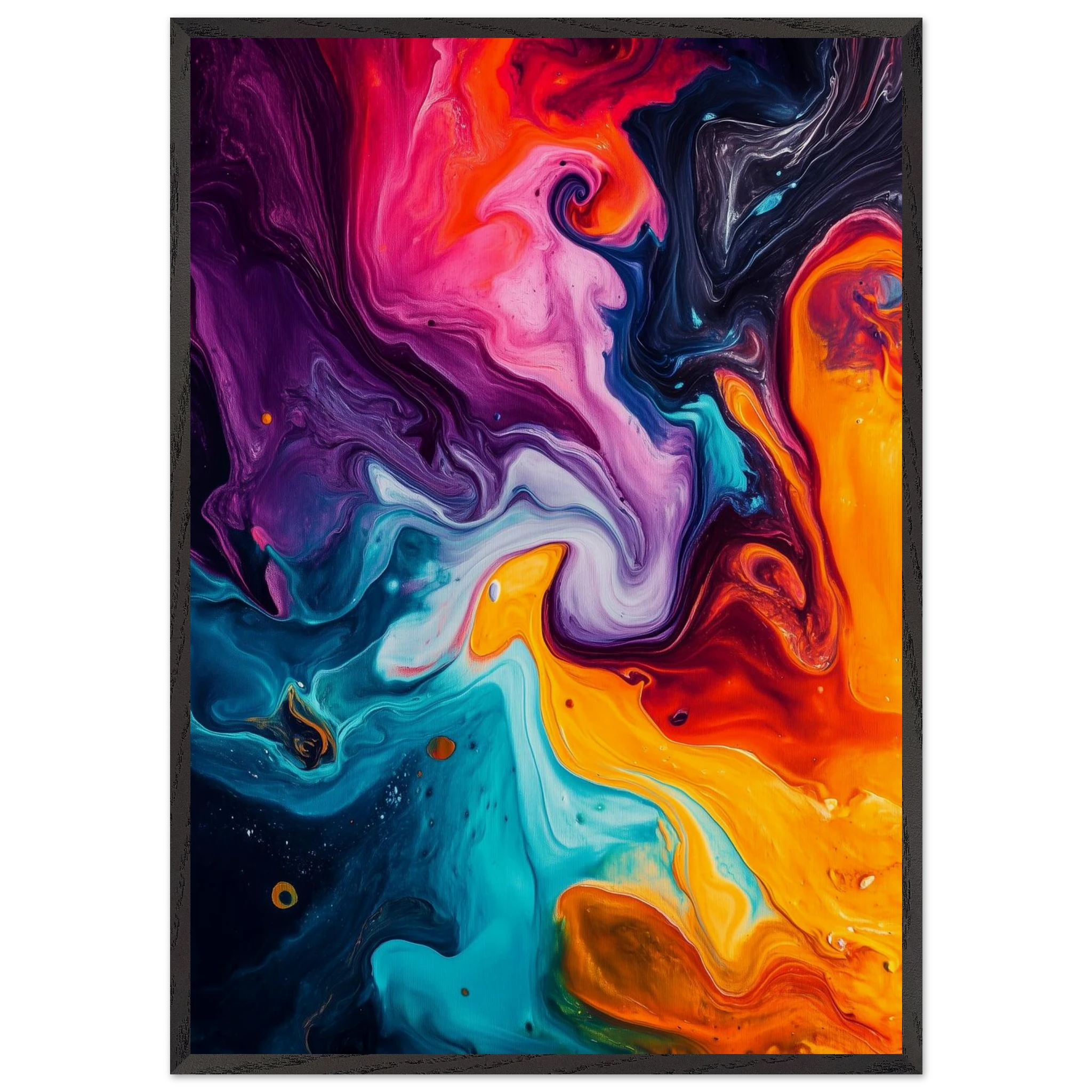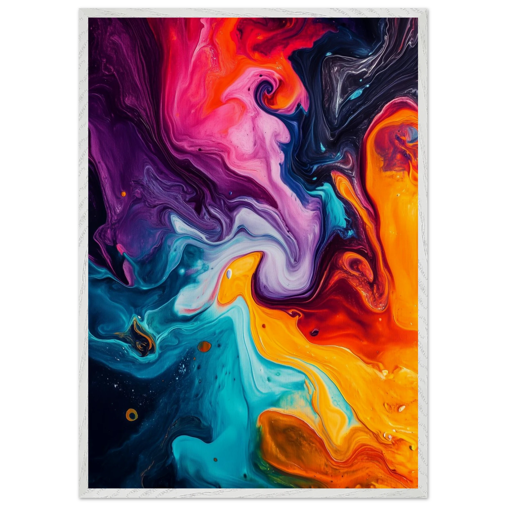 Like a symphony without sound, the pigments spiral and crash in a chaotic harmony.